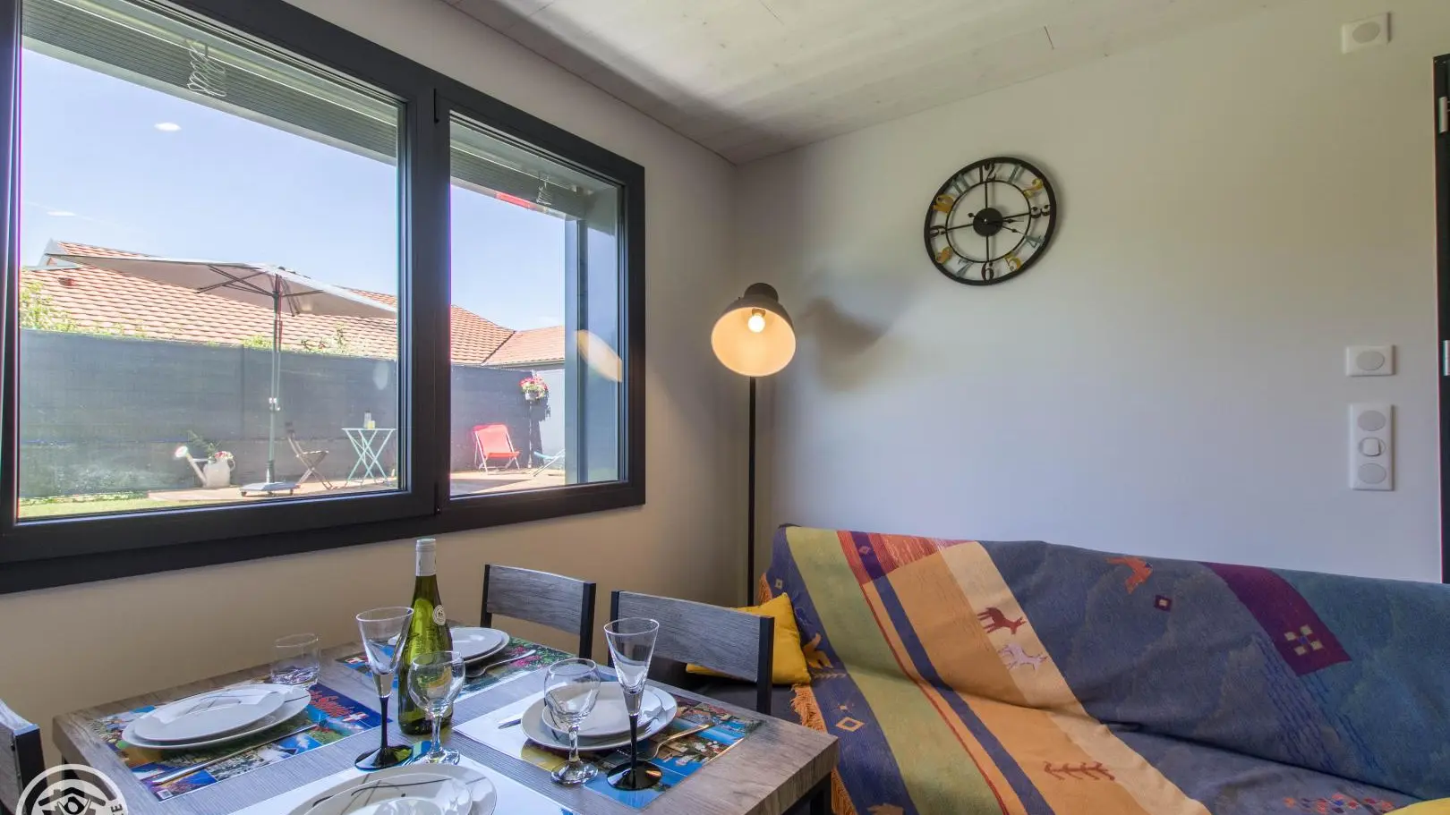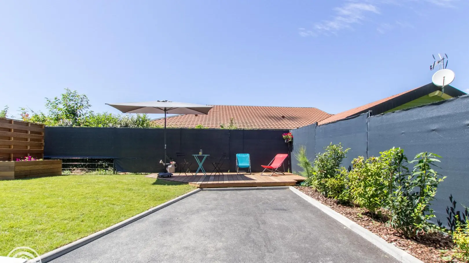 Terrace and garden with furniture, deckchairs, barbecue. Private parking Léman 10km (Sciez beaches, water sports ...), Thonon-les-Bains, thermal baths 12km. Geneva at 30km. Small shops in Perrignier at 3km, shopping area at 11km.
