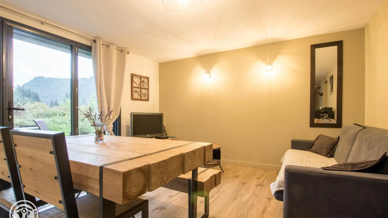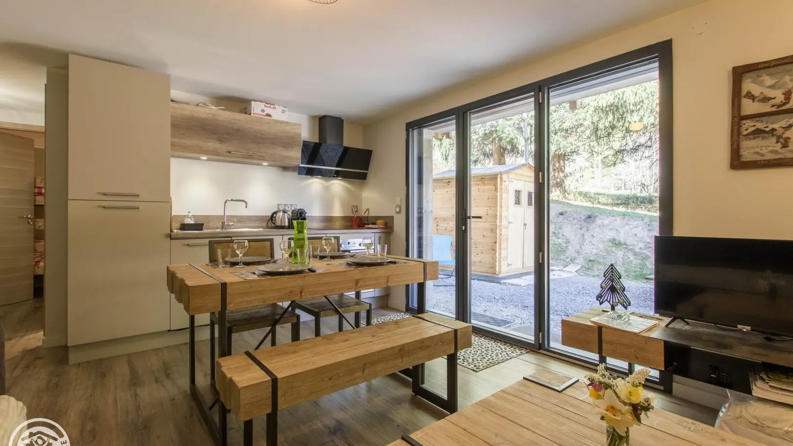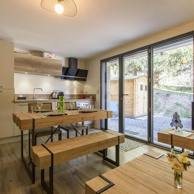 35m² gite on one level on the ground floor, at the back of the owners' chalet located between the center of Saint-Jean-de-Sixt and Le Grand-Bornand village. Independent entrance.