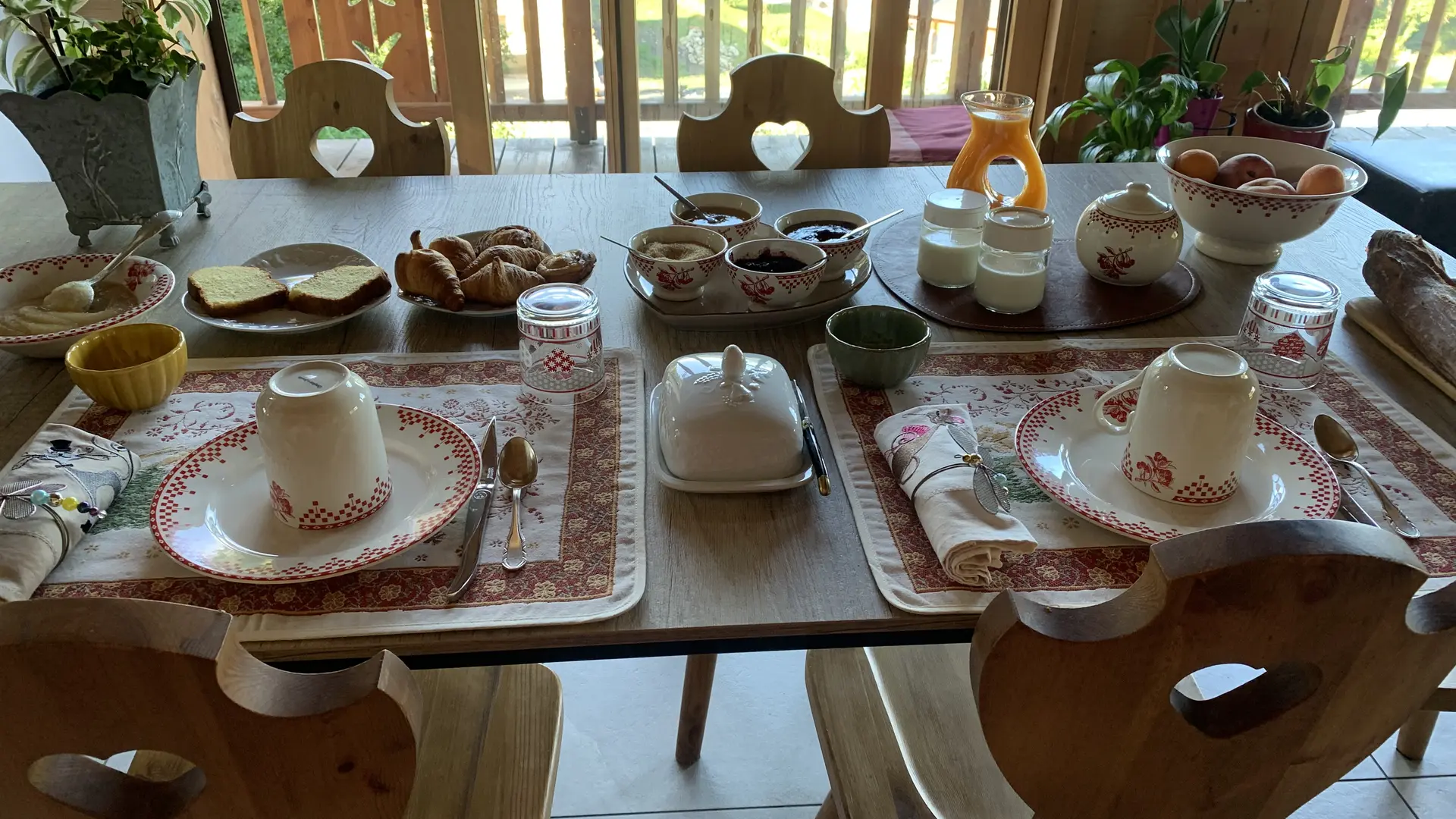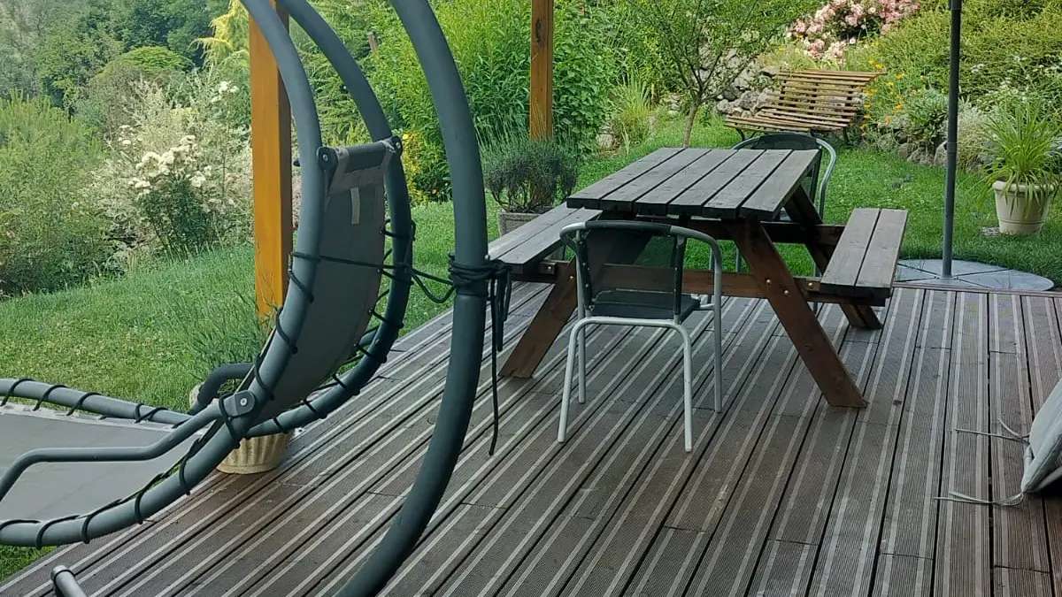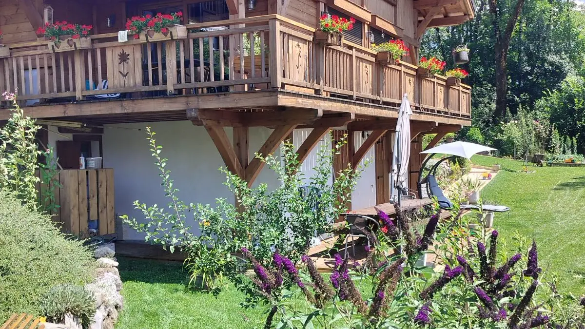 The room opens directly onto a terrace and garden. There's a hiking trail behind our chalet from which you can admire, among other things, the Valentine stream.
