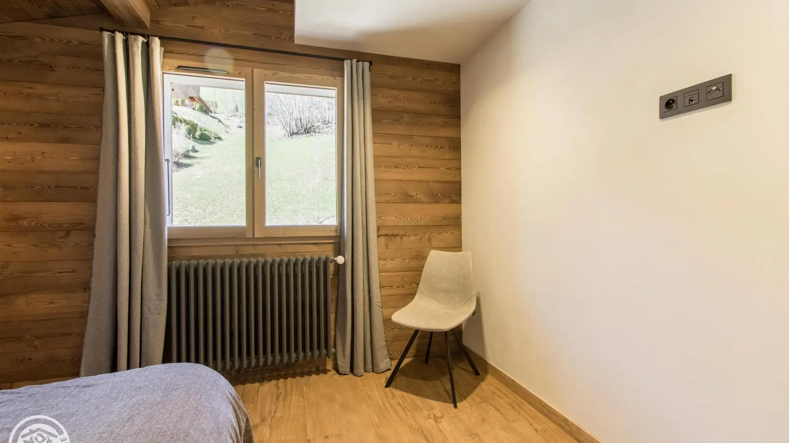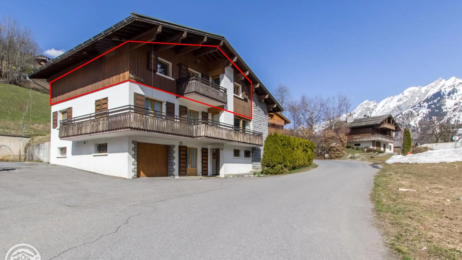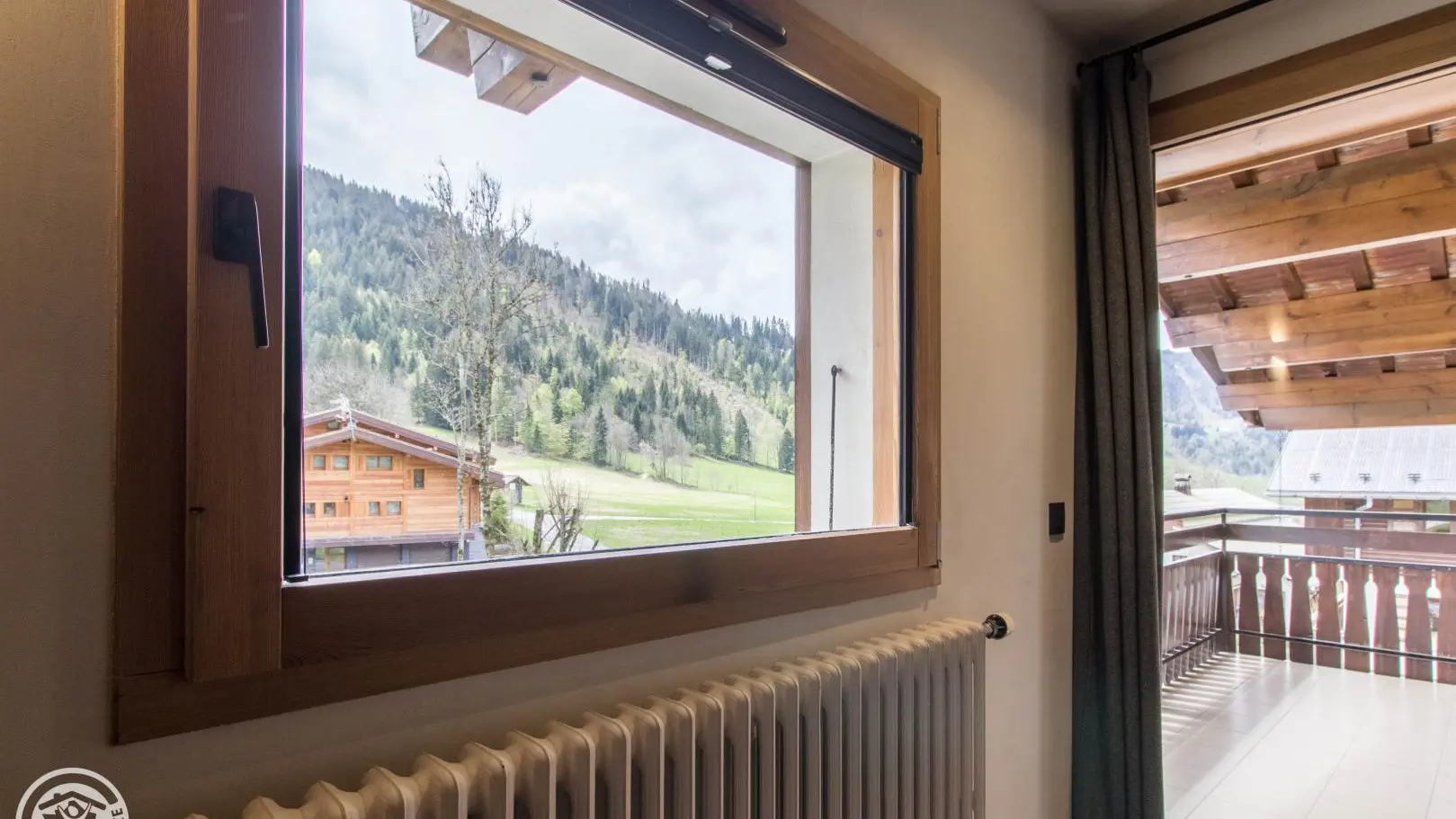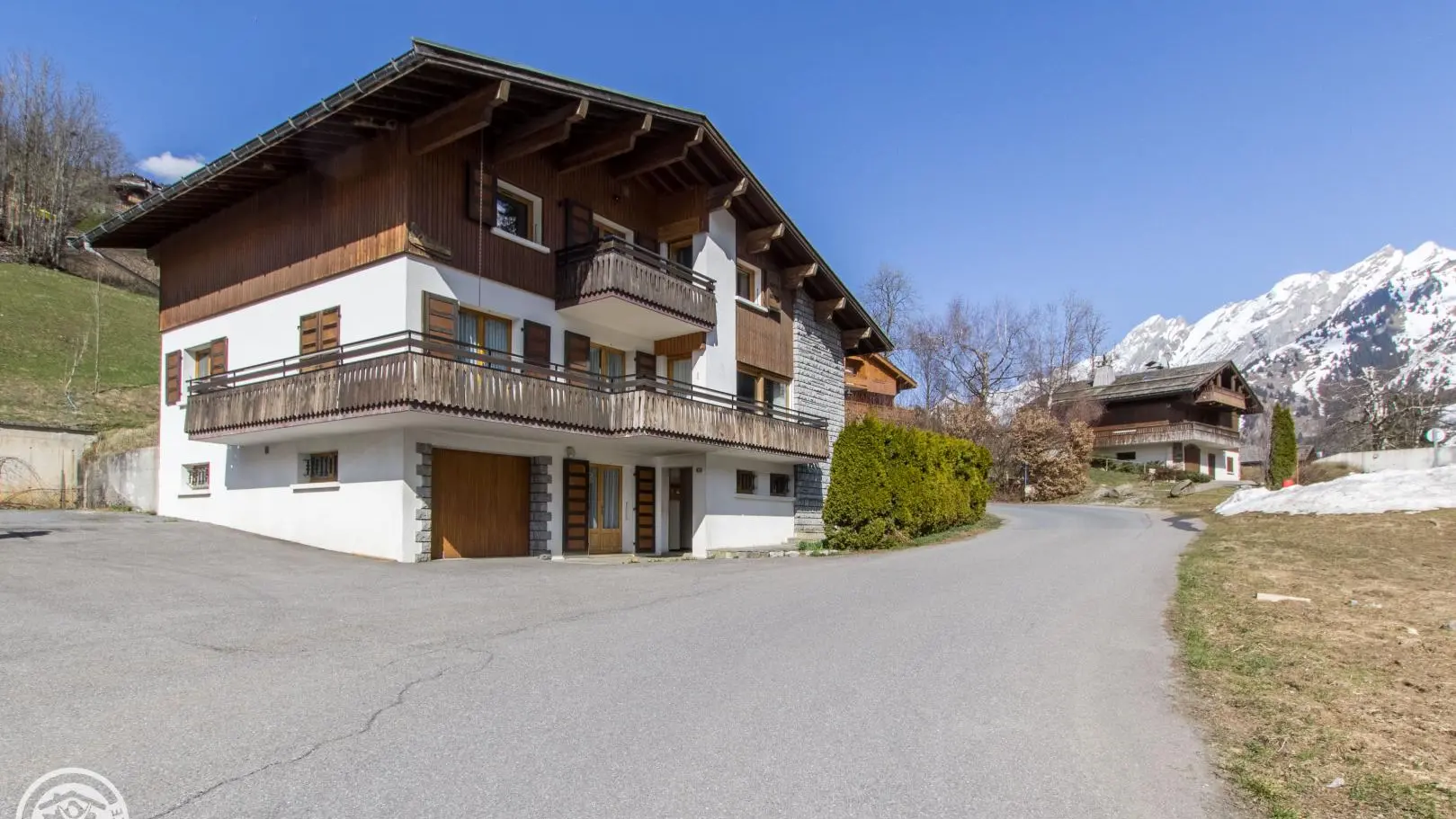 Small south-facing balcony with beautiful view of the mountains + garden on the side of the house (common space, 1st floor level), garden furniture, barbecue. Private parking on site. Local skis / bikes.