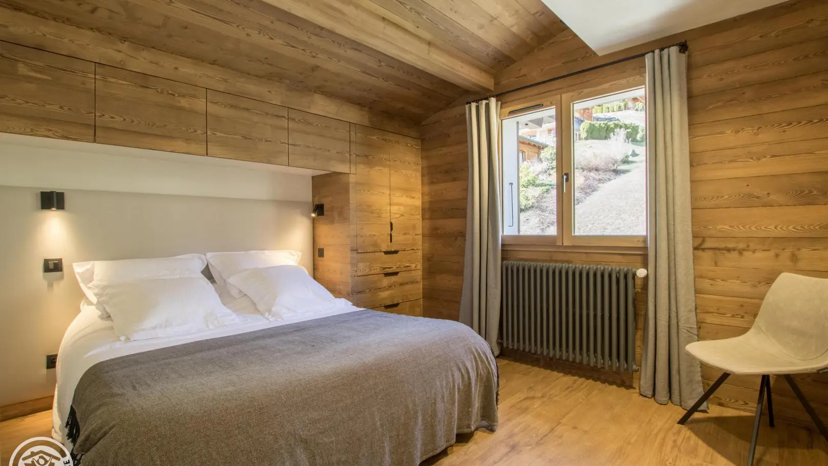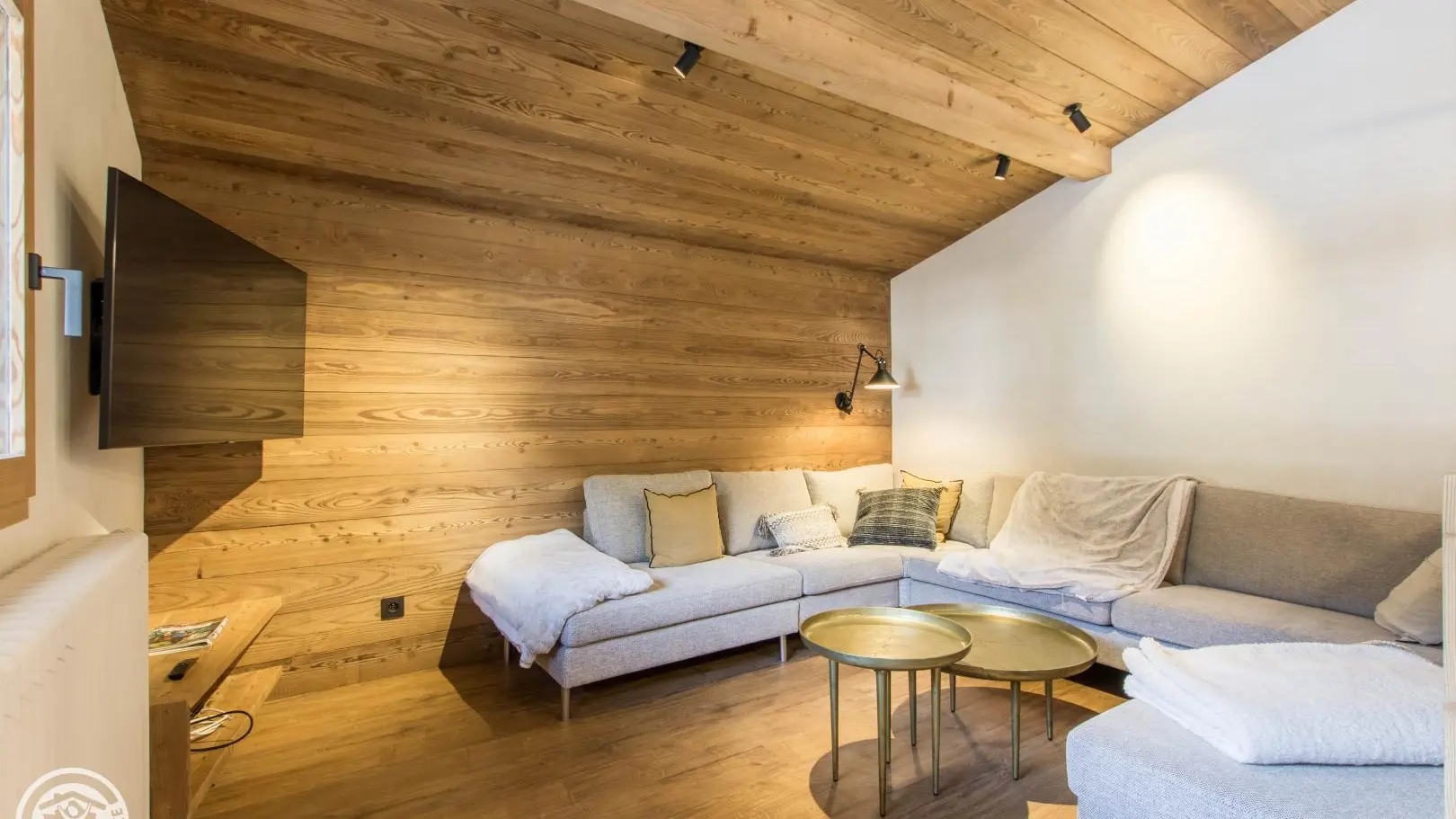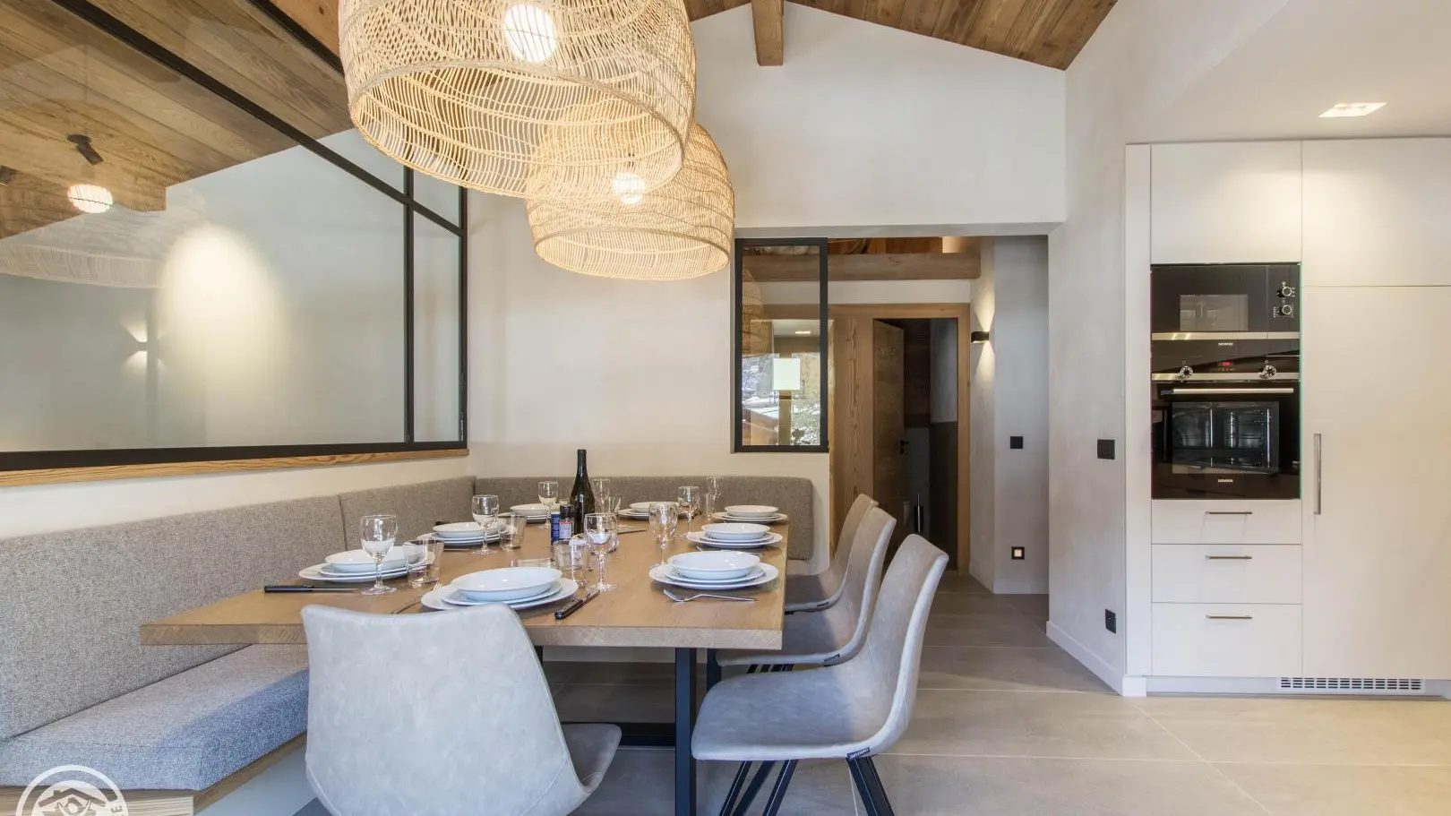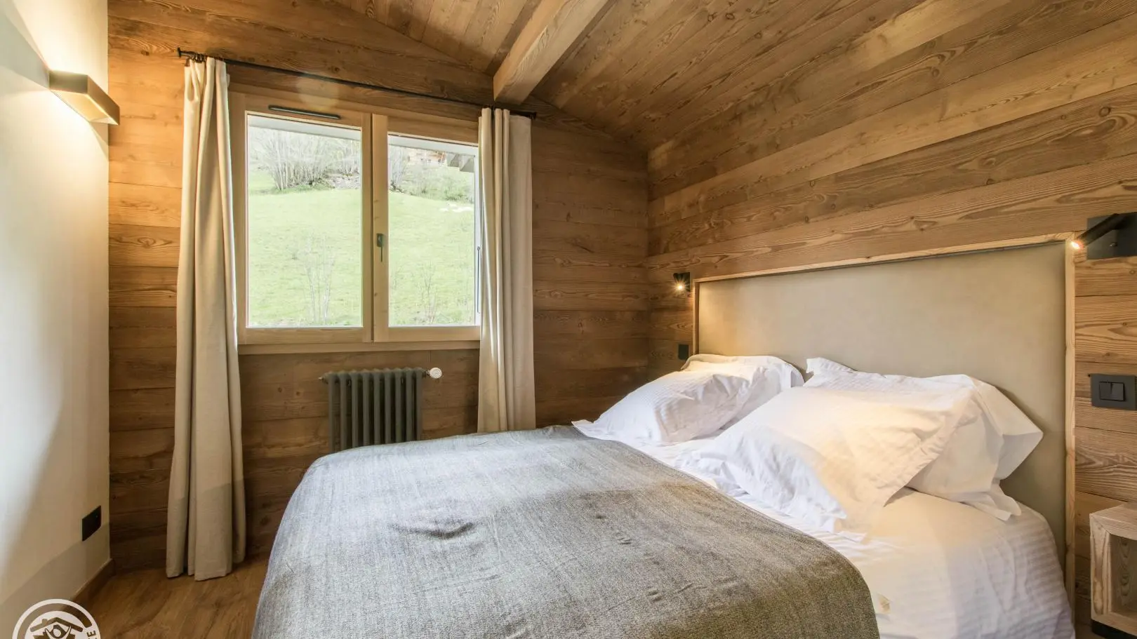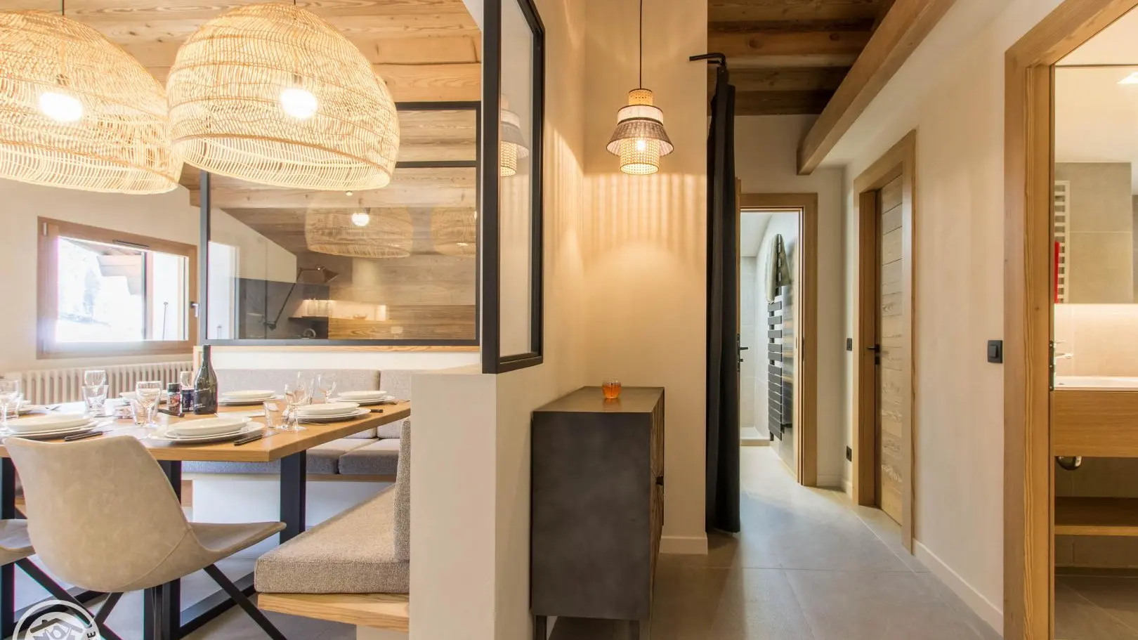 Small south-facing balcony with beautiful view of the mountains + garden on the side of the house (common space, 1st floor level), garden furniture, barbecue. Private parking on site. Local skis / bikes.