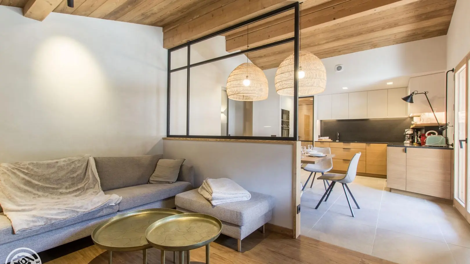 Apartment (90m²) furnished and tastefully decorated (designed by interior designer), on the 2nd floor of a house also comprising the owners' accommodation on the 1st floor and a studio on the ground floor. Common entrance.