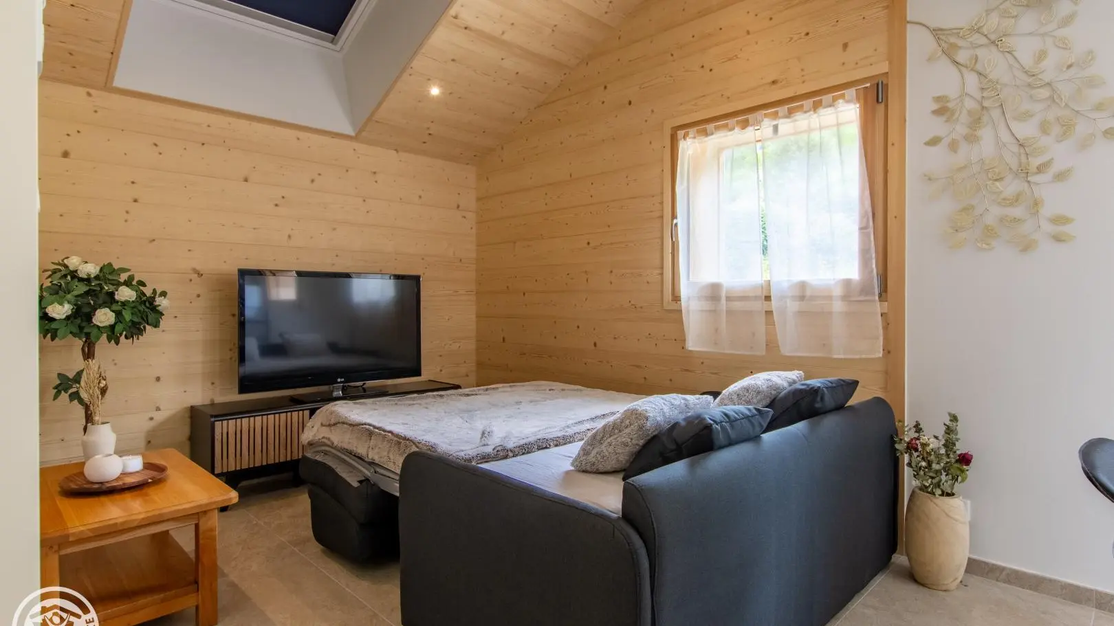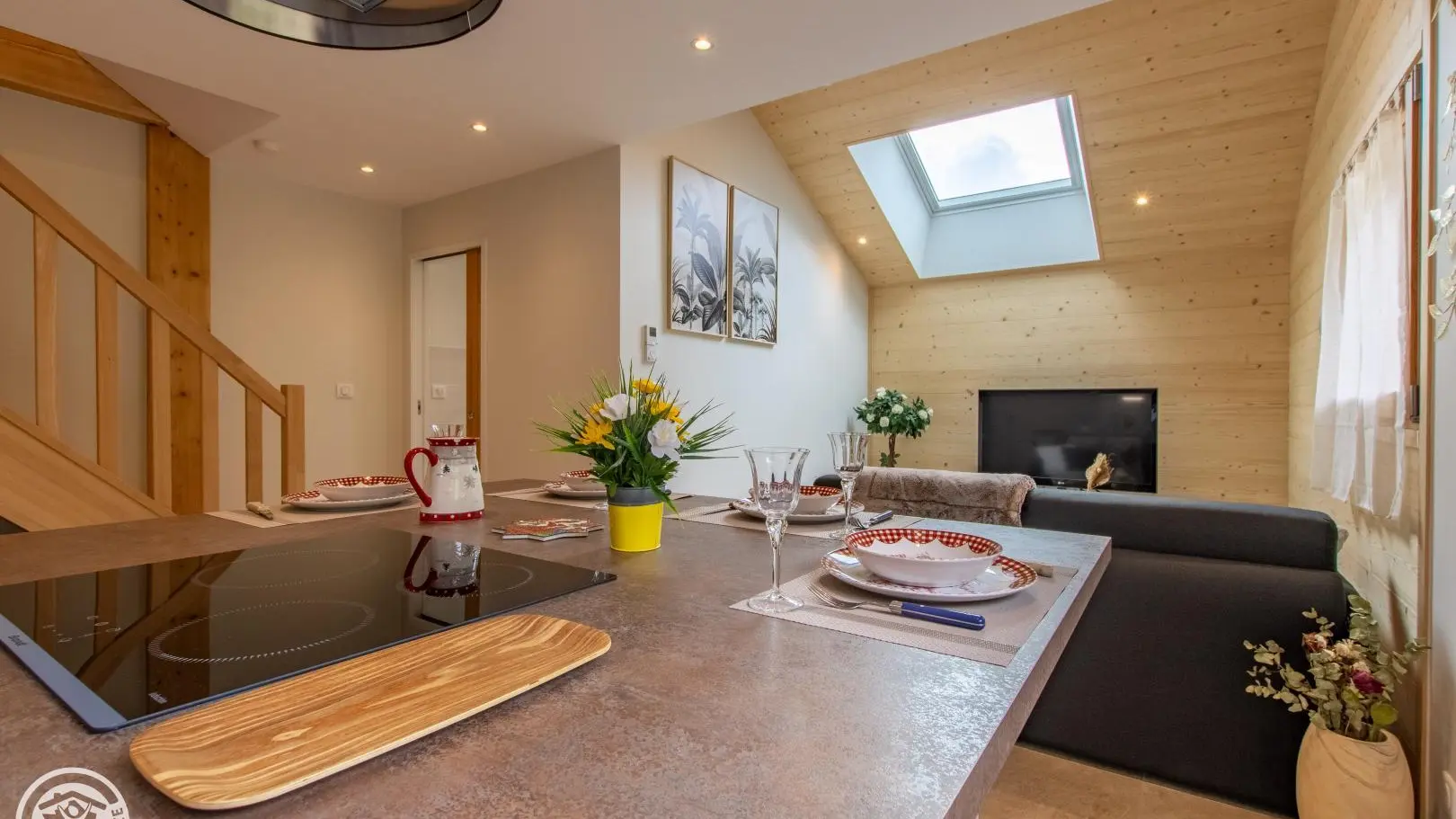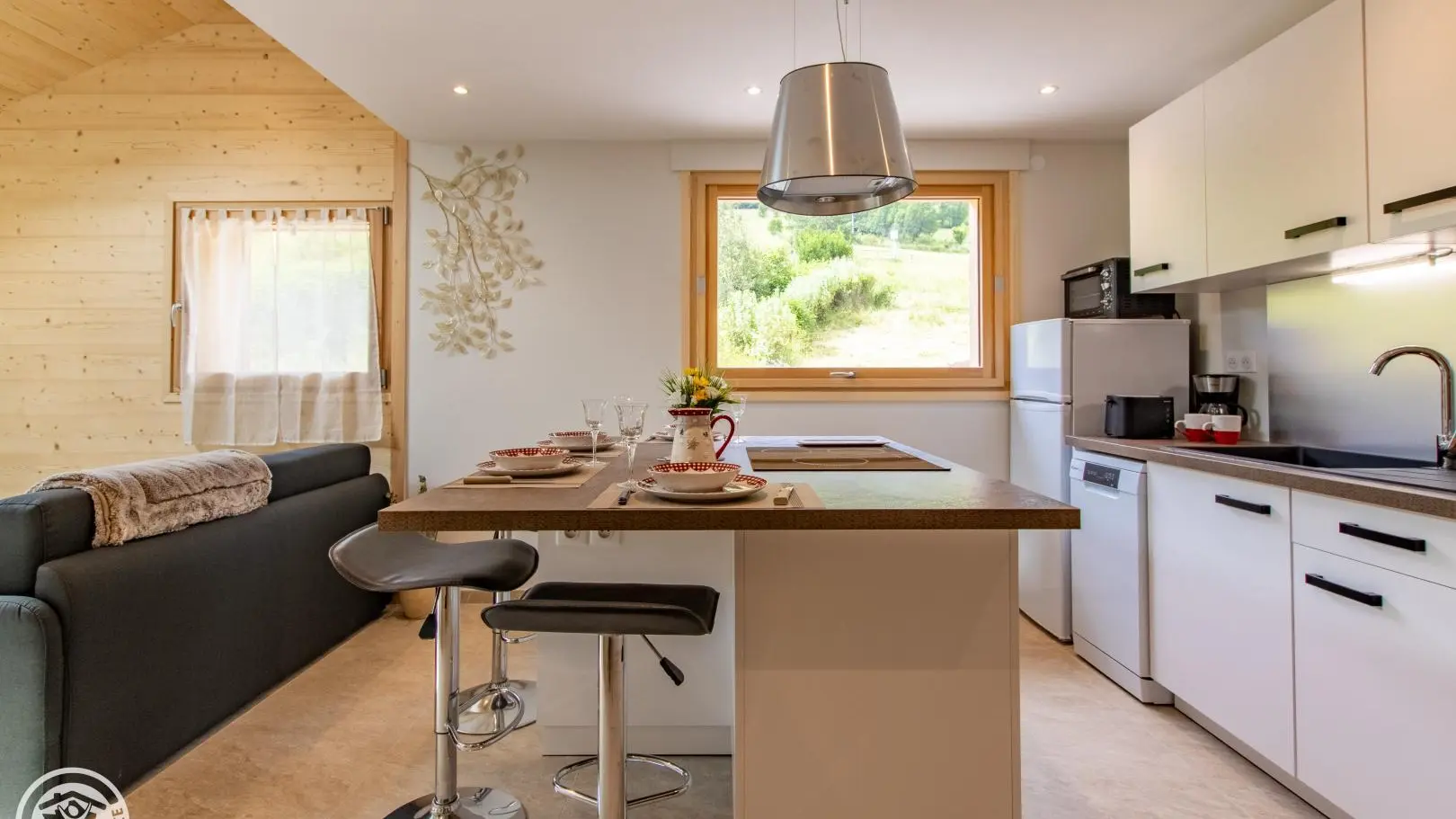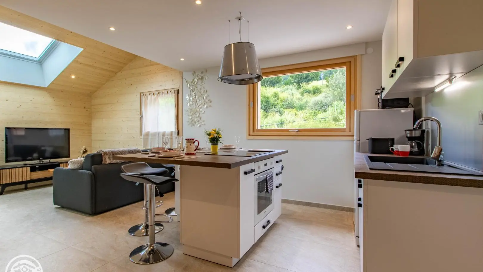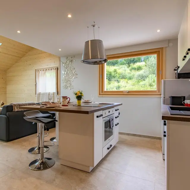 (37m²) - gîte on the 1st floor of a chalet also including the owners' accommodation and another gîte (reference 302030). Shared entrance for the 2 gîtes. Equipped kitchen open to the living room (meals on central island with stools, television, convertible sofa type rapido to sleep 2 people). Shower room with a sink on a cabinet, shower, towel dryer, washer-dryer, toilet. Duplex: attic bedroom with 1 bed 140x190cm. Bed linen / sheets and towels provided. End of stay cleaning optional. Wifi Internet. At the front of the chalet (lower part): shared garden with forest table, trampoline. Pétanque ground. Barbecue on request. 2 private parking spaces on site. Possibility to leave bicycles or motorcycles in the owners' garage. Leisure and services: supermarket 900m away, shops in Saint-Jean-de-Sixt 5km away.