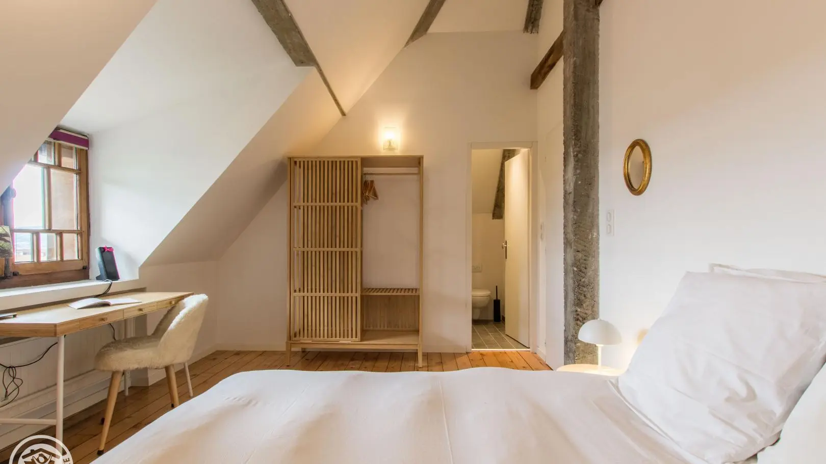 2nd floor: large living room with desk, sofa, armchair, balcony. Bedroom 4 (1 bed 140x190cm, bathroom with shower, basin, wc, heated towel rail).