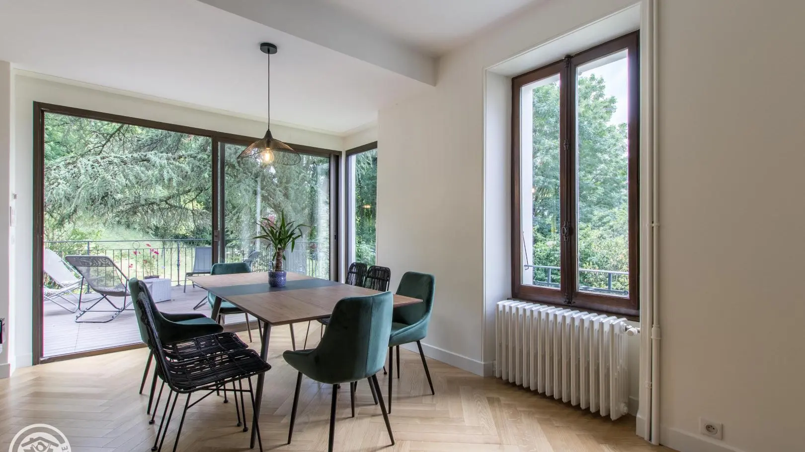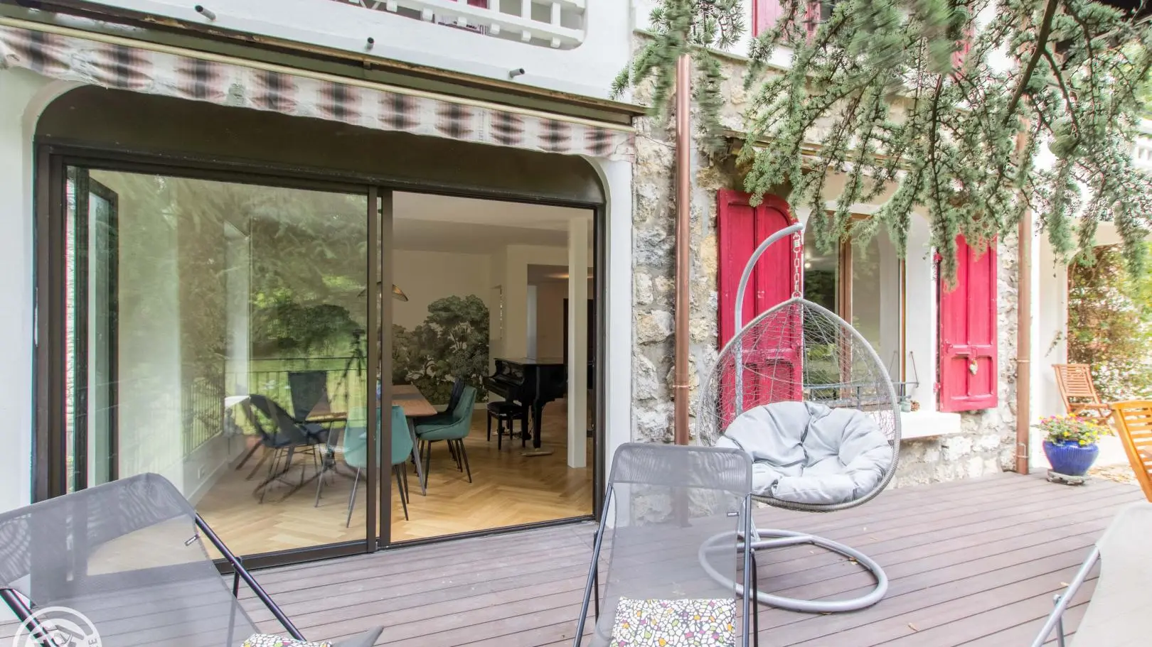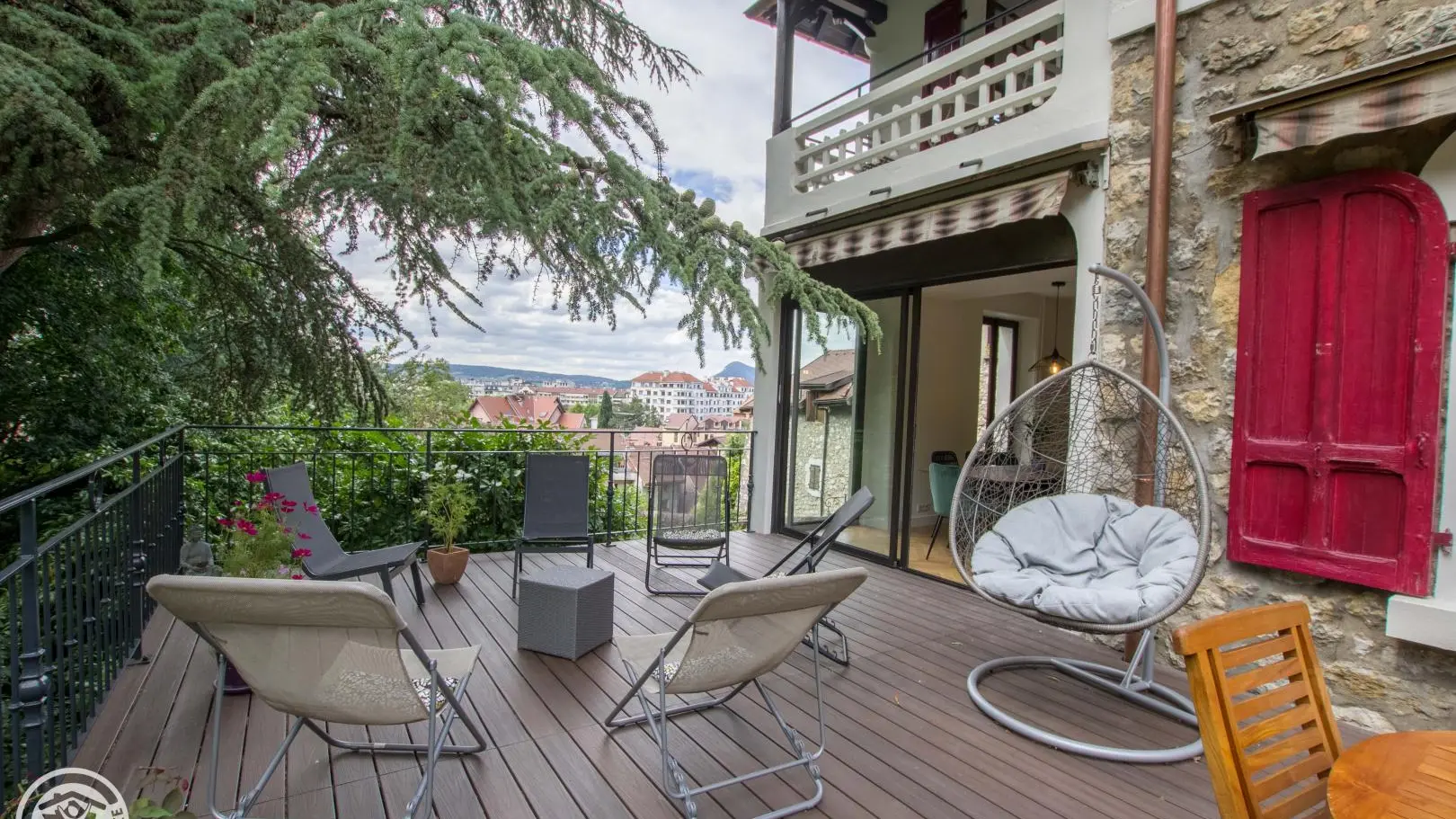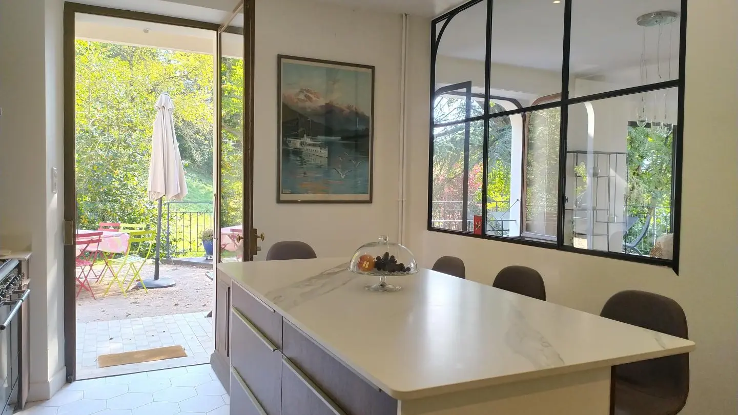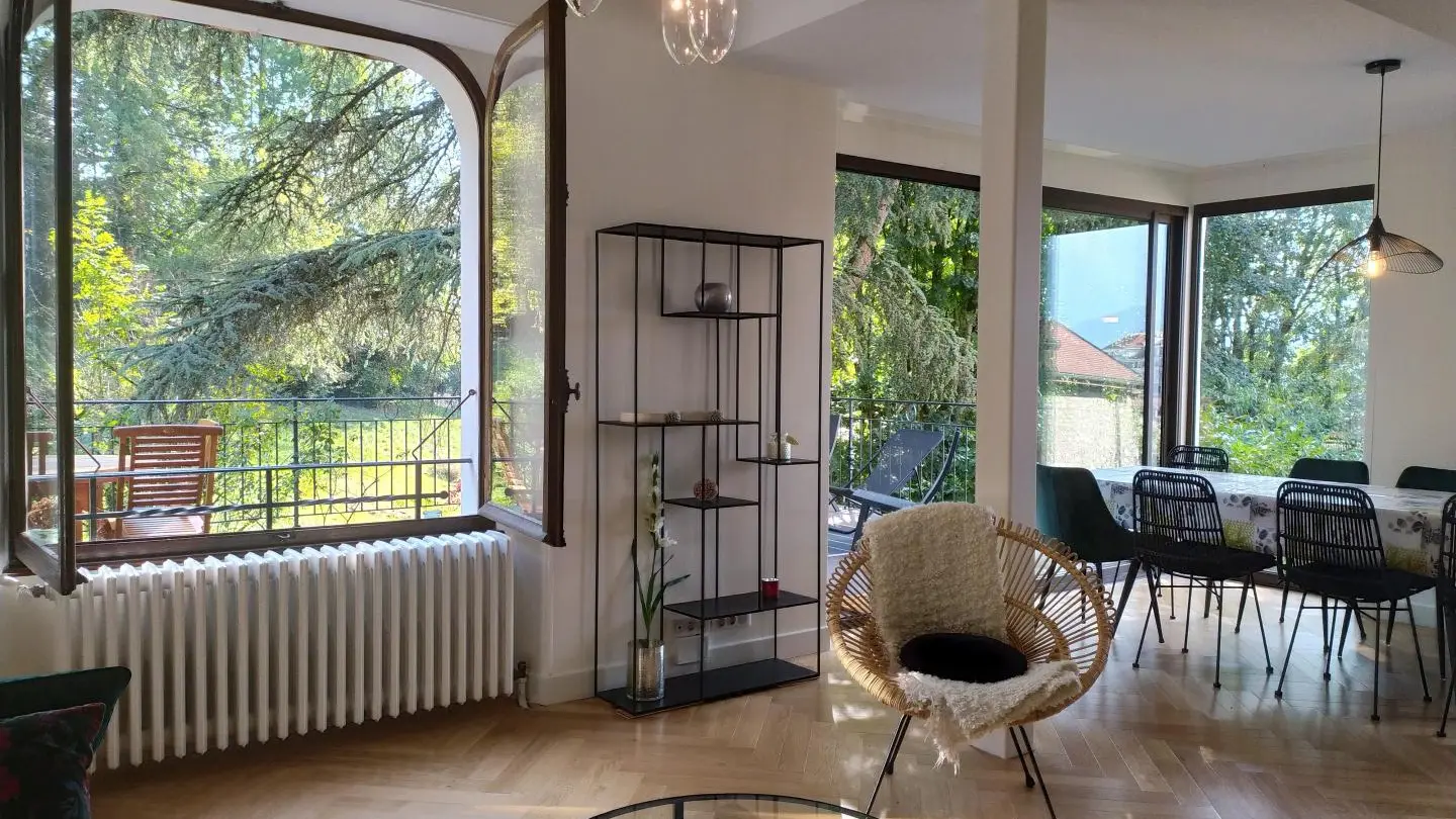 Luxury appointments for this very beautiful house of 167m² located in the heart of Annecy, next to the Château, with a large plot, terrace and private parking. A studio is also for rent (ref. 10004) on the lower part of the house, independent access and entrances, only the parking in the courtyard is shared. Possibility to rent the whole house. Accommodation with the Green Key label.