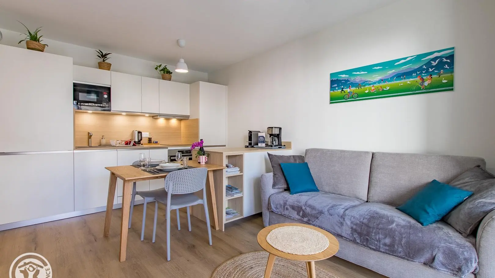 33m² apartment (+ 8m² balcony) for up to 2 people, located on the 3rd floor of a beautiful building with an elevator.