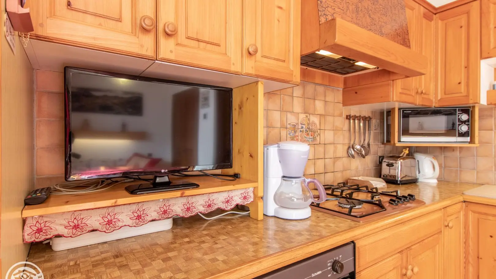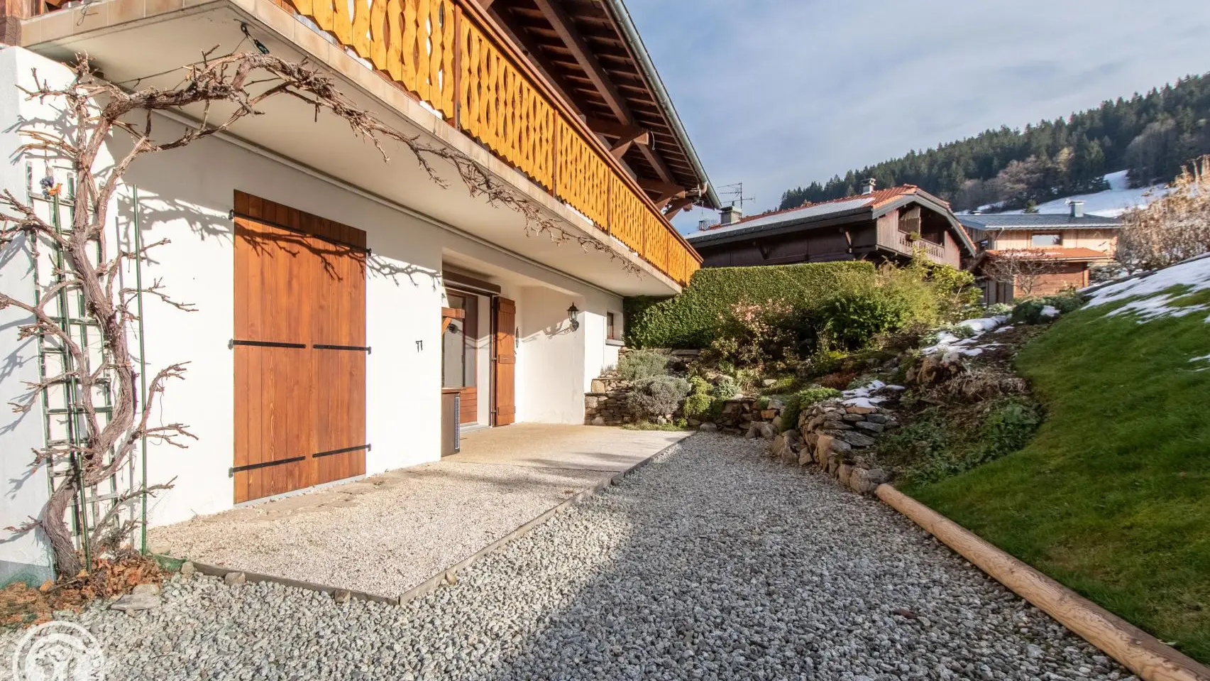 Gîte (30m2) on ground floor of owners' house. Living room (2 single stowaway beds) + kitchen area (microwave), bedroom (double bed), shower room, WC. Electric heating. Washing m/c available. Terrace, garden furniture, garden, parking. Bed linen supplied. La Princesse ski area (linked to Megève/Saint-Gervais) 500m. Combloux 2km. Free shuttle for Combloux/Le Jaillet ski area.