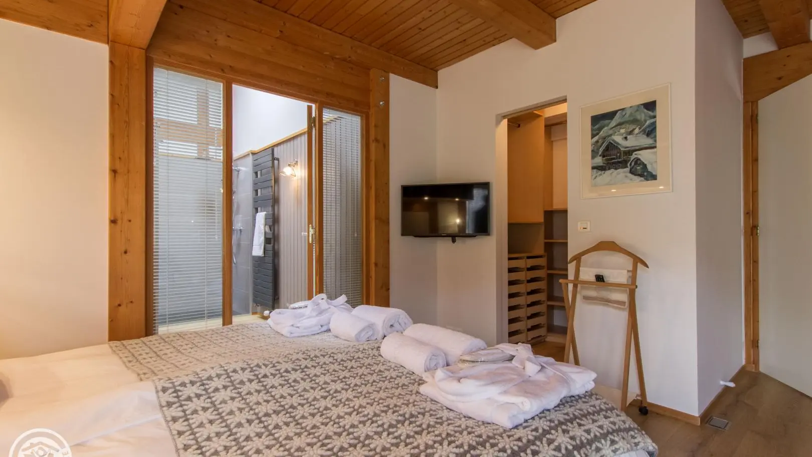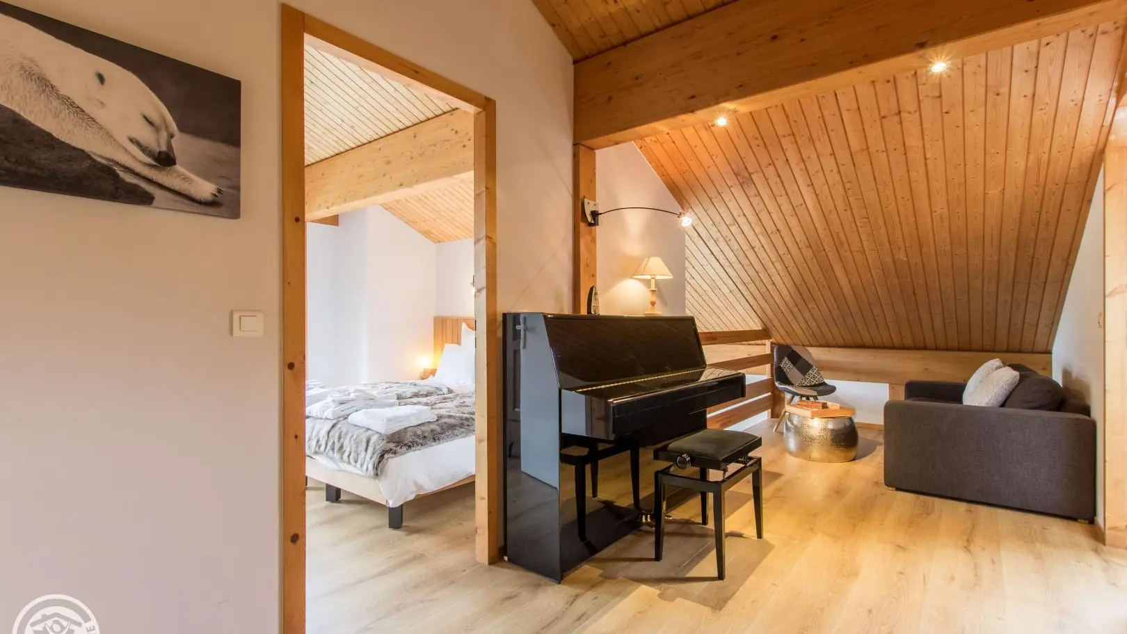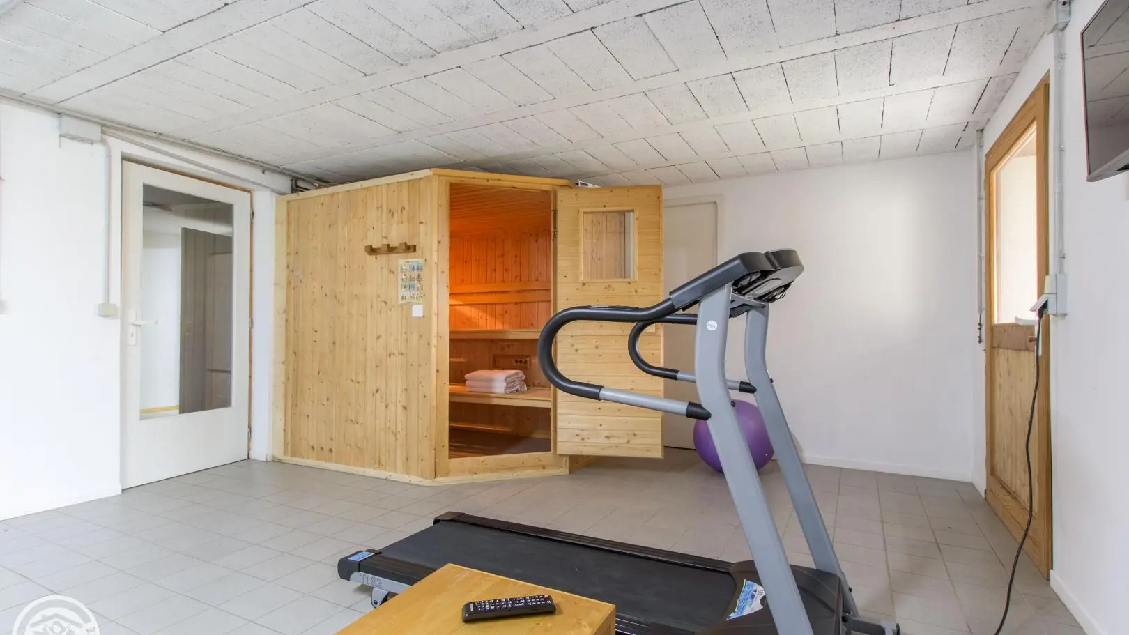 On the ground floor (lower part of the chalet): large room with sauna, bike, treadmill. Laundry room with washing machine and dryer.