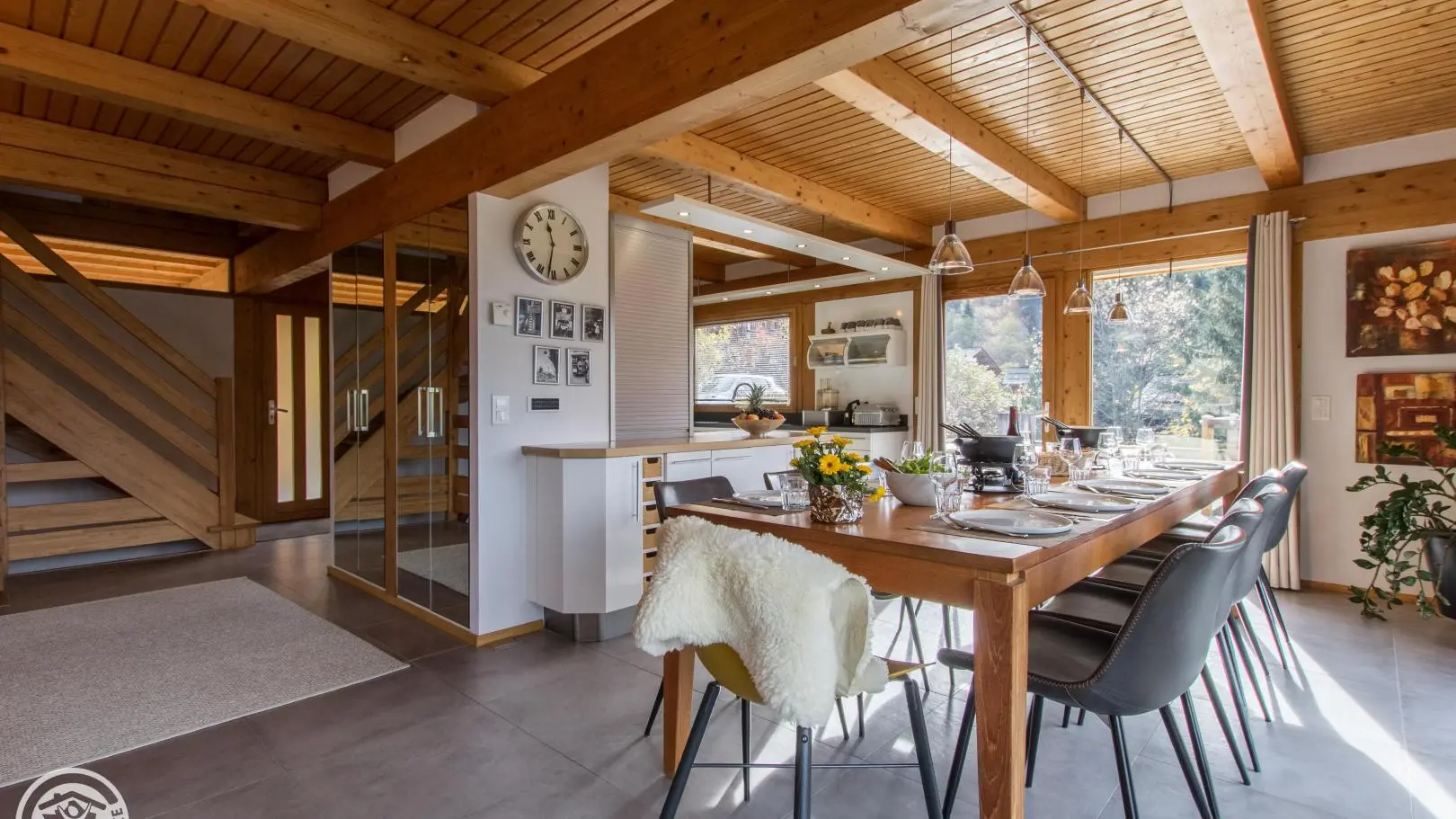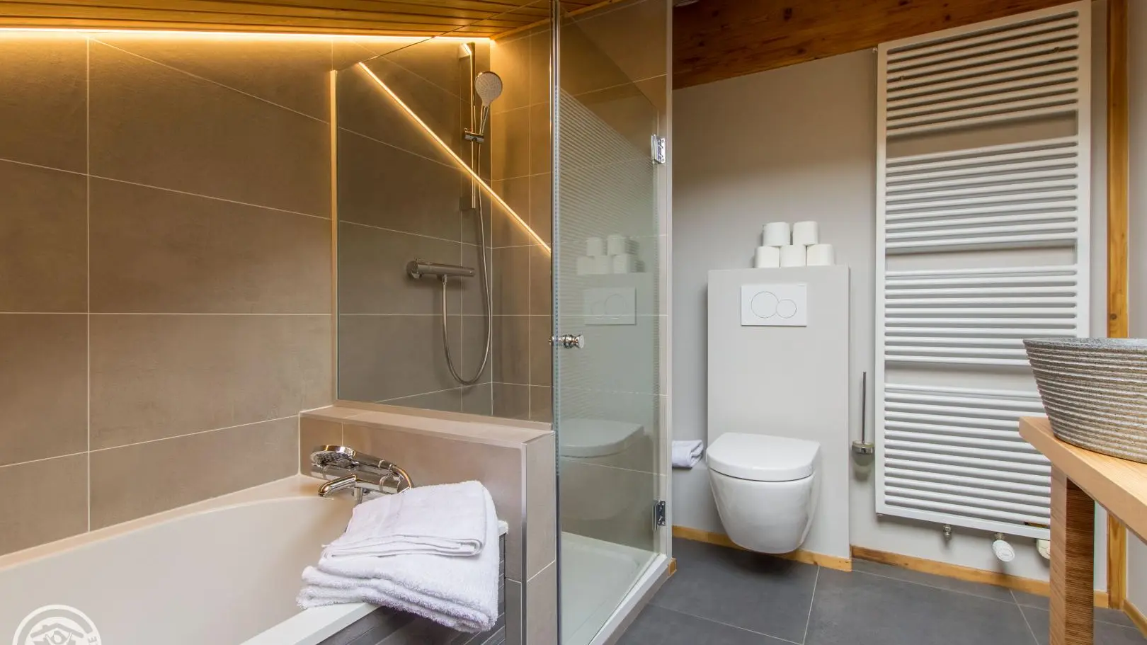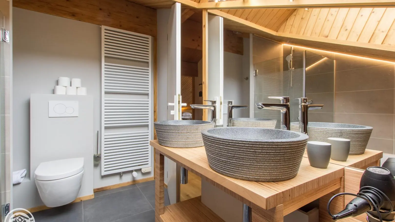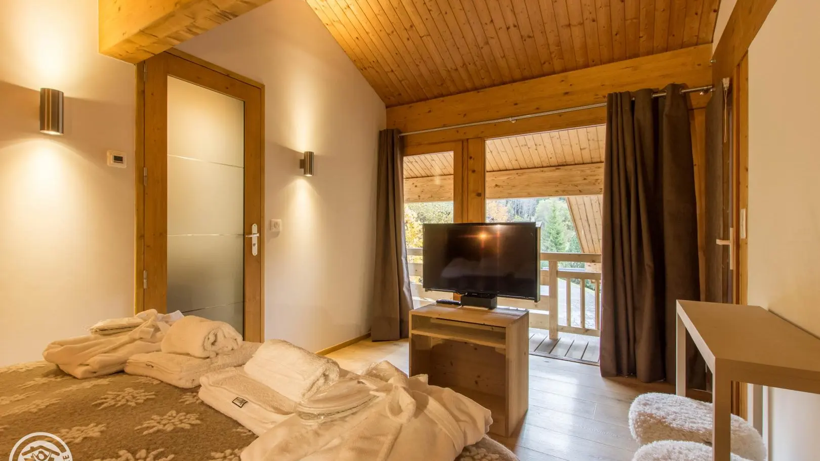 On the ground floor (lower part of the chalet): large room with sauna, bike, treadmill. Laundry room with washing machine and dryer.