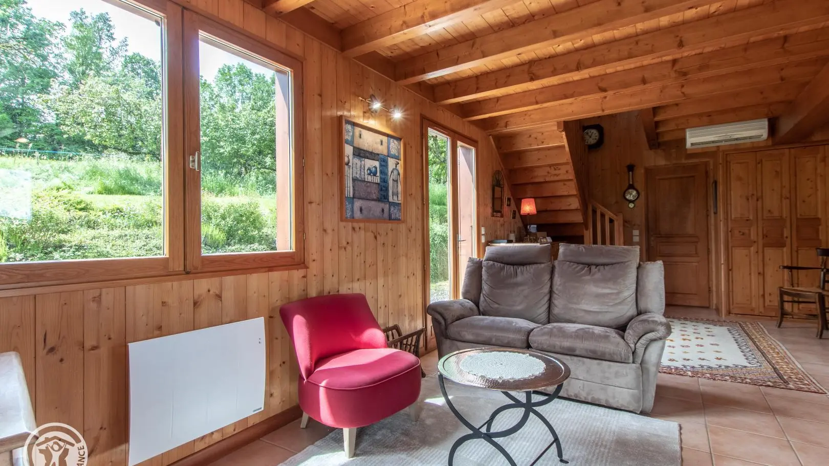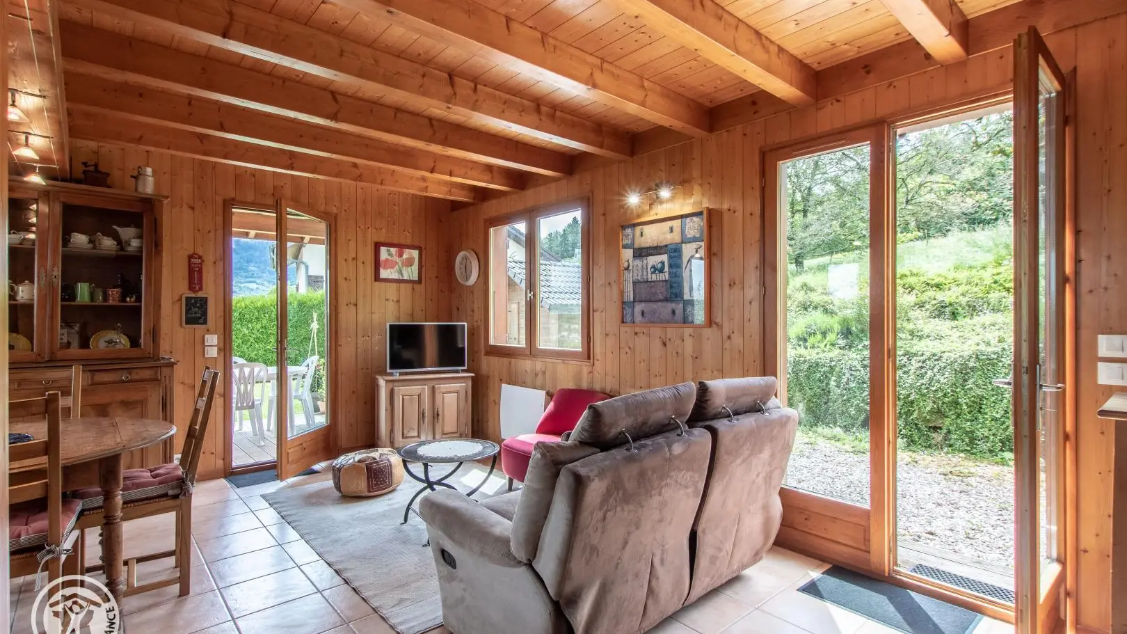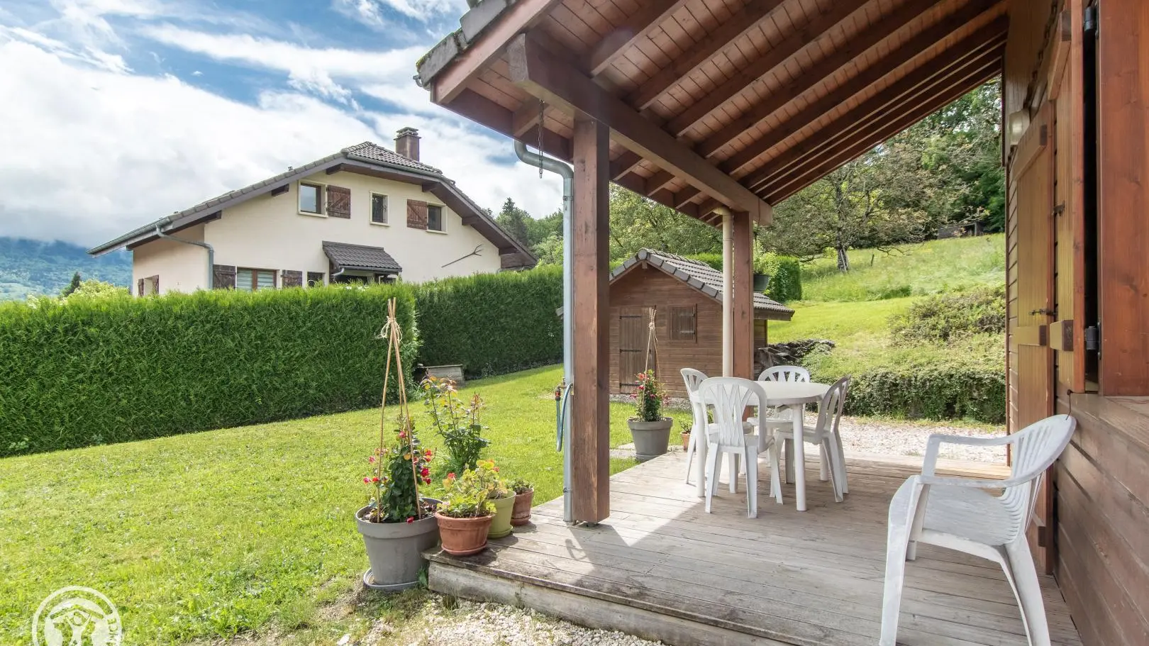 In an enchanting setting, near the medieval village of Alby-sur-Chéran and halfway between Annecy and Aix-les-Bains, independent gîte with a chalet style, carefully furnished on two levels offering a closed garage and a beautiful outdoor space with sheltered terrace. Ideal for feeling at home!