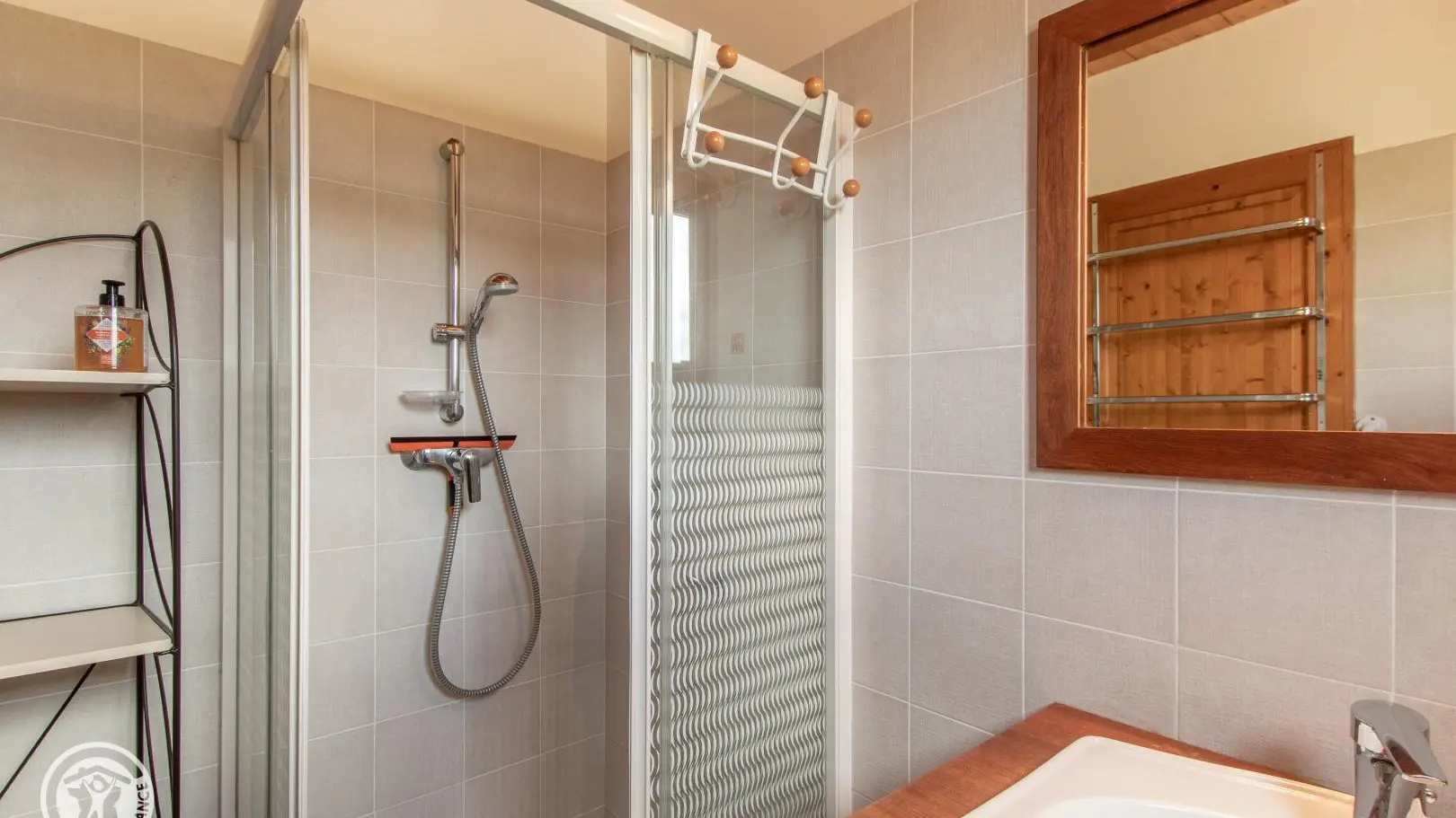 Independent gîte of 75m² (+ 8m² attic) on two levels with closed garage. Independent, level access from the parking lot. On the ground floor: entrance hall with cupboard and access to the bathroom (shower, WC). Living room composed of a lounge with TV on furniture (sofa, armchair), an open kitchen with dining table for 4 people. Access to the garage from the inside, including a laundry area. Access to outdoor spaces from the kitchen and living room. On the 1st floor, small corridor giving access to the two bedrooms and the separate WC. Bedroom 1 with 140x200cm bed and bedroom 2 with a 140x190cm bed + 90x200cm bed.