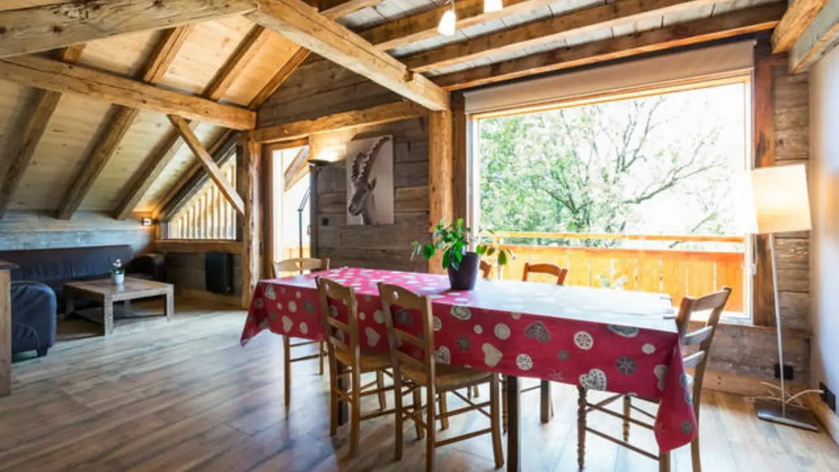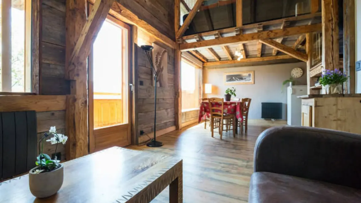 5 minutes from the center of the traditional village of Samoëns, the apartment with Savoyard charm, in old gray wood, can accommodate 7 people.