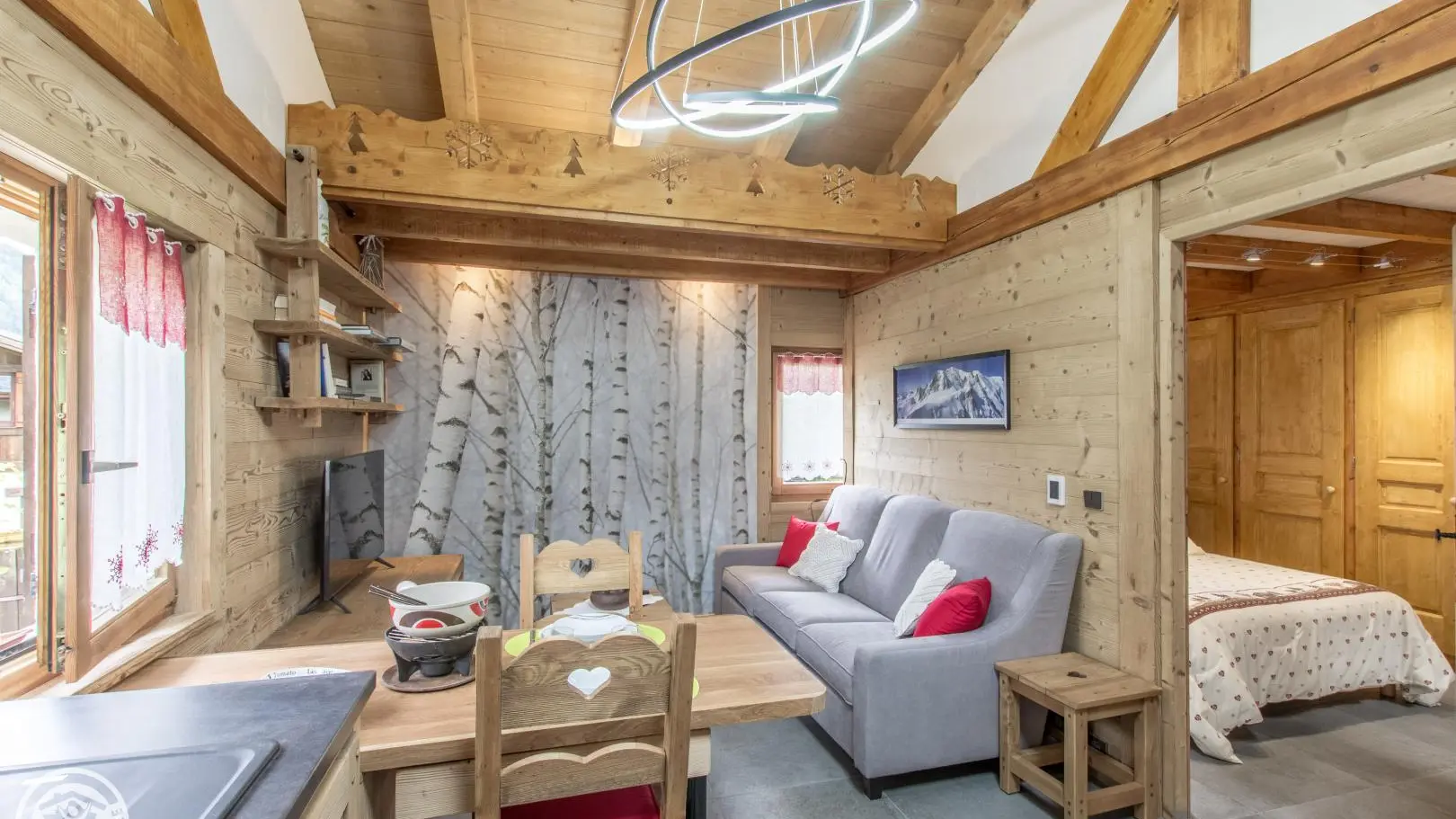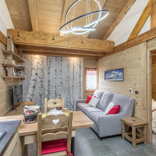 Les Houches center at 3km, shops at 1.5km.