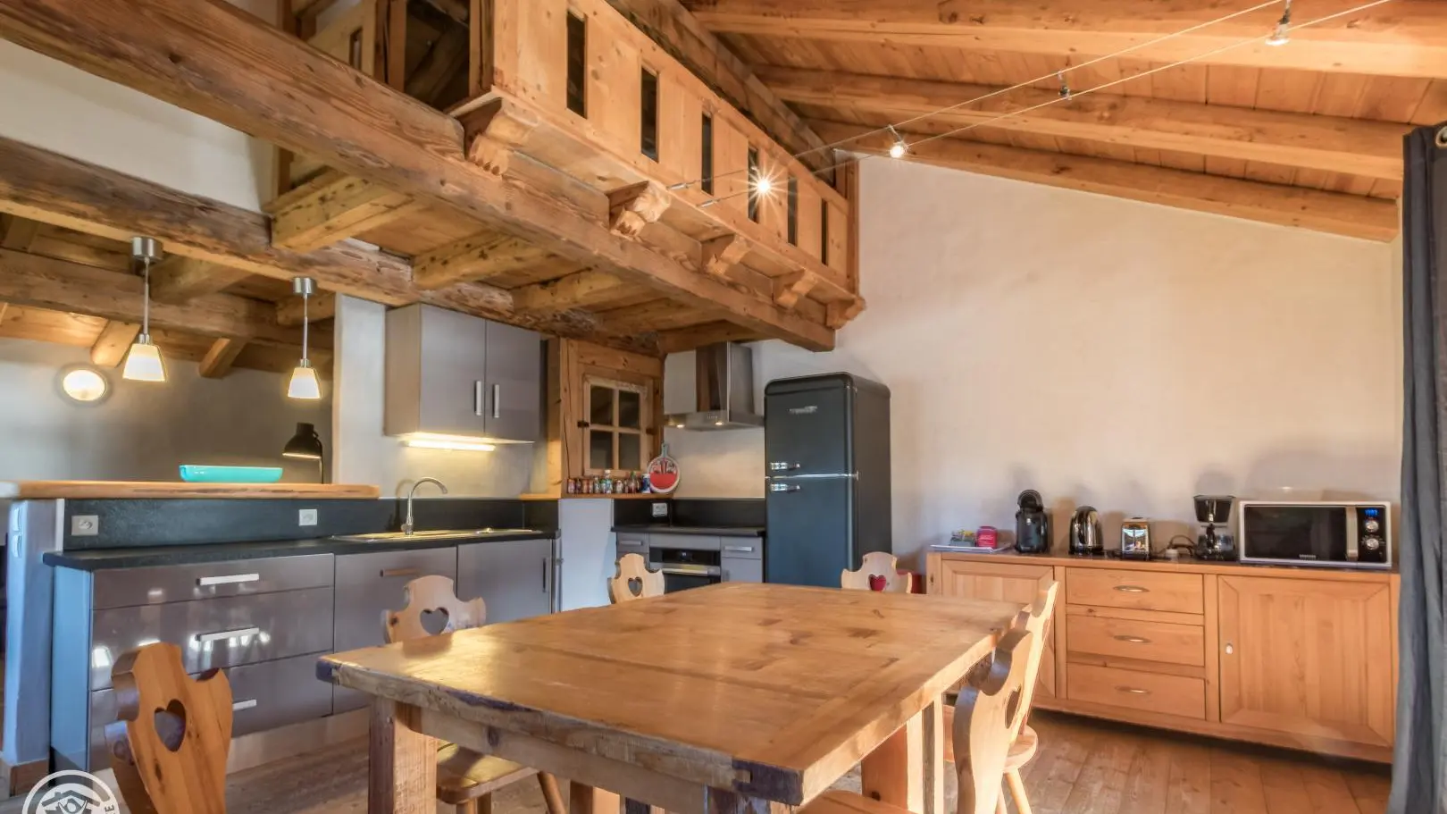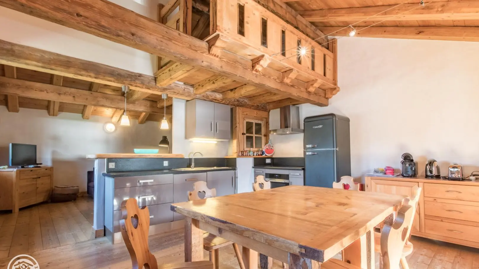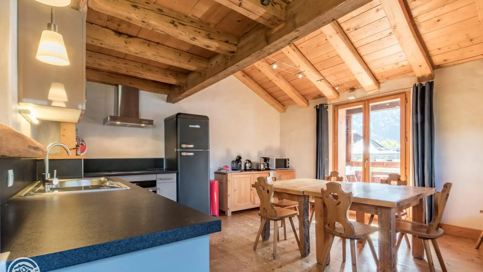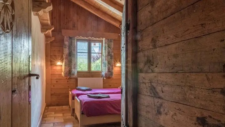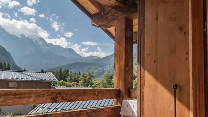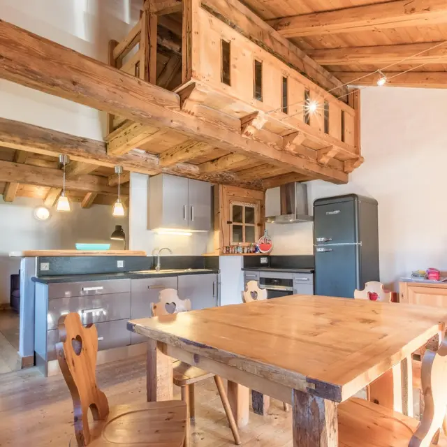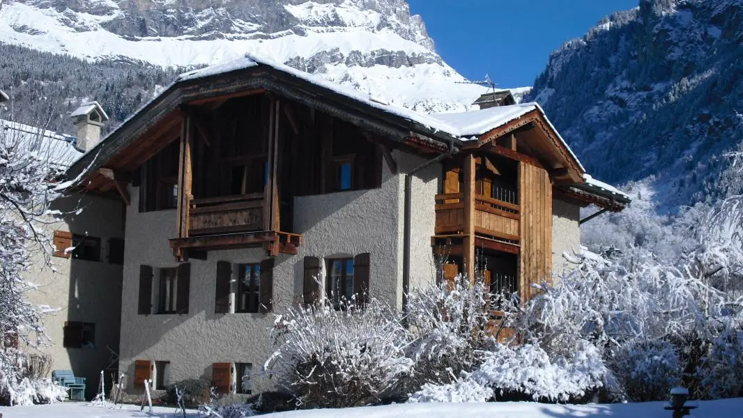 In a house of character facing the Mont-Blanc, in the heart of the village of Servoz, cottage of 124m2 arranged on 2 levels on the 1st floor of a house also including other gites. On the 1st floor: entrance, bedroom 1 (1 bed 90) communicating with bedroom 2 (1 bed 160 - or 2x80, bathroom with toilet), bedroom 3 (1 bed 160 (or 2 beds 80), wc). In 1/2 upper level: large room to be lived with equipped kitchen opened on stay, south balcony, room 4 (1 bed 140, room of water, toilet). Bed linen provided, beds made on arrival. Ski in Les Houches 6km, Chamonix 10km. Beautiful hiking from the gite. 10% discount for stays from 3 weeks.