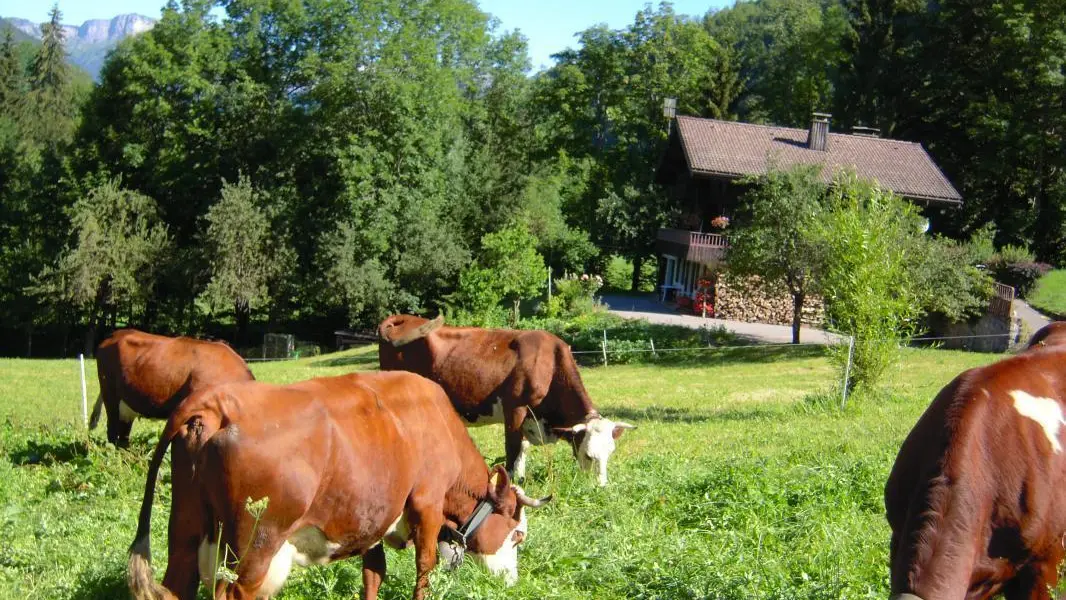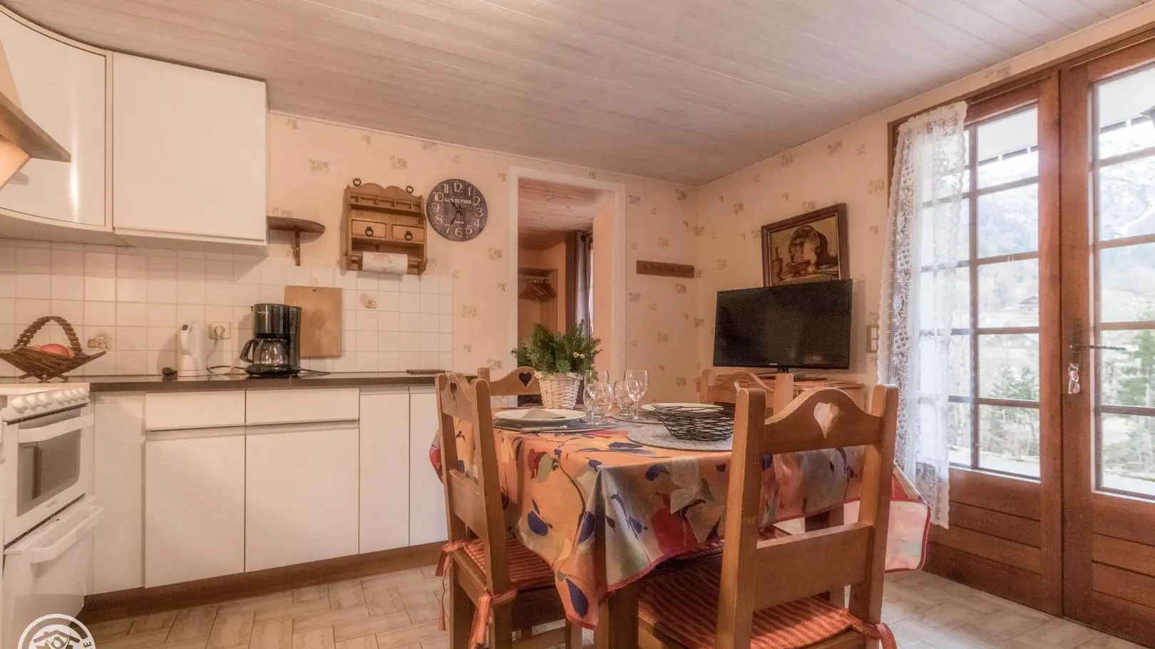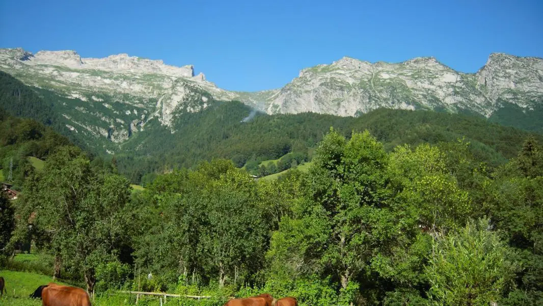 In quiet location opposite La Tournette (mountain), gîte (32 sq. m., separate entry) on ground floor of owners' house. Kitchen/living room, bedroom (double bed), bedroom (single bed 90X200), shower room, WC. Central heating. Terrace, garden furniture, BBQ. Thônes (all shops and activities) 4.5km. Annecy & its lake 25km. La Croix Fry ski resort 14km, linked to La Clusaz via the Merdassier ski area. Le Grand-Bornand 15km.