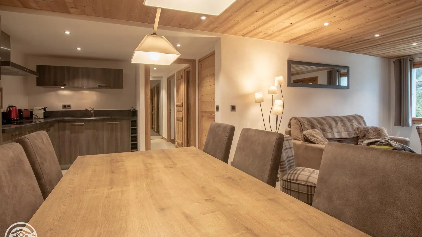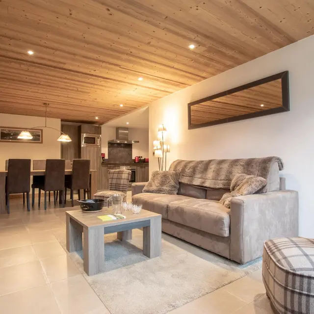 Ideally located between Combloux and Megève, just 400m from the Princess gondola (Megève ski area), fully renovated 60m2 gîte on the garden level of a traditional farmhouse also including owner's accommodation. Integrated kitchen open to living room, Bedroom 1 (1 bed 160x200), Bedroom 2 (2 beds 90), shower room, separate toilet. Terrace with garden furniture, barbecue, common ground. Sheets are provided as well as towels and beds are made on arrival. Free shuttle at 50m (winter season). Summer: Combloux natural lake 2km away, Saint-Gervais thermal baths 12 km away. Gîte set back from the road linking Combloux and Saint-Gervais to Megève.