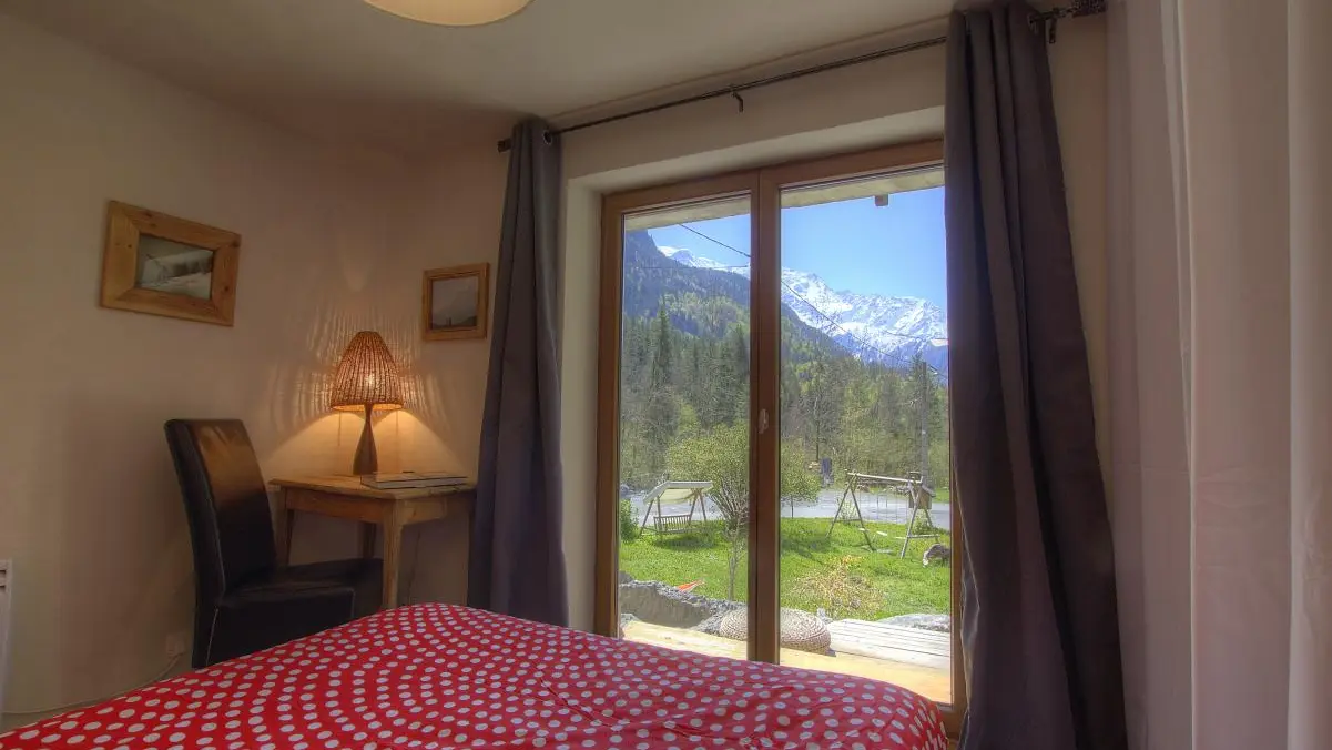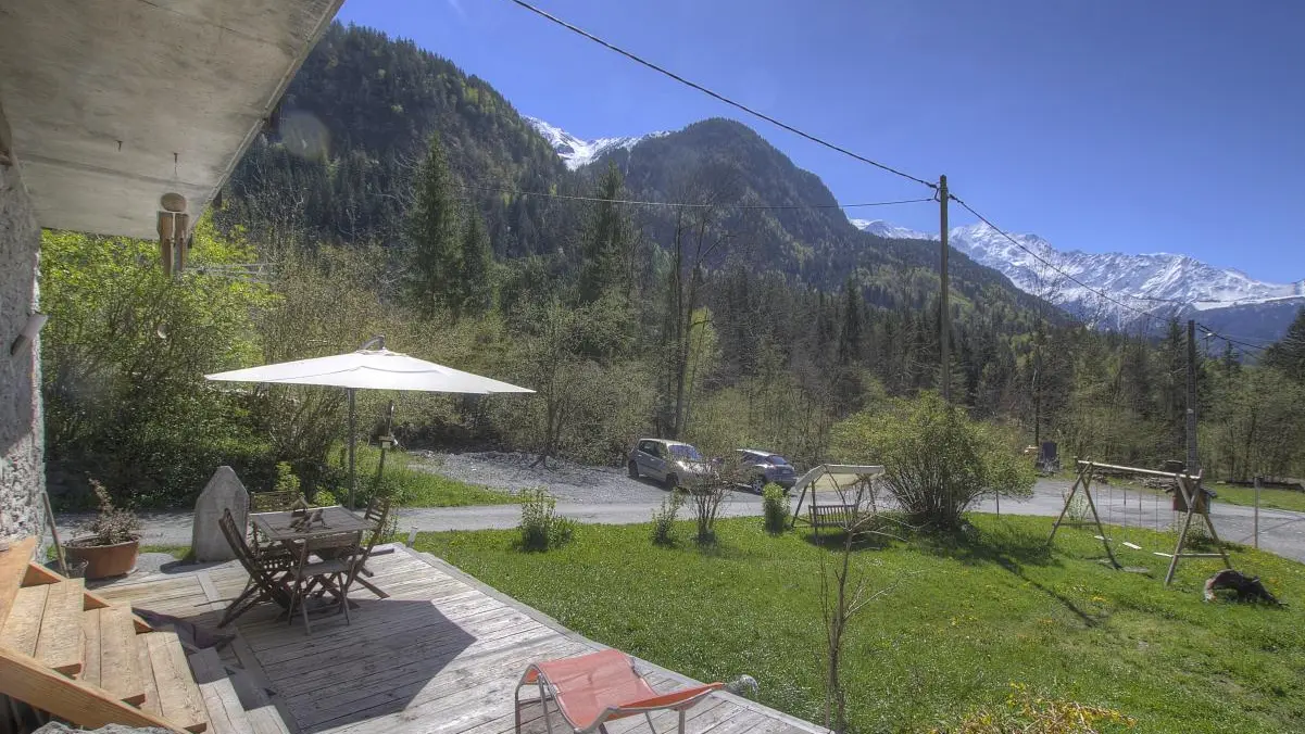 At the gates of Chamonix, cozy cottage, cosy and charming nestled on the heights of a village authentic Valley of Mont Blanc. Quiet environment, and view breathtaking on the massif of Mont Blanc from the terrace, the room and the living room. South exposure. Capacity of 2 to 4 people.