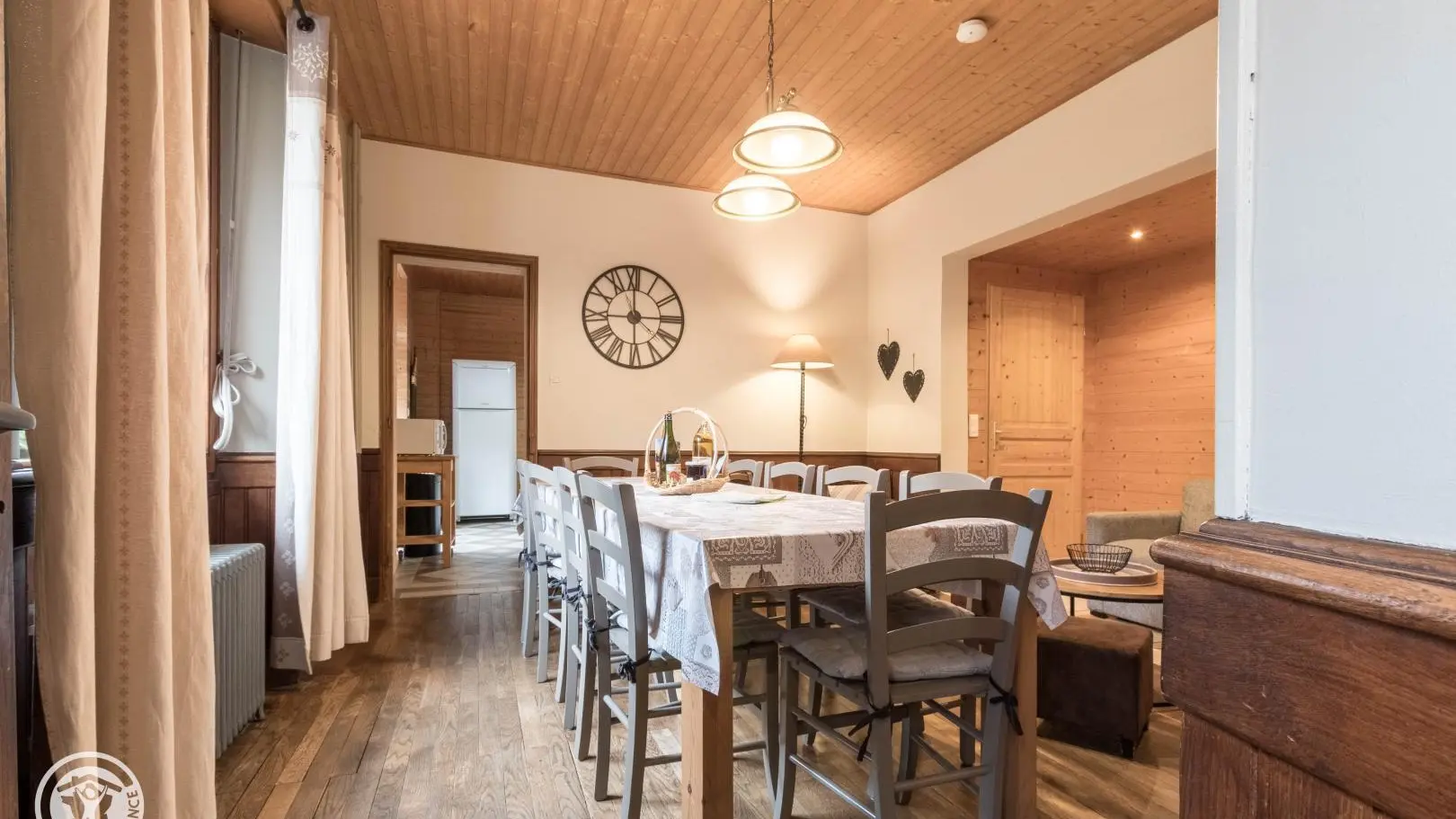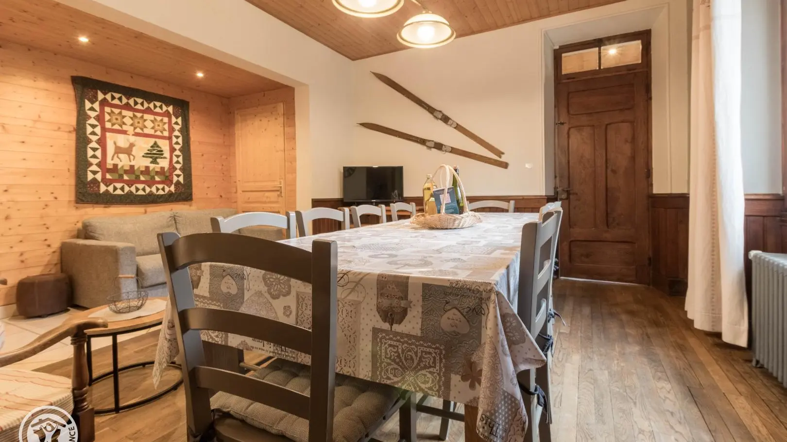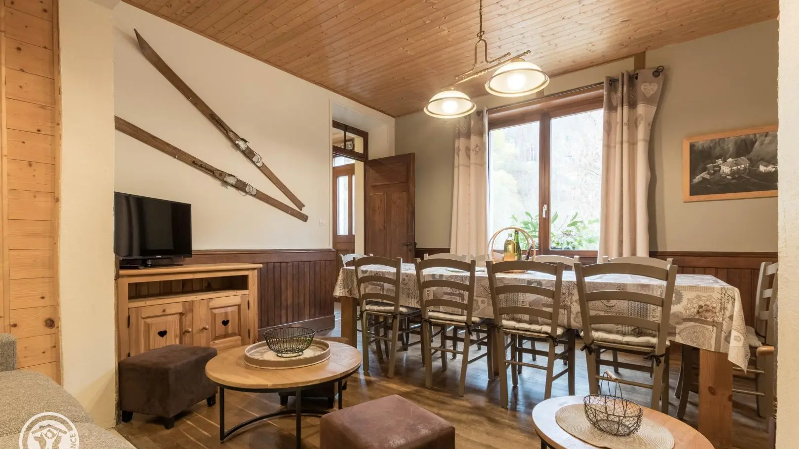 On banks of Le Fier (trout river), gîte (97 sq. m., on 2 levels) which can be rented with adjoining gîte no. 79049 to accommodate 15 people. Ground floor: kitchen (microwave), dining room, bedroom (double bed), shower room, WC. 1st floor: 2 bedrooms (beds: 7 single, which 2 bunk), shower room, WC. Terrace (garden furniture), car port. Shared: games room (Internet connection), utility room, garden (2,000 sq. m., climbing frame), BBQ. 10% reduction for stays of 3 weeks. Public tennis court 500m, hiking/riding trails on the doorstep. Thônes 4km, Annecy lake 15km. Ski resorts: La Clusaz, Le Grand-Bornand 15km. 2 pets allowed. Bed linen hire.