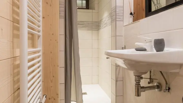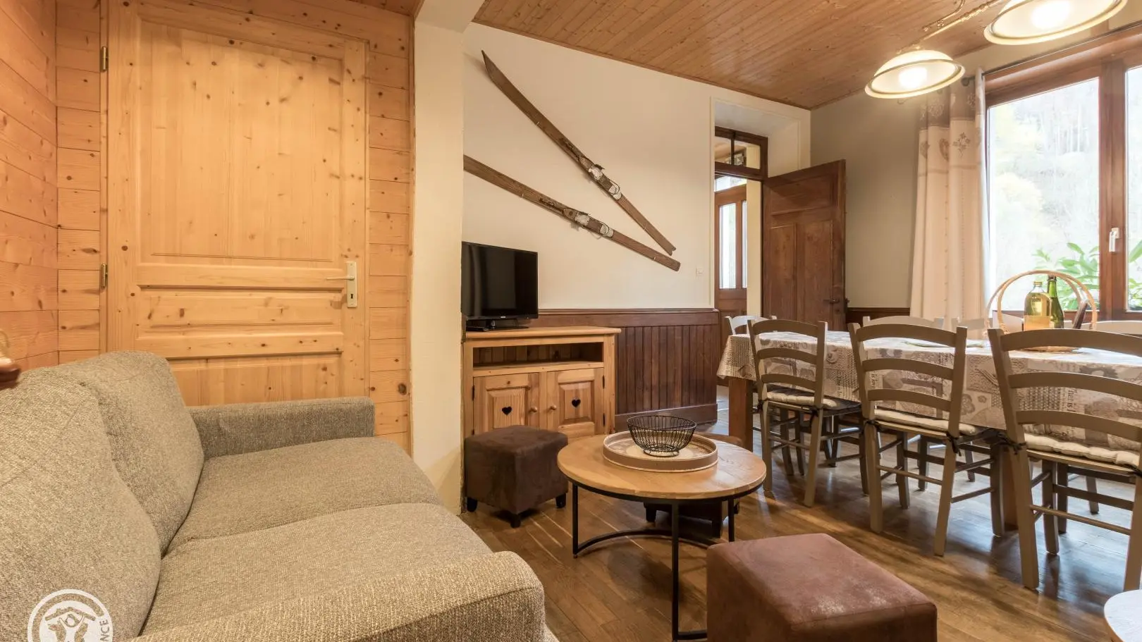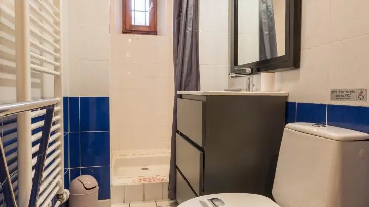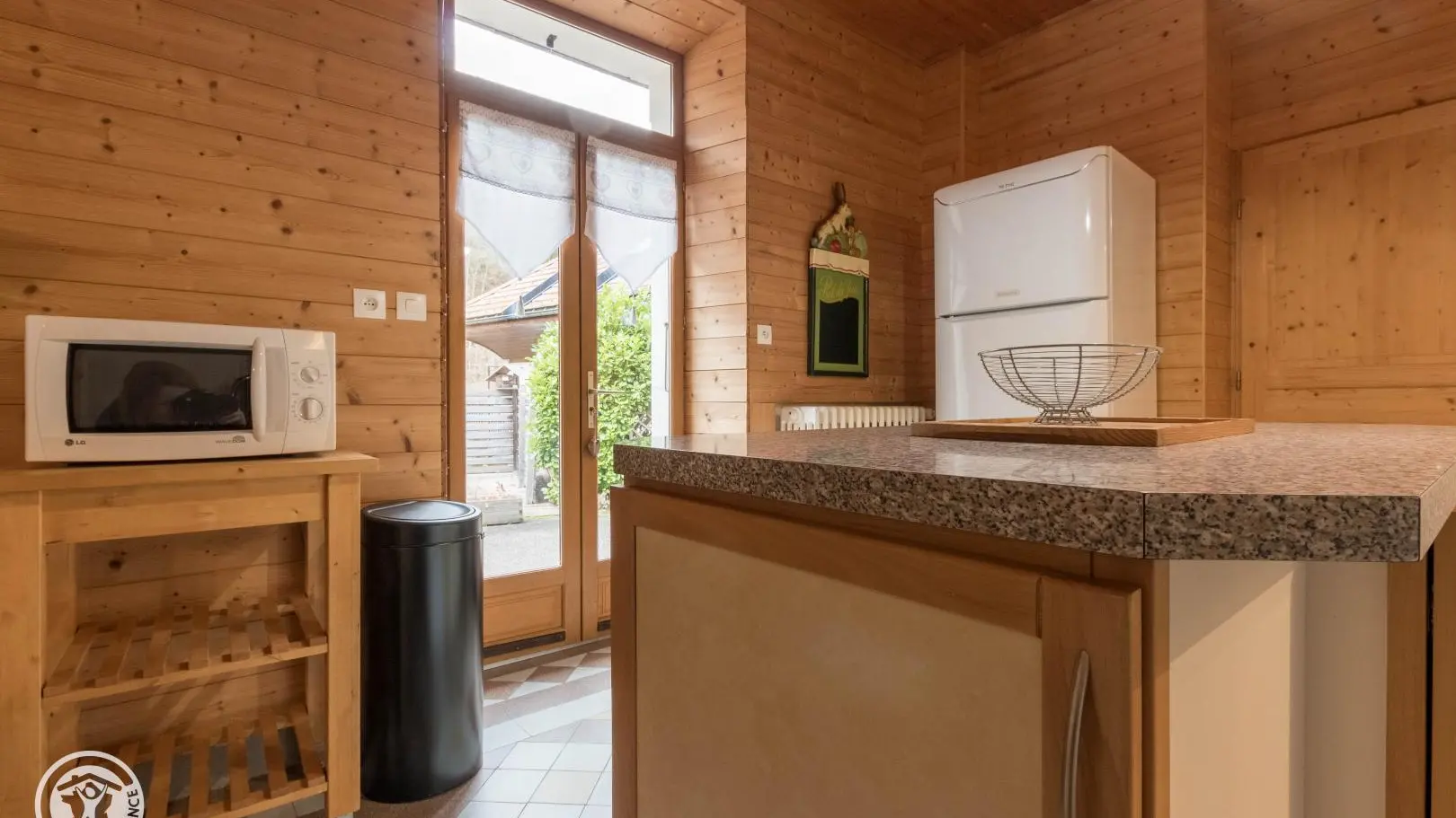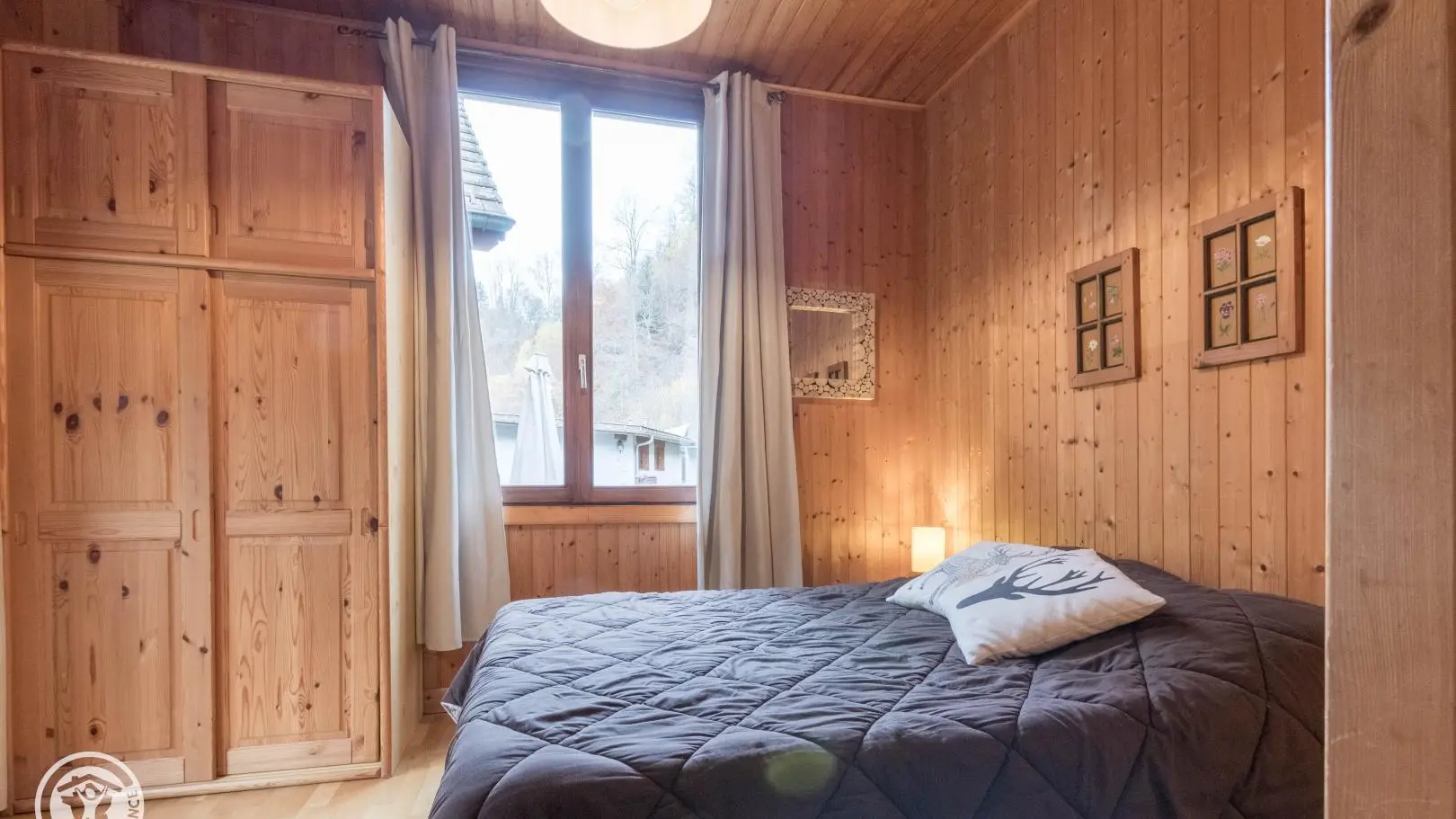 On banks of Le Fier (trout river), gîte (97 sq. m., on 2 levels) which can be rented with adjoining gîte no. 79049 to accommodate 15 people. Ground floor: kitchen (microwave), dining room, bedroom (double bed), shower room, WC. 1st floor: 2 bedrooms (beds: 7 single, which 2 bunk), shower room, WC. Terrace (garden furniture), car port. Shared: games room (Internet connection), utility room, garden (2,000 sq. m., climbing frame), BBQ. 10% reduction for stays of 3 weeks. Public tennis court 500m, hiking/riding trails on the doorstep. Thônes 4km, Annecy lake 15km. Ski resorts: La Clusaz, Le Grand-Bornand 15km. 2 pets allowed. Bed linen hire.