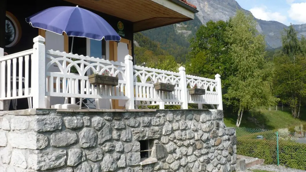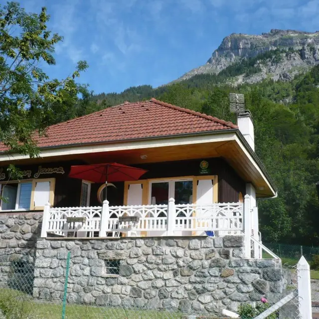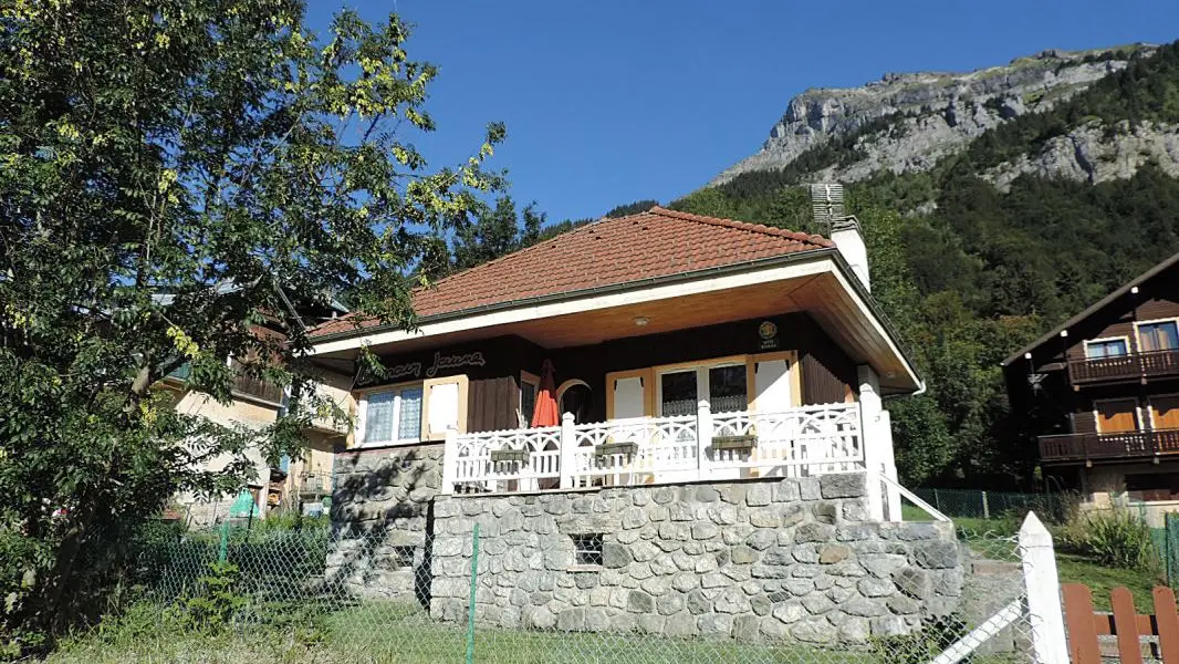In middle of the health resort, alongside a listed church (classified as 'Monument Historique'), with panoramic view of the Mont-Blanc range, self-contained chalet (48m2). Raised ground floor: kitchen (microwave) opening onto living room (2 single stowaway beds), bedroom (2 single beds), shower room/WC. Central heating. Lovely covered terrace giving onto small fenced garden, cellar. 10% reduction for stays of 3 weeks. Family ski area at Passy/Plaine-Joux 6km. Nature reserve. Saint-Gervais-les-Bains (spa town) 10km. Chamonix 20km. Vincent is a high altitude mountain guide et ski instructor.