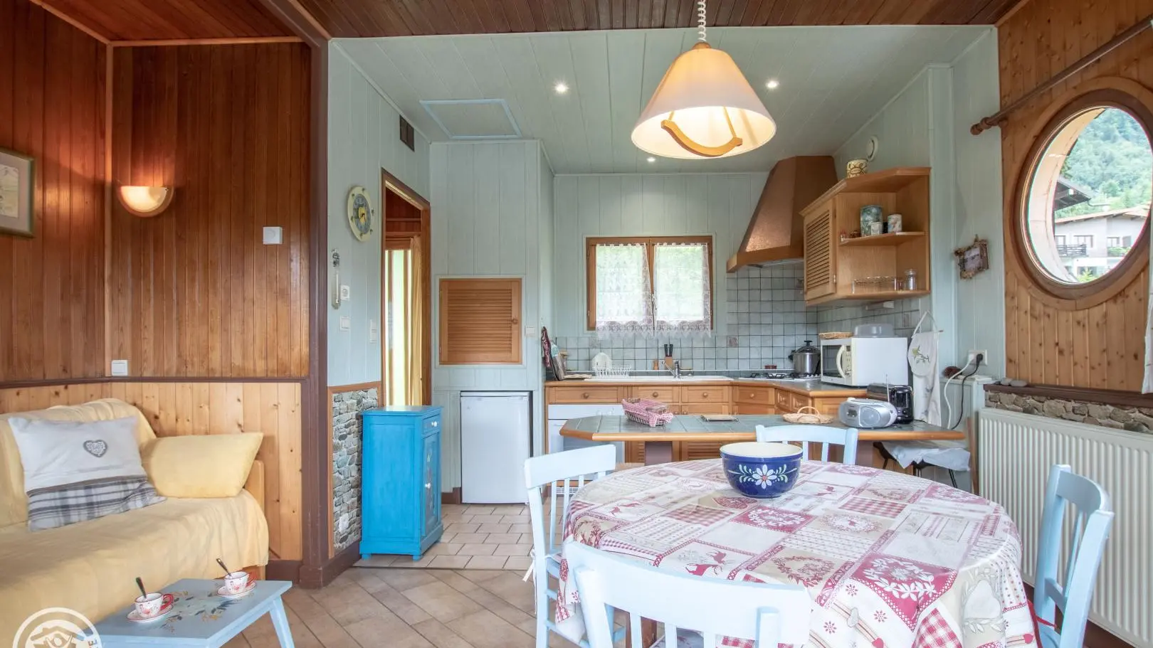 In the center of the health resort, next to the church classified as a Historic Monument, panoramic view of the Mont-Blanc range, independent chalet of 48m2 built on one level (raised ground floor). Kitchen open to living room (2x90 pull-out sofa bed), bedroom (2 single beds), shower room / WC. Central heating. Beautiful covered terrace overlooking small enclosed garden. Discount for stays of 3 weeks -10%. Family ski area of Passy-Plaine Joux at 5.5km (shuttle at 100m). Nature reserve of the Fiz / Passy / Plaine-Joux range. Thermal baths of Saint-Gervais-les-Bains at 10km. Chamonix at 20Km. Vincent is a mountain guide and ski instructor.