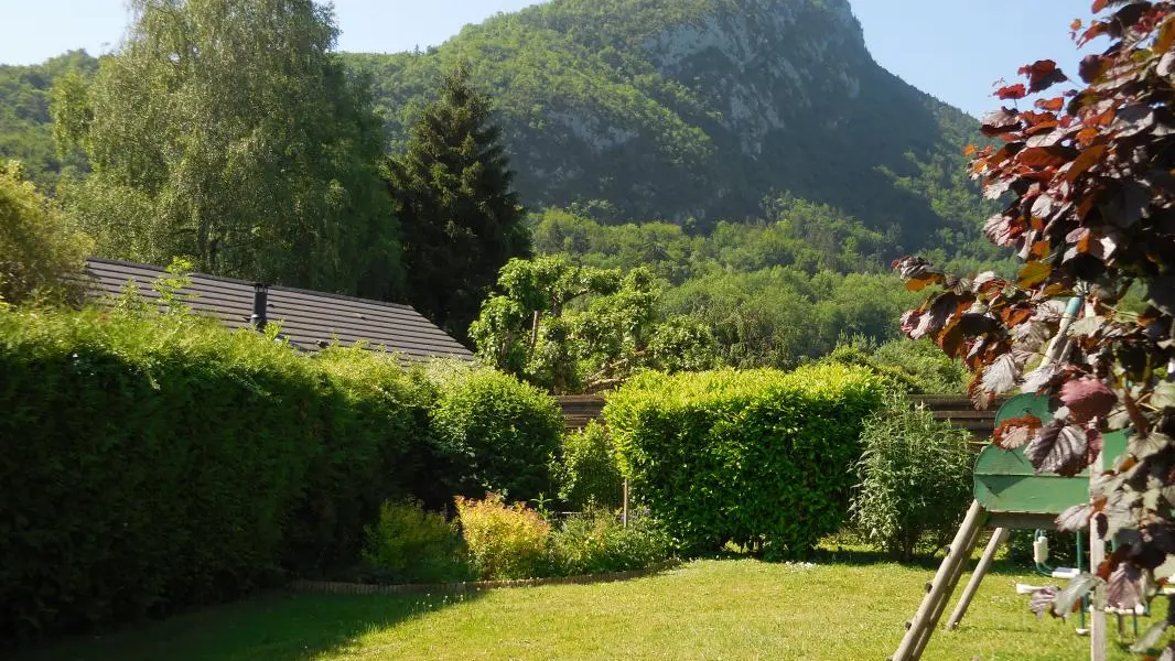 Gîte (35 sq. m.) in owners' house, with separate entrance, 400m from Annecy lake. Kitchen opening onto living room with access to terrace, mezzanine (double bed, single bed), shower room/WC. Garden furniture, lovely setting. Beach at Annecy lake 400m. Cycle track to Annecy 100m. Annecy 12km. For hire : bed linen. 10% reduction for stays of 3 weeks.