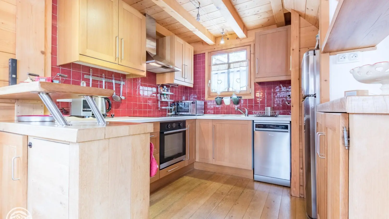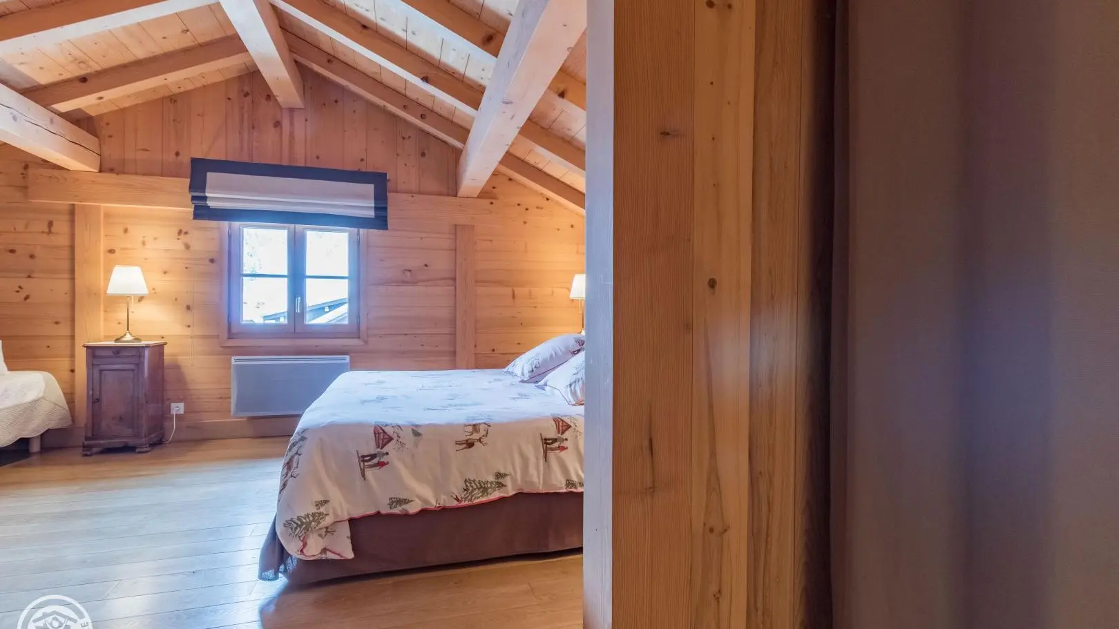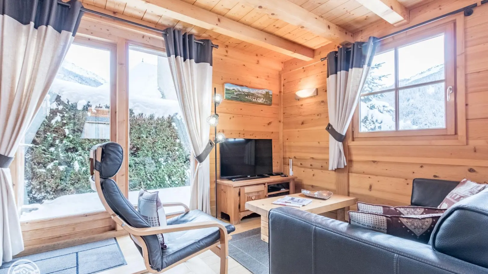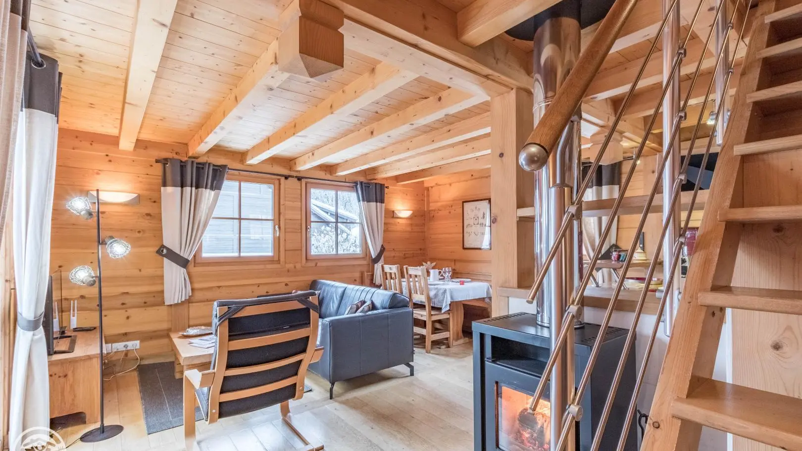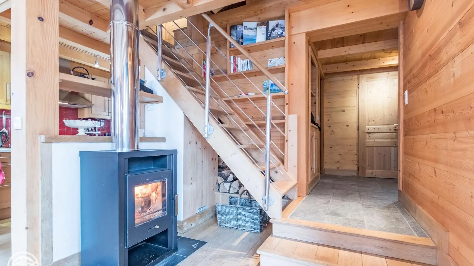 At the heart of the village, close to all shops and entertainment, beautiful independent chalet of 67m2 (duplex) next to the cottage owners (bed and beakfast). On the ground floor: entrance hall, kitchen open to living room (TV, wood stove), bathroom (shower), separate toilet. 1st floor, bedroom 1 (mezzanine space) with 2 beds 90x200 twin and living room-office, communicating with bedroom 2 (2 beds 90x200cm).