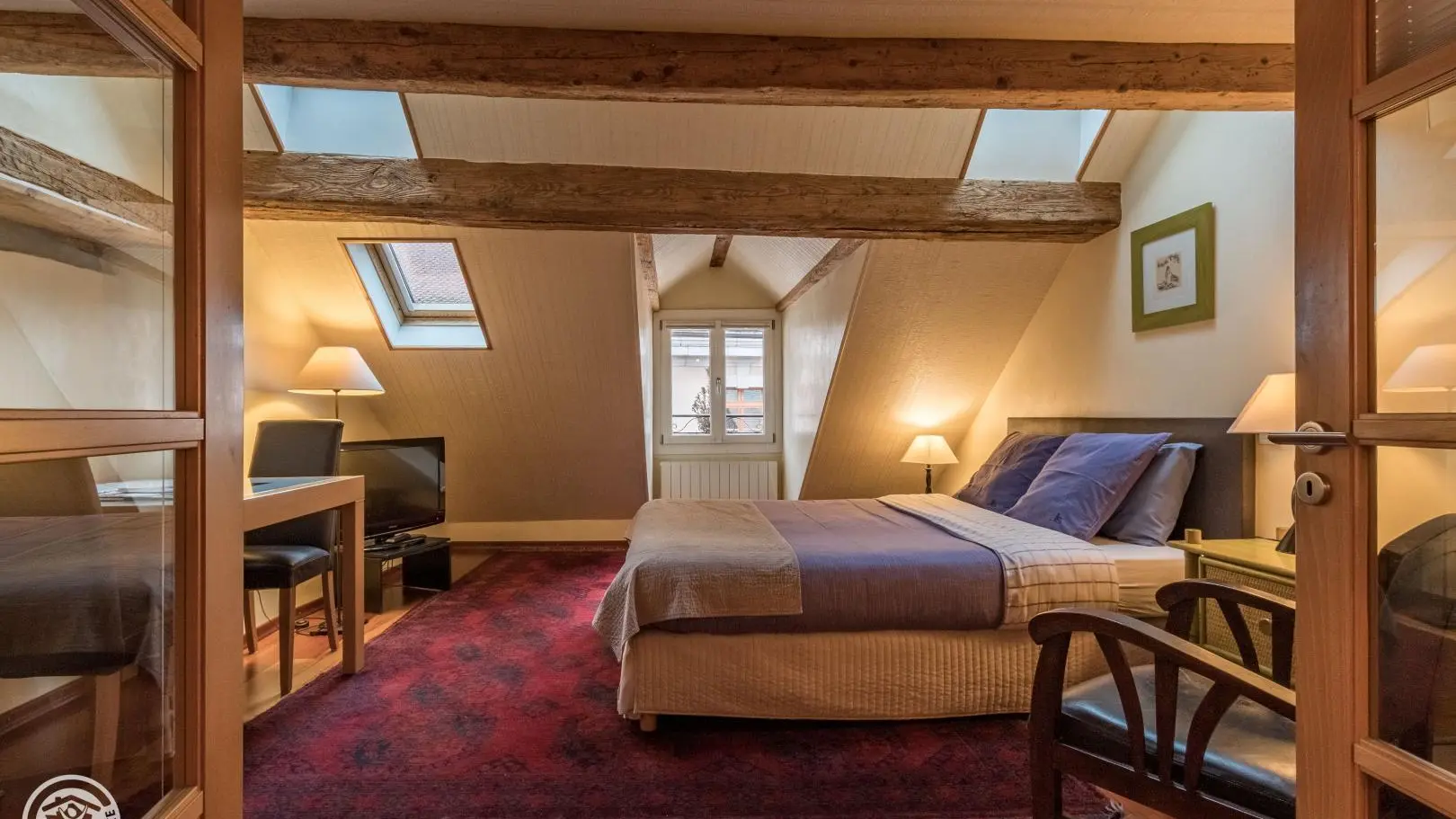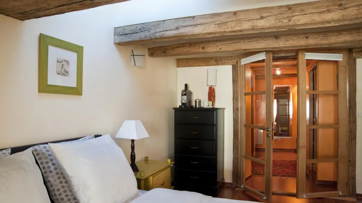 In a building of the 17th century, in the heart of the old town of Annecy 3 aggregatable apartments fitted out with talent, to quality services. Rousseau: refined atmosphere with its beautiful parquet and its beams (26 m² + 5 m² attic) apartment on the 4th floor. Corner kitchen, stay (bed 160 x 200, LCD, DVD), bathroom, Toilet. Sheets, linen toilet provided. Common washing machine. Parking nearby. (sticker on request), free 600 m. Lake Annecy, track cyclable200m, pool, beach 500 m, train station 700 m. Skiing: 15km, Clusaz/Gd Bornand 32km Semnoz. Shops on site. Poss. rental per night depending on season: contact owners.