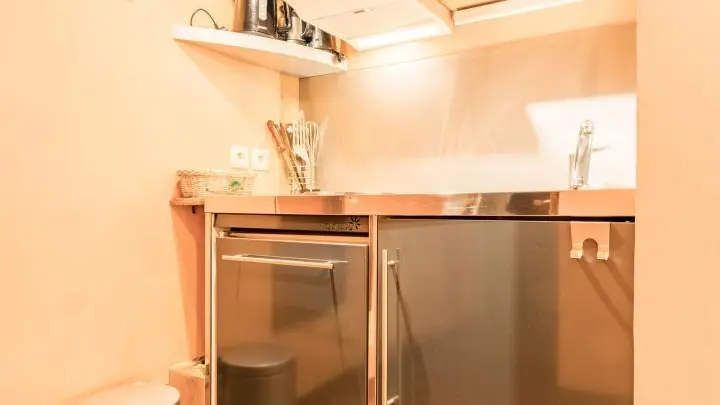 In a character of 17th century building, in the heart of the old town of Annecy 3 aggregatable apartments equipped with talent, to quality services. Rousseau: refined atmosphere with its beautiful wooden floors and exposed beams for this apartment (26 m² + 5 m² attic) on the 4th floor. Corner kitchen, living room (sofa bed very good comfort 160 x 200, LCD, DVD), shower room, WC. Sheets, linen toilet provided. Common washing machine. Parking at prox. (sticker on request), free 600 m. Lake Annecy, cycle track 200 m, swimming pool, beach 500 m, railway station 700 m. Ski: Semnoz 18km, Clusaz/Gd Bornand 32km. Shops on site. Poss. rental per night depending on season: contact owners.
