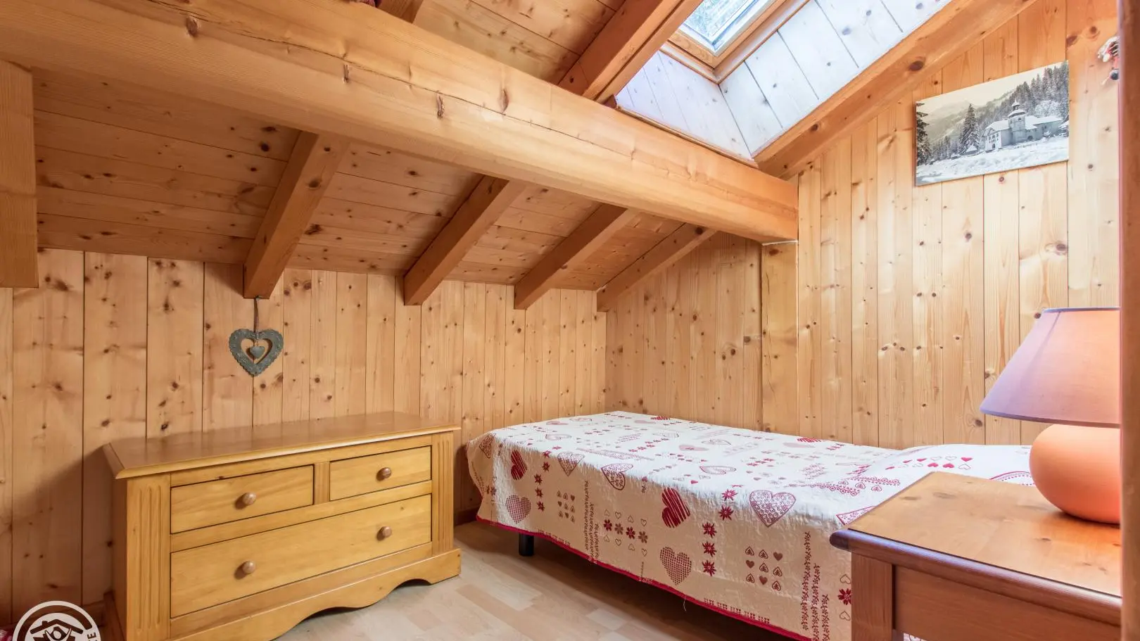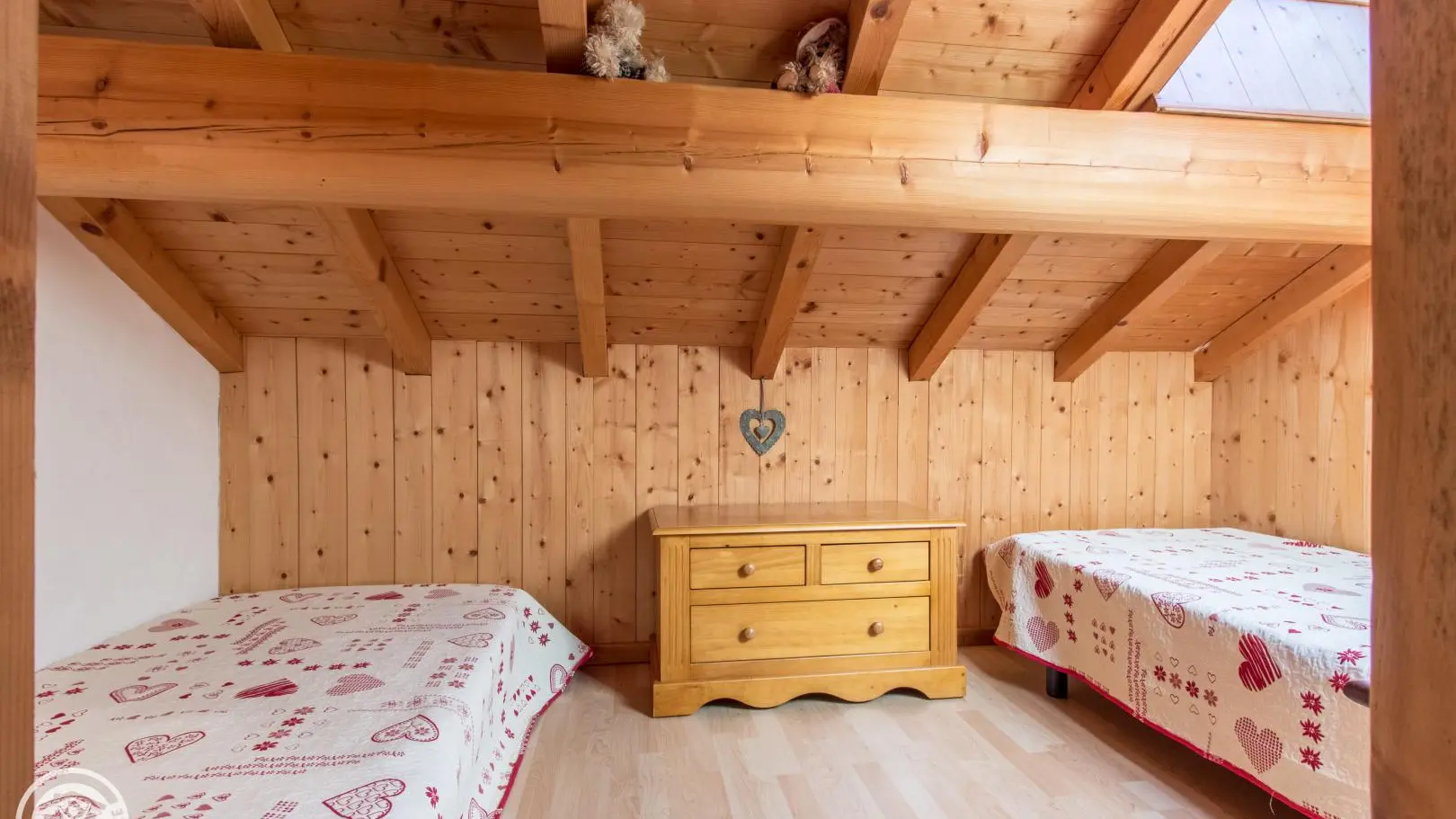 2 sleeping areas at the 2nd floor (upstair): sleeping area / bedroom 1 (1 bed 140x190cm), sleeping area / bedroom 2 (2 beds 90x190cm). The 2 bedrooms are very sloping ceilings (low ceiling height greater than 1.80m).