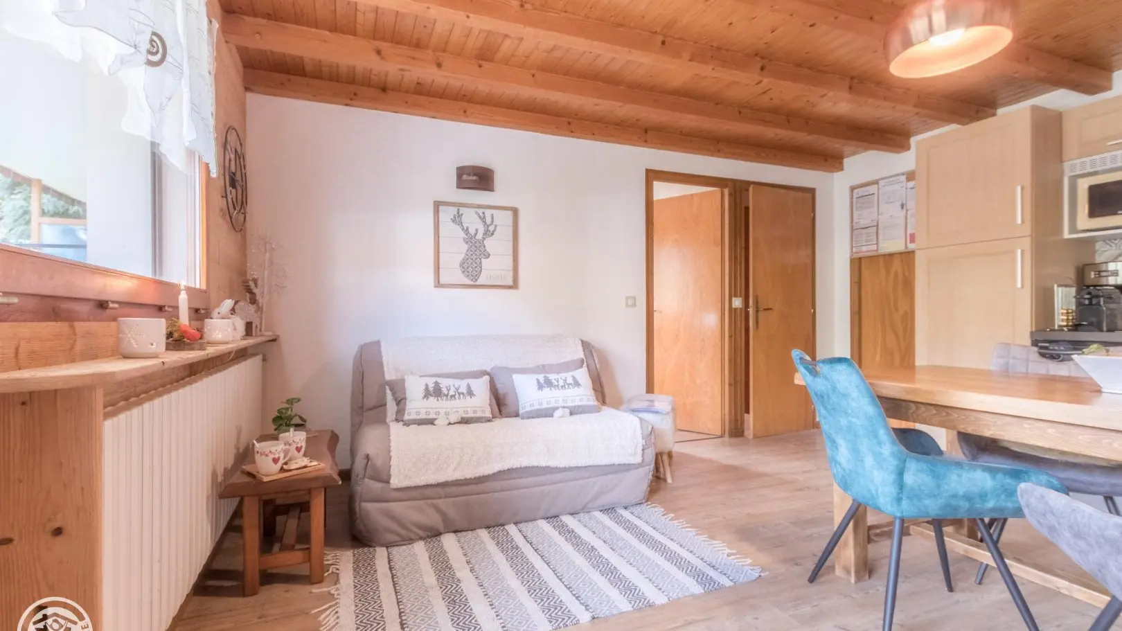 On the ground floor of a chalet, gîte of 50m² with private terrace and garden. The cottage also includes a home owner and another cottage (reference 136157). Independent entrance.