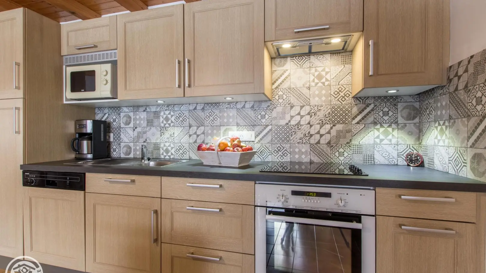 Integrated kitchen open to living room (sofa bed type BZ, TV, DVD player, stereo), 2 bedrooms: 1 bedroom with 1 bed 140x190cm, 2 bedroom with 2 beds 80x190cm twin.