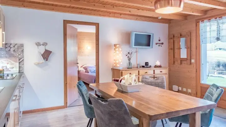 Internet wifi. Washing machine common to the 2 lodgings. Private terrace and garden closed the cottage, garden furniture, deckchairs, barbecue. Common ground is also available on the back of the chalet. Local private skis, local bike common.