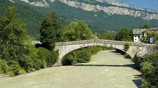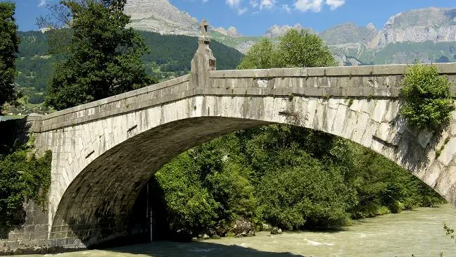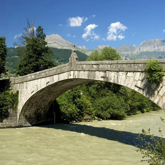 First mentioned in 1225, this bridge probably existed even earlier. Until 1880 it was the only crossing point to access Sallanches. It has had Historic Monument status since 1934 and only became a pedestrian bridge in 1974.