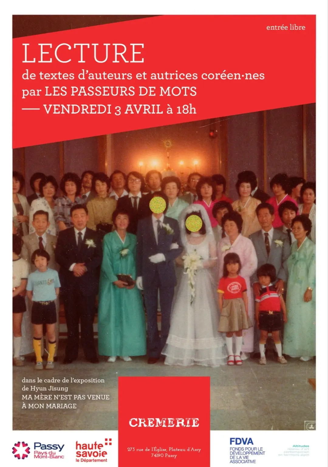 As part of the exhibition by Hyun Jisung, an artist from South Korea, Les Lecteurs de Mots will be at the crèmerie for a reading by Korean authors.