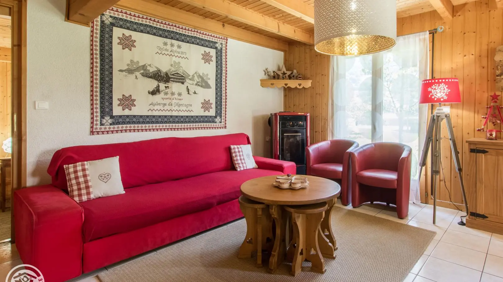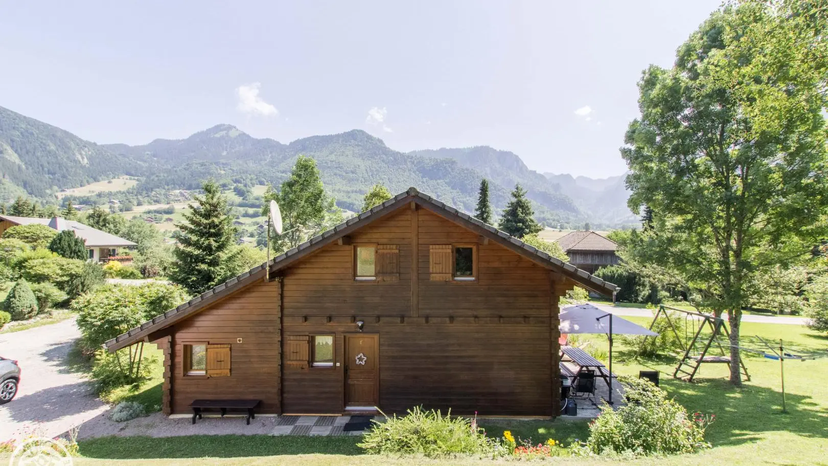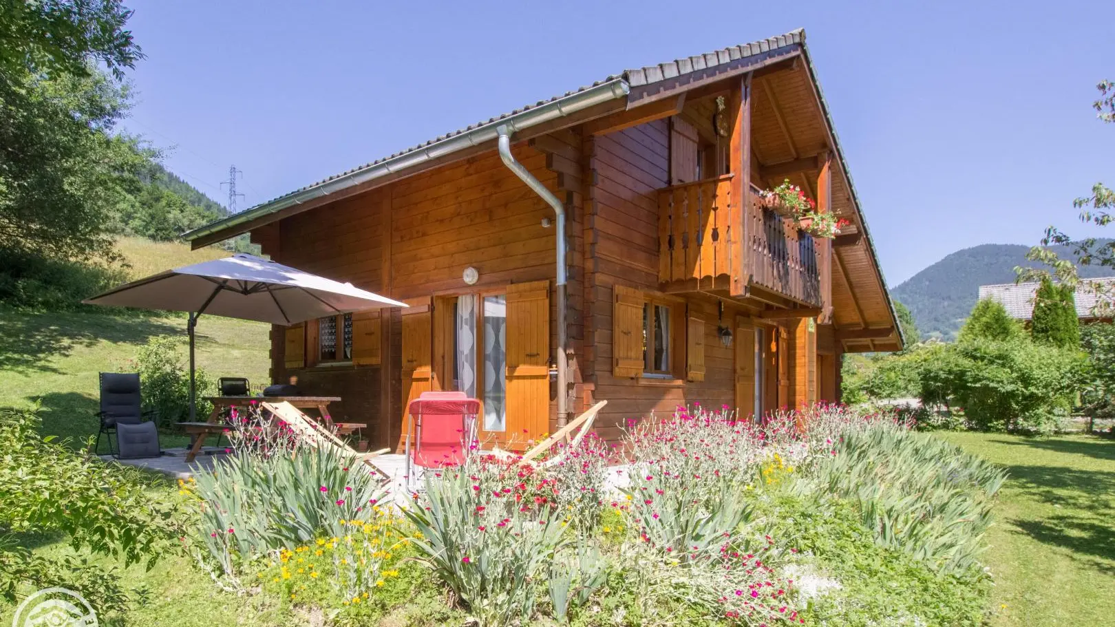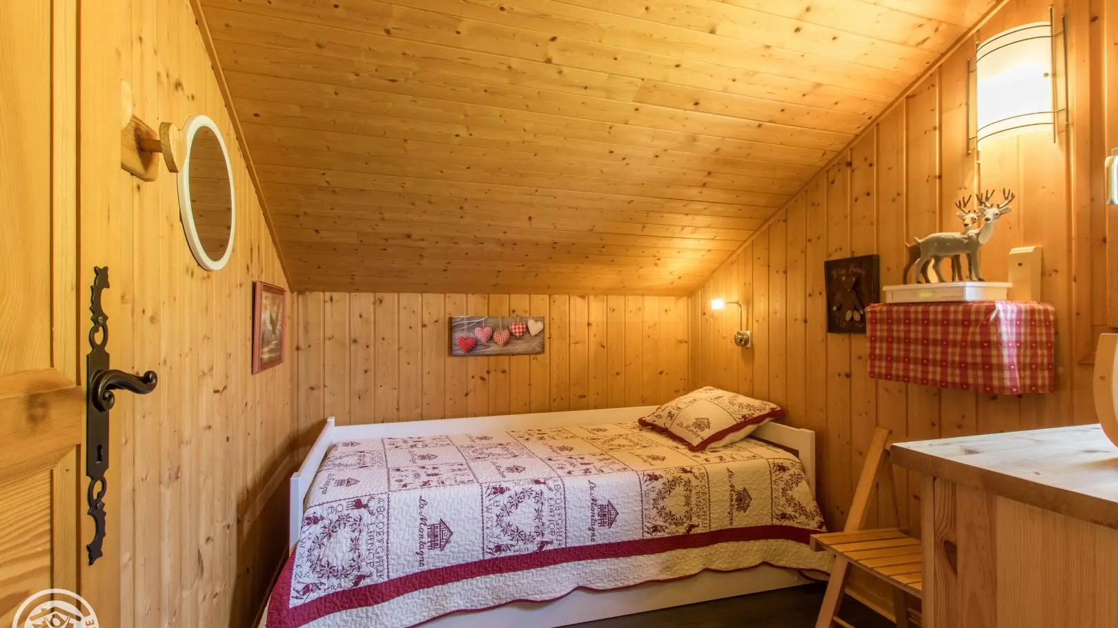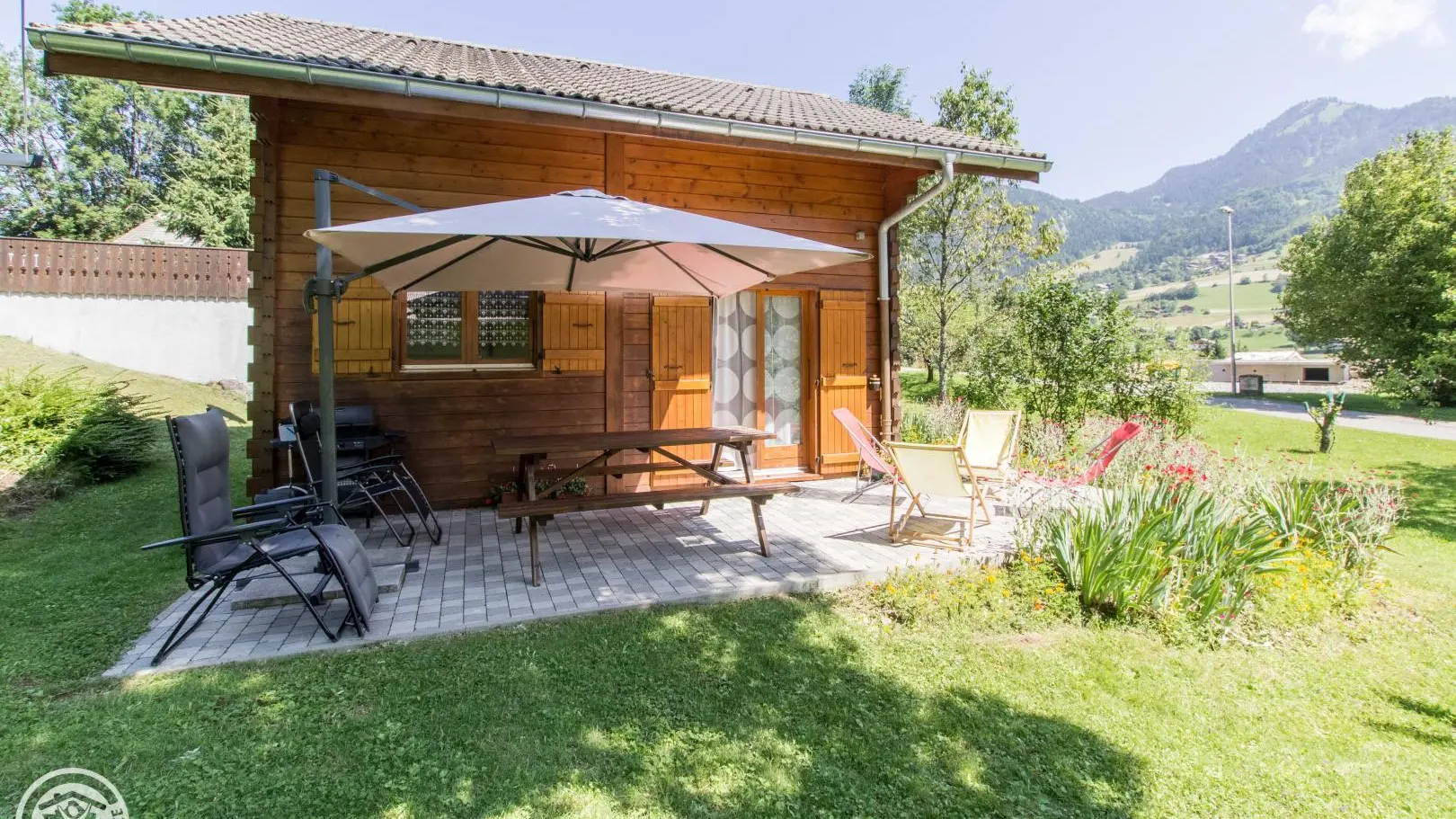 Detached chalet 79m² (+12m² attic) arranged on 2 levels in a wood and mountain atmosphere. Entrance hall with cupboard, fitted kitchen opening onto living-dining room (pellet stove with pellets included, TV, sofa bed). From the living room, French windows open onto the garden and terrace, offering stunning views of the surrounding mountains. Bedroom 1 (1 bed 140x190cm, TV, DVD player, shower room/wc), 1 separate toilet. Storeroom.
