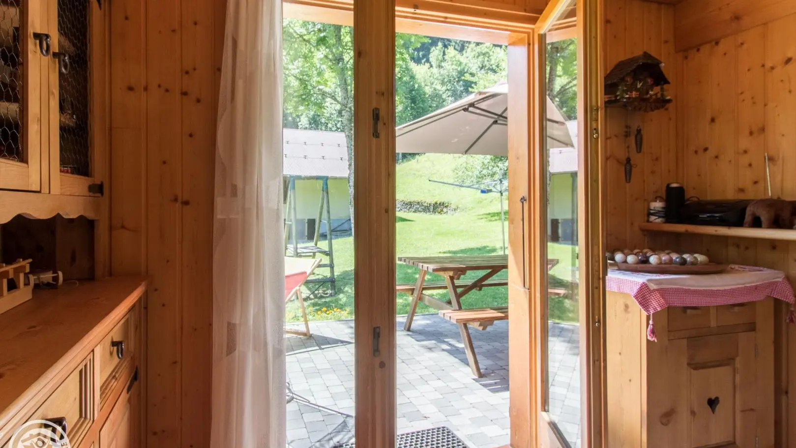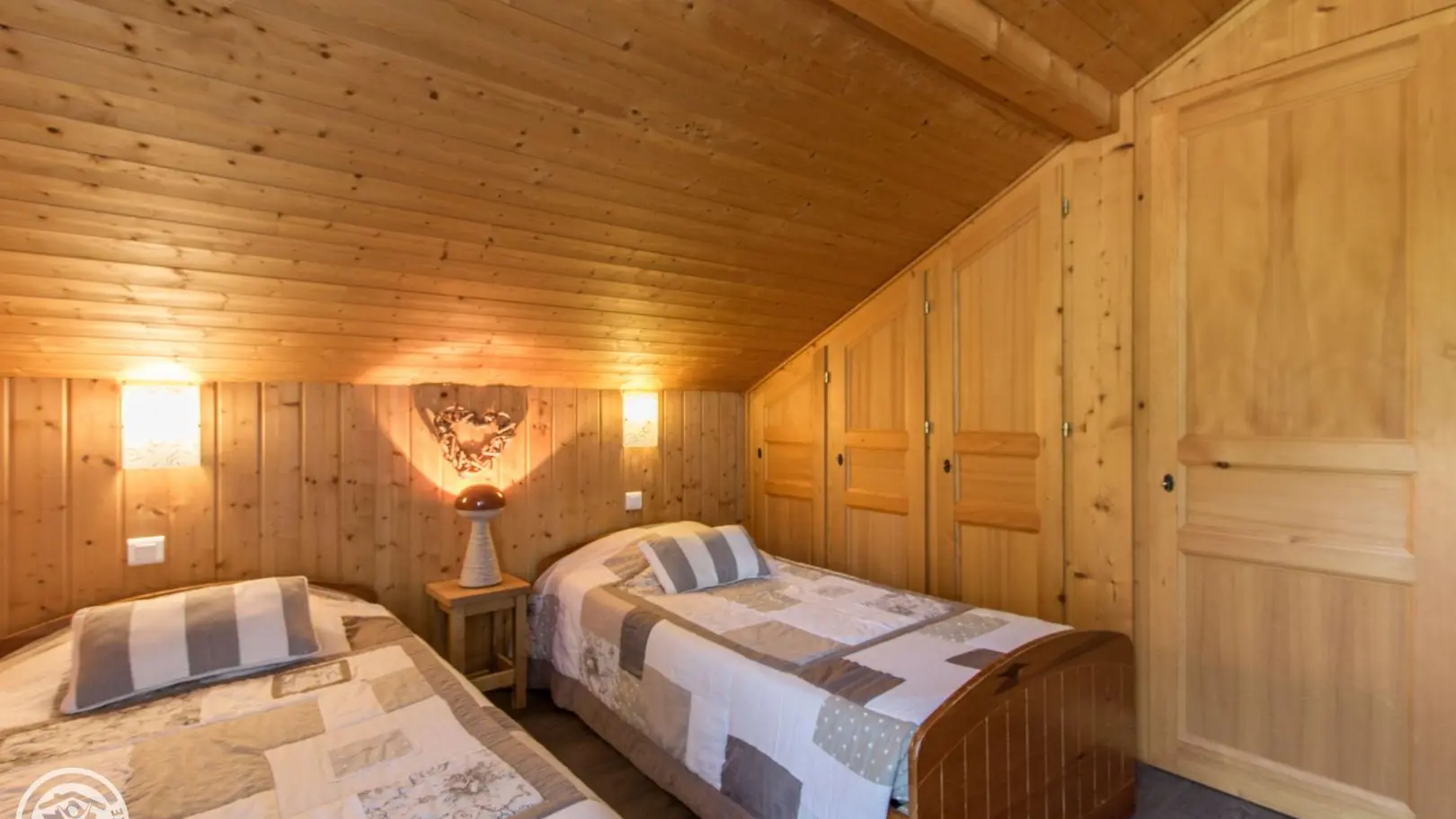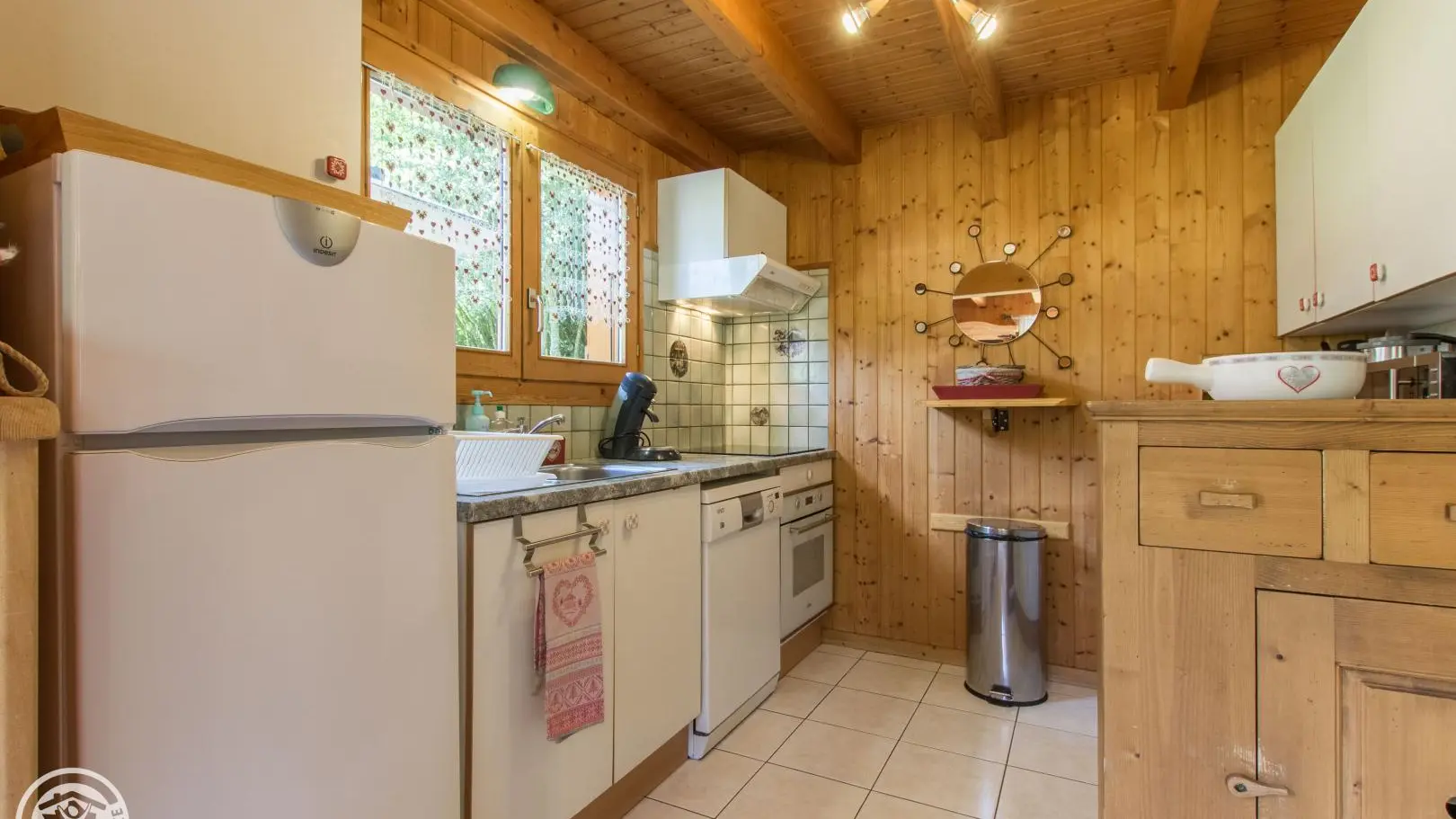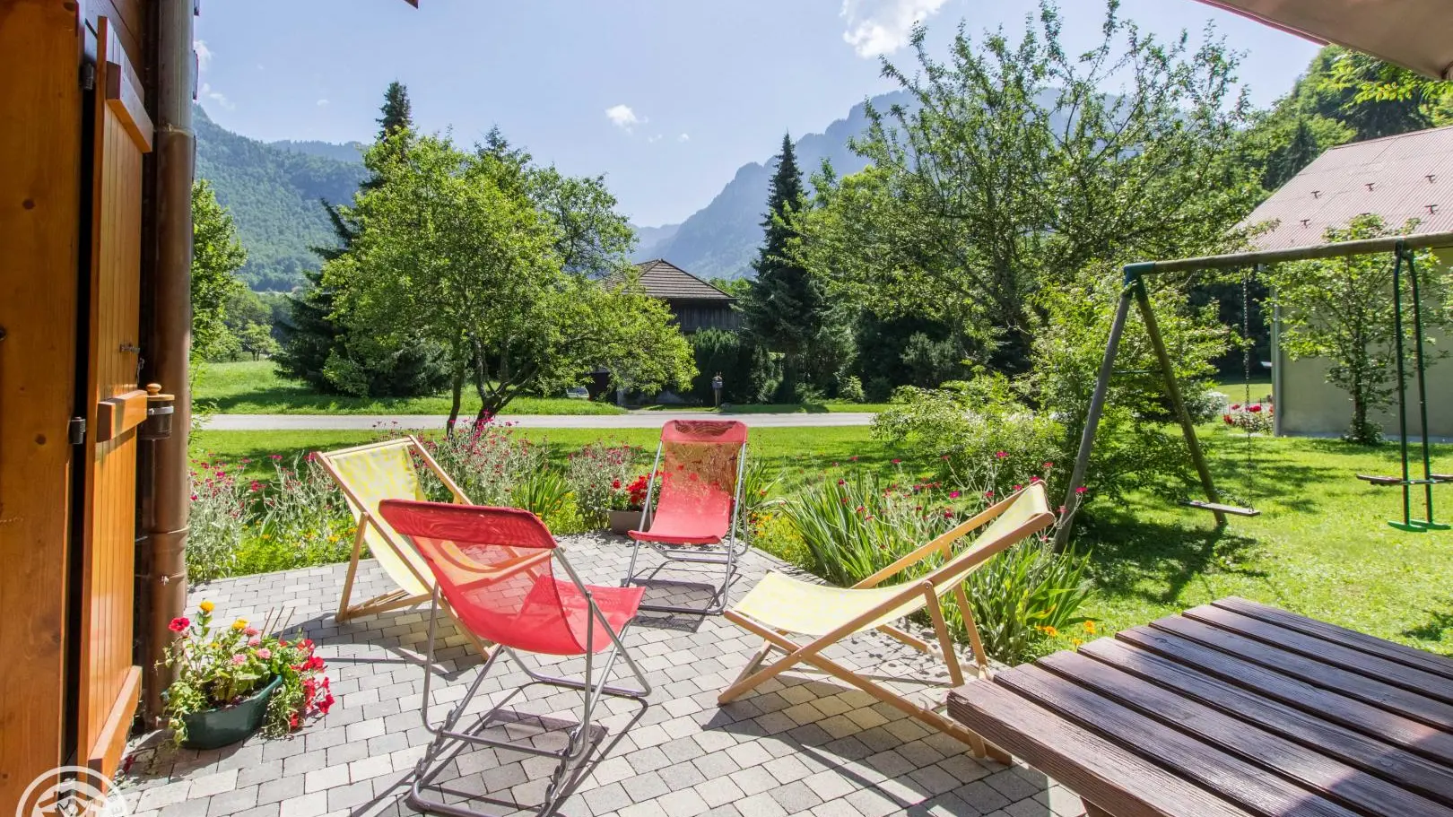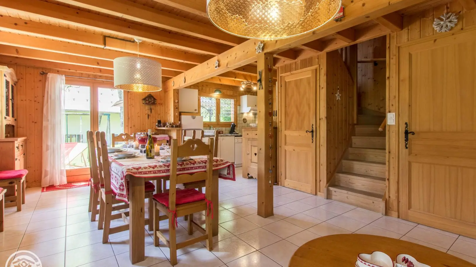 Detached chalet 79m² (+12m² attic) arranged on 2 levels in a wood and mountain atmosphere. Entrance hall with cupboard, fitted kitchen opening onto living-dining room (pellet stove with pellets included, TV, sofa bed). From the living room, French windows open onto the garden and terrace, offering stunning views of the surrounding mountains. Bedroom 1 (1 bed 140x190cm, TV, DVD player, shower room/wc), 1 separate toilet. Storeroom.