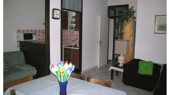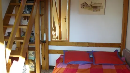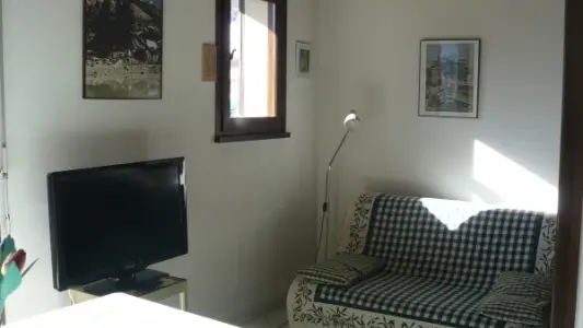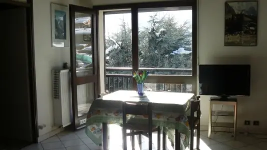 Flat in the 3rd floor of a small residence in Saint Gervais with open view of mountains. Livingroom with kitchenette : mini-oven, microwave, sofa bed for 2 pers, television combined with DVD reader, armchairs. Bedroom with sofa bed for 2 pers, mezzanine with 1 bed for 1 pers. Bathroom with washing-machine. Independent WC. Terrace with table and chairs. Ski locker. Parking. Service charges included. Special offer