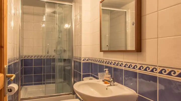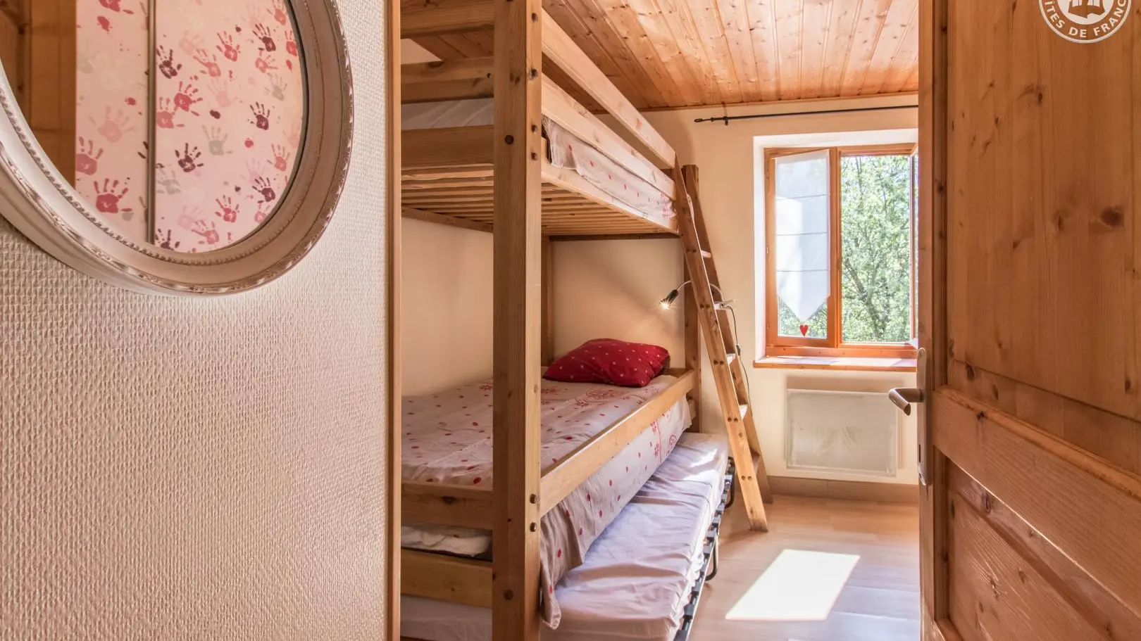 The gîte has its own private entrance. Living room (TV, wood stove, sofa-bed for extra bed 140x190cm), fitted kitchen, bedroom 1 (1 bed 140x190cm), bedroom 2 (1 bed 140x190cm, 1 bed 90x190cm), bedroom 3 (2 bunks beds 90x190cm, extra bed 90cm). Two independent bathrooms: bathroom with corner bath and buderie corner, bathroom with shower and toilet, separate wc. Private terrace with garden furniture, deckchairs and barbecue. Small enclosed garden.