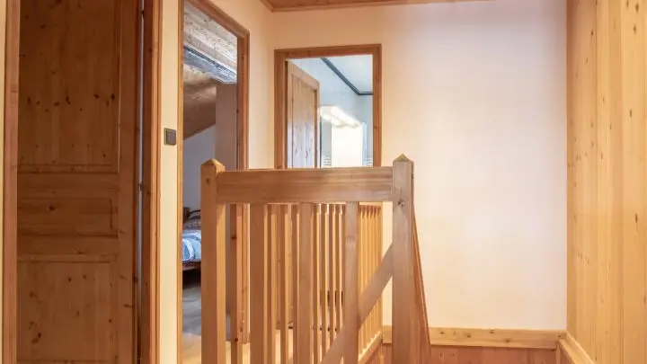 In the heart of Samoëns, a village classified as Art and History, homeland of stonemasons, traditional terraced house of 109 m2 + 18 m2 with sloping ceilings offering quality services.