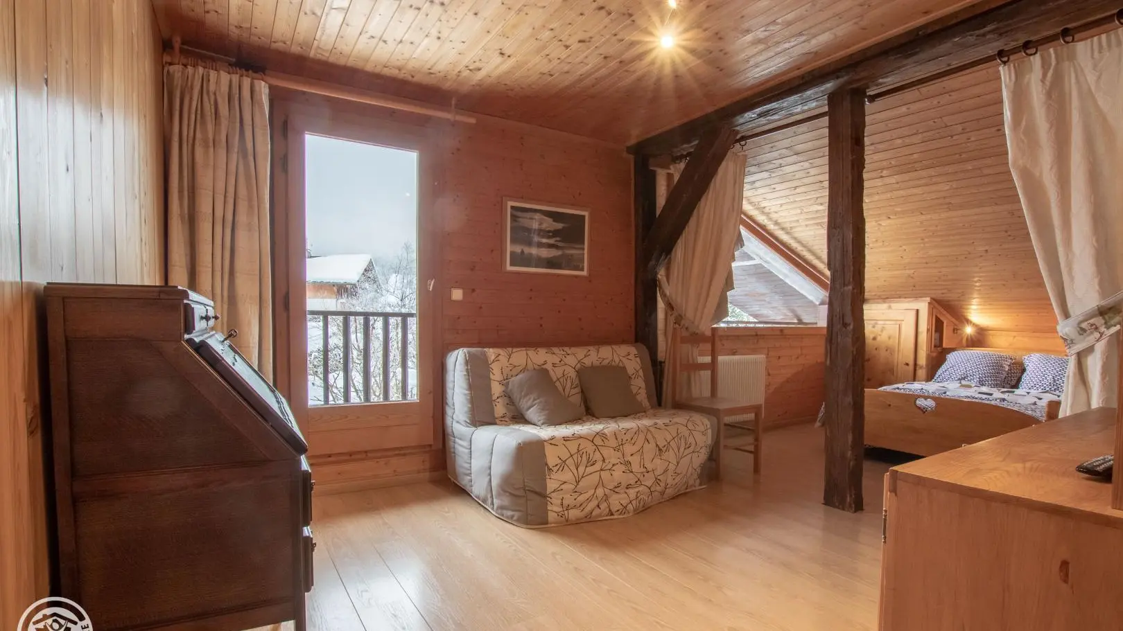 Garden level: Equipped kitchen (wood stove / fireplace, wood supplied), dining room / living room (sofa, Hifi). Bedroom 1 (1 140 cm bed, baby bed). bathroom, separate wc. On the 1st floor: Bedroom 2 (2 beds 90 cm), Bedroom 3 (2 beds 90 cm), Bedroom 4 (1 bed 140 cm + 1 sofa bed for 2 people). Bathroom / wc. Cellar (washer / dryer). Balcony, covered west terrace + south terrace, barbecue, garden, carport, table tennis, equipment room. Beautiful view of the Haut-Giffre peaks. Reduction for stay 3 weeks -10%. Access to the slopes by the Grand Massif Express at 300 m. Leisure center 1 km away: tennis, swimming pool (summer), golf practice, fishing pond, tree climbing, children's games, laser game, ice rink (winter) 600m away.