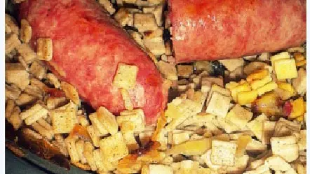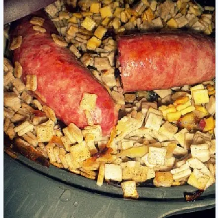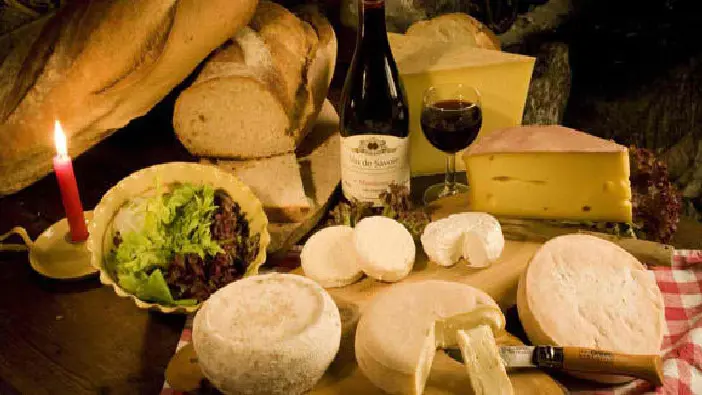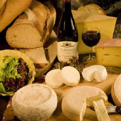 Savoyard specialities: La Lanfiannade: oven-baked reblochon, with Savoie white wine, potatoes baked "en papillote", local smoked ham, green salad.