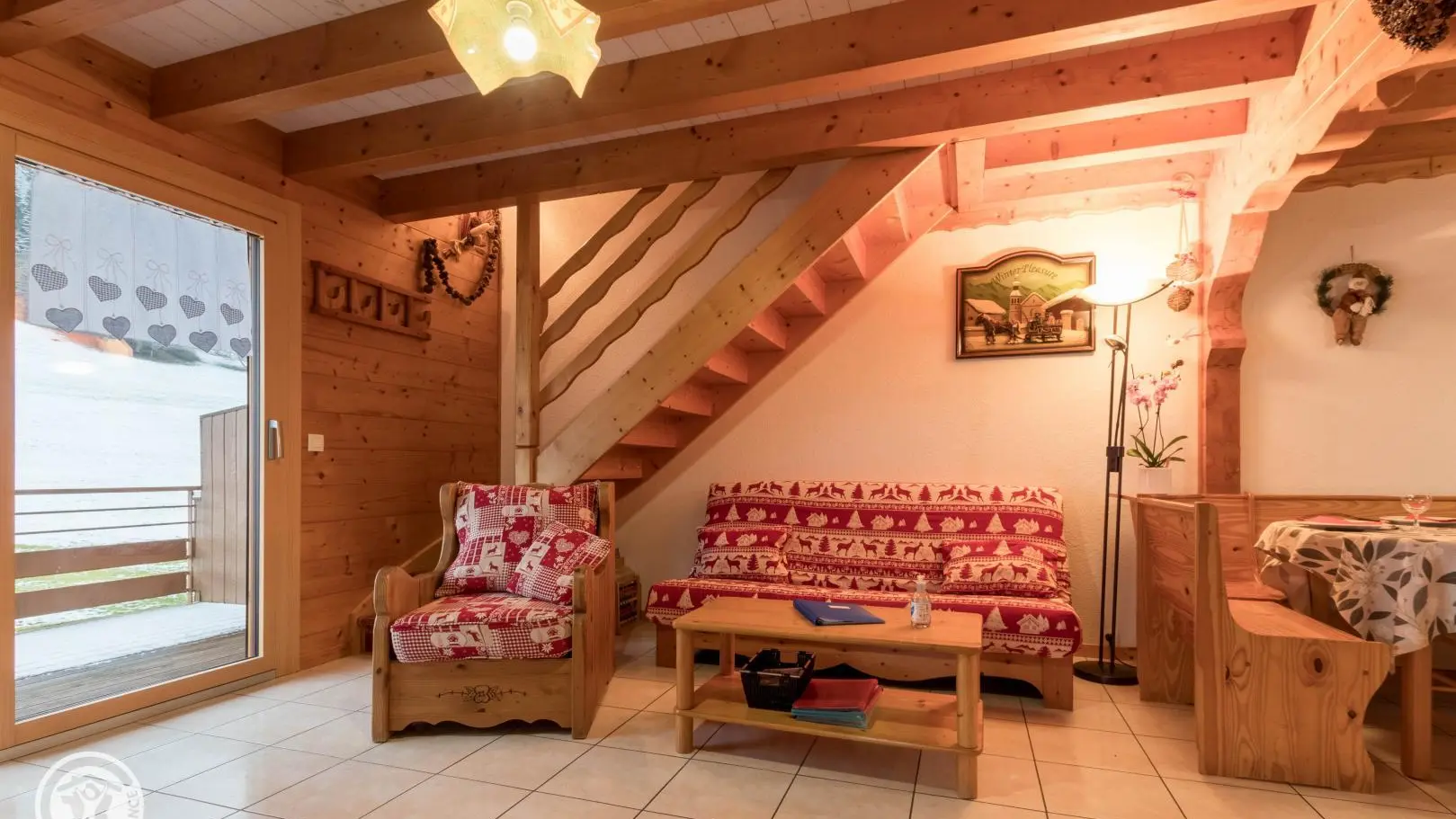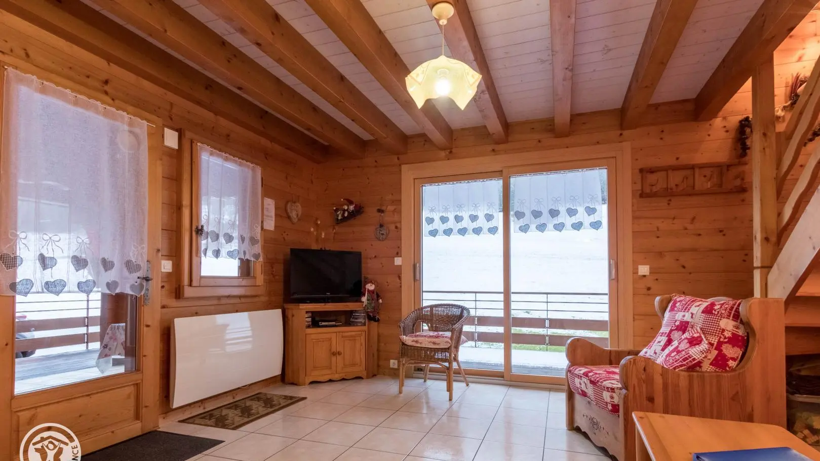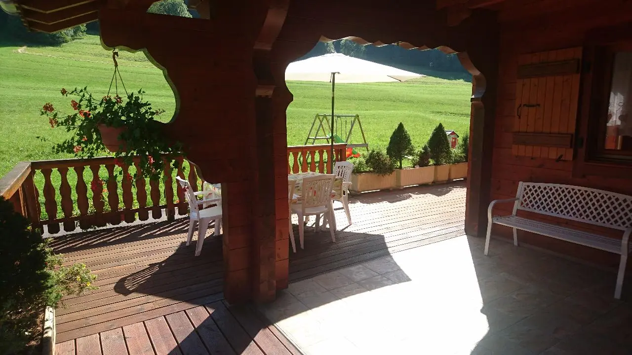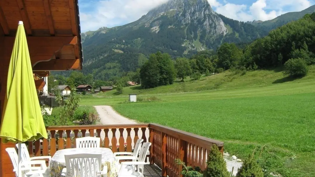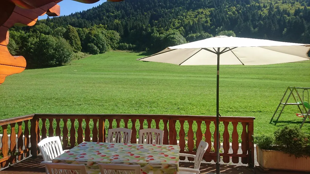 In quiet location alongside cross-country ski trails et near the Bernex ski lifts, gîte (69m2 + attic) in chalet also containing another gîte. Ground floor: fitted kitchen (microwave) opening onto living room, bedroom 1 (double bed), shower room, WC. 1st floor: bedroom 2 (2 single beds), bedroom 3 (double bed), WC. Electric heating. Tumble-drier. Covered terrace, garden, barbecue. 10% reduction for stays of 3 weeks. Chalet overlooking meadow. Bernex ski area (snowguns) 500m or 10min by foot. Lac de la Beunaz (beach) 3km. Evian (spa town, fitness centre, Lake Geneva) 14km. Vallée d'Abondance, Les Portes du Soleil 20min. Geneva 60min.