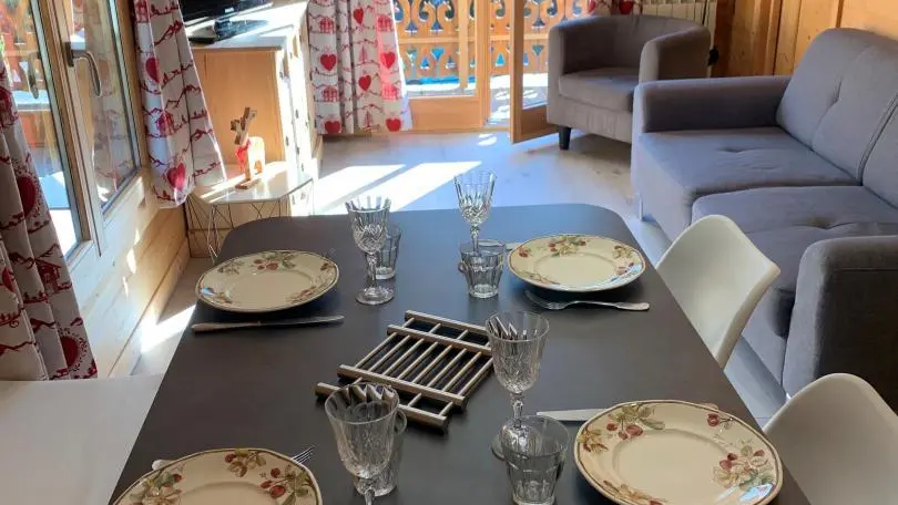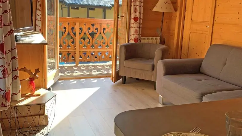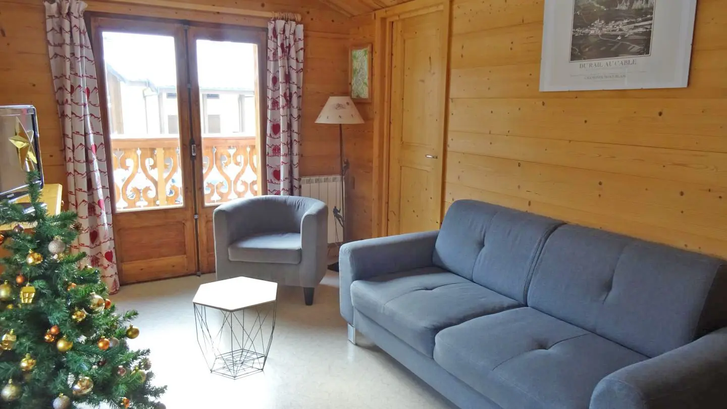 Gîte of 45m2 on the 1st floor of a chalet comprising another gîte (adjoining), as well as the owners' accommodation on the ground floor. Breathtaking view of the Mont-Blanc chain.