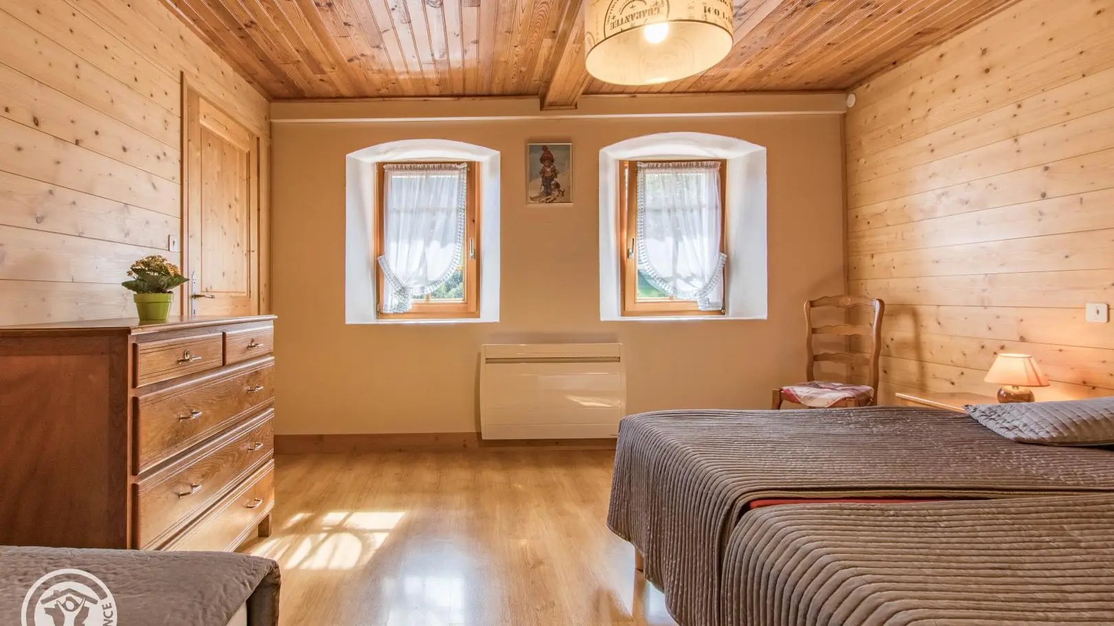 Near the Portes du Soleil ski area, in a preserved site in the Abondance valley, independent gite of 70 m2 on the raised garden level of an old farmhouse with character: kitchen/living room, Bedroom 1 (1 140cm bed, 1 90cm bed), Bedroom 2 (3 90cm beds, 2 of which can be combined), shower room, separate wc. Electric heating. Closed balcony, covered terrace, courtyard, land. Gîte located on the edge of the road leading to the resort of Châtel. Ski lifts 500 m linked to Châtel. To discover: Abbey and cloister of Abondance, cheese interpretation centre, mountain pasture hikes, mountain lakes.