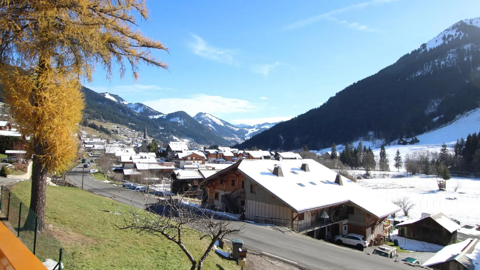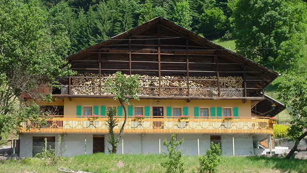 Near Les Portes du Soleil ski area in unpsoilt part of Vallée d'Abondance, self-contained gîte (70m2) on raised ground floor of traditional old farmhouse. Kitchen/living room (microwave), bedroom 1 (beds: 1 double, 1 single), bedroom 2 (3 single beds), bathroom, WC. Electric heating. Enclosed balcony, covered terrace, courtyard, garden. Gîte alongside busy departmental road. Ski lifts to Châtel 500m. Visit/explore: Abbaye d'Abondance (cloisters), visitor centre for cheese-making, hiking/riding in Alpine meadows, mountain lakes.