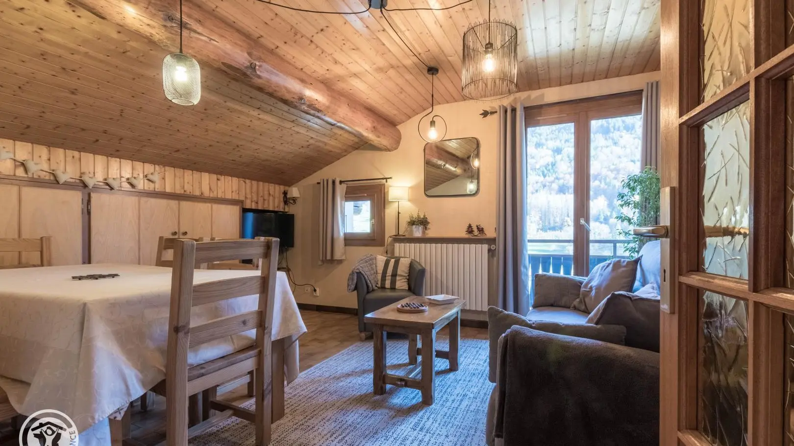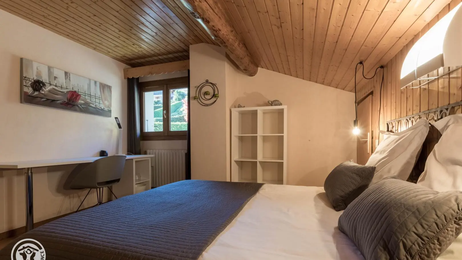 Panoramic view on the surrounding mountains for this gite (64 m² + 15 m² attic) built the House of the owners including 1 other cottage on the ground floor. Cottage on the 1st floor (from parking lot). Kitchen, living room (flat screen TV, DVD player, pull-out sofa 2x80cm) with access to the balcony, 1 bedroom (1 bed 140cm), 2 bedroom (2 beds 90cm can be twinned), 3 bedroom (1 bed 160cm), bathroom (bathtub), separate WC. Central heating. Terrace and garden with children's games (lower level). Parking, locker skis. Rental linens/towels. House is located upstream of the path to the resorts of the Aravis. Stop bus paying 100 m. Ski: stations of Clusaz and Grand-Bornand 6 km, Lake Annecy 18km, supermarket 1 km, Thônes 5 km (many sporting and entertainment activities).