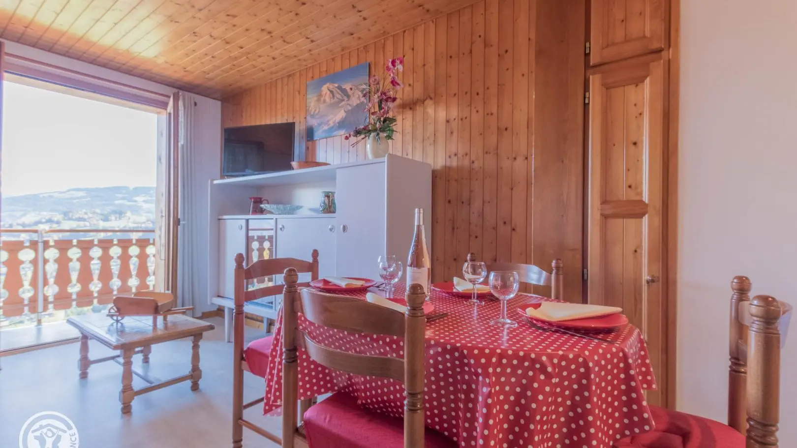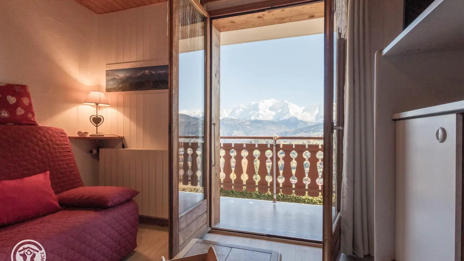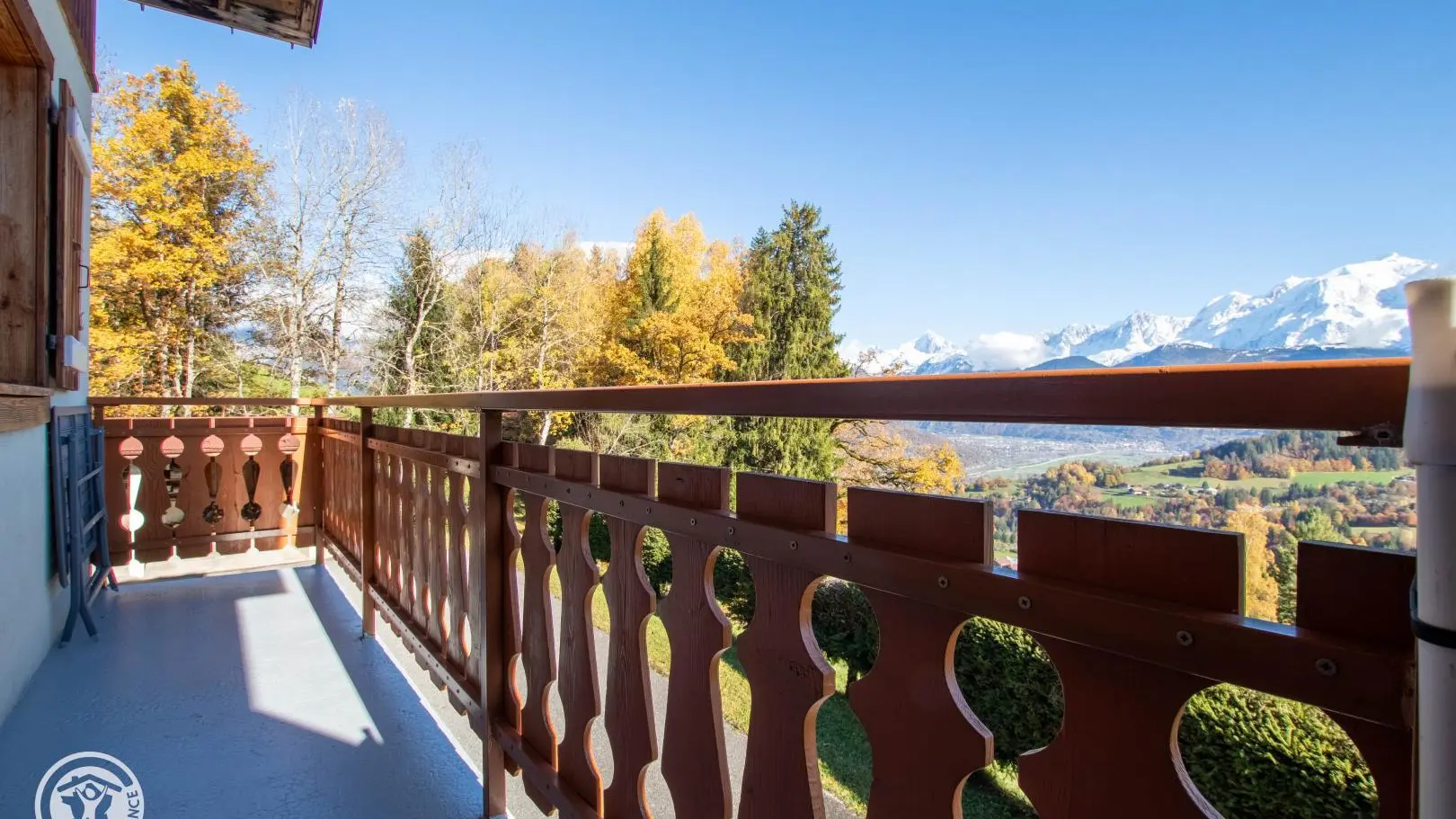 Facing the entire Mont-Blanc chain and alpine peaks, house with 2 lodgings and owners' accommodation. 36m2 gîte on the ground floor (access 4 steps). Kitchen / living room (sofa bed for 2 people), bedroom (2 twin beds 90cm). Central heating. Shower room (shower), separate toilet, shared terrace, barbecue. Balcony with furniture facing Mont-Blanc, garden furniture, courtyard, land, parking. Internet wifi. Cordon ski resorts 2 km and Megève 7 km. Shuttle at 1km. Many hikes from the house. Gîte can be combined with gîte n° 89007. In winter, shuttle at the foot of the gîte.
