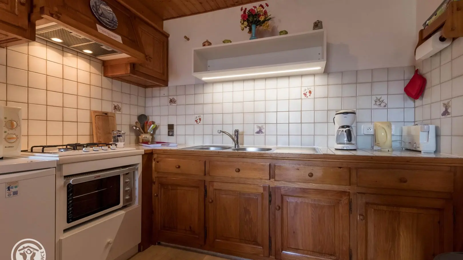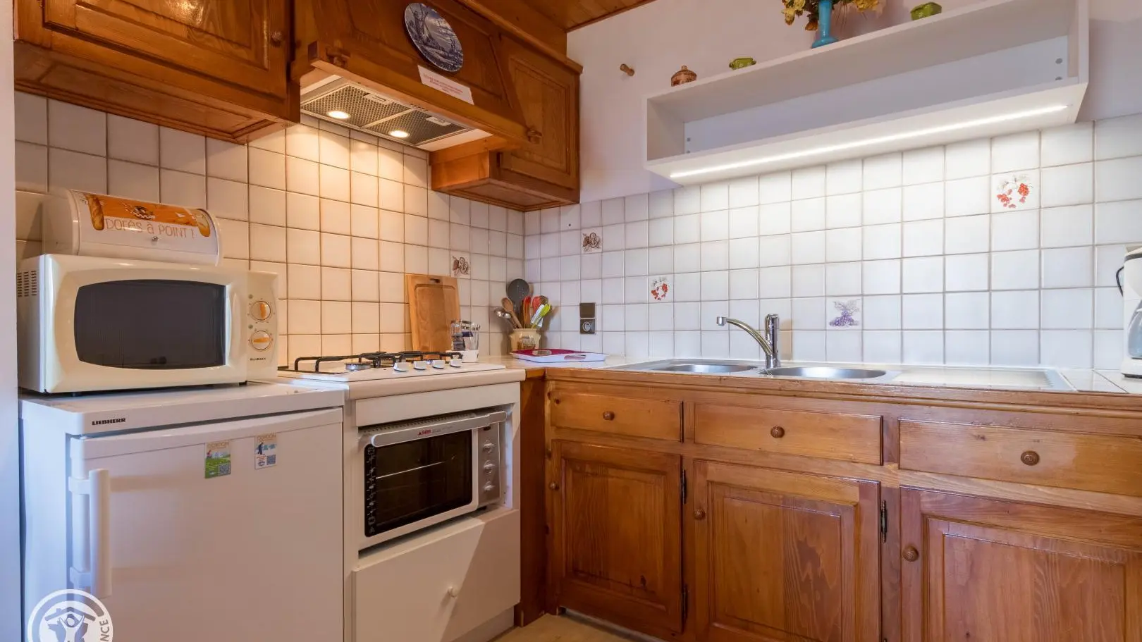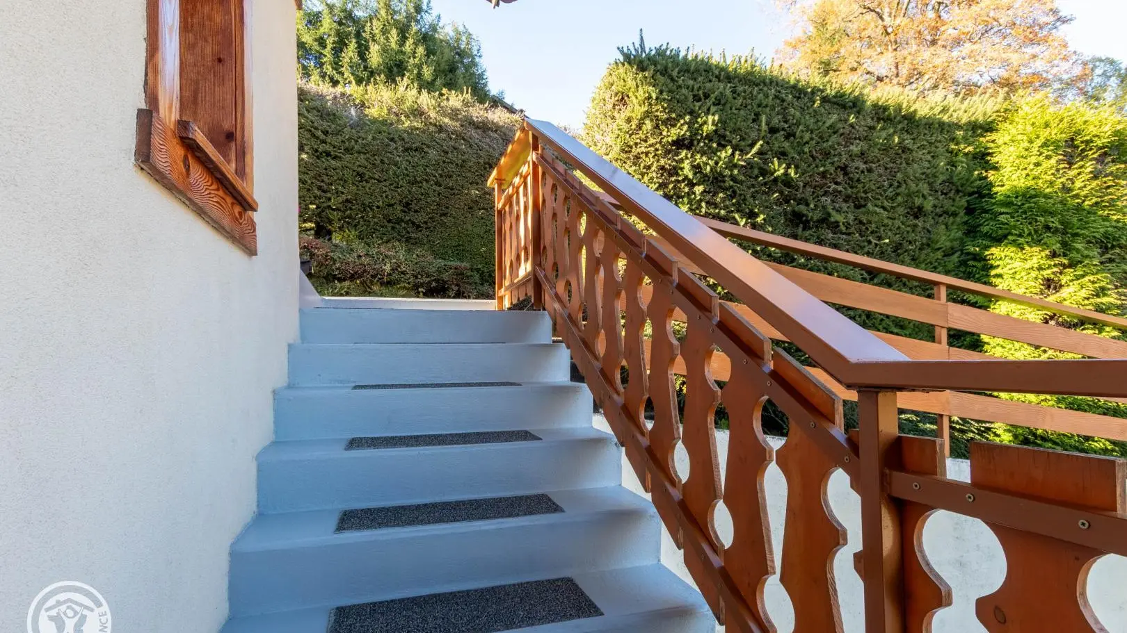 Opposite Alpine peaks et the entire Mont-Blanc range, house comprising 2 gîtes et owners' home. Gîte 2 (36m2) on ground floor (4 steps). Kitchen/living room (microwave, double sofabed), 1 bedroom (2 single beds). Central heating. Shower room, WC. Shared washing m/c, shared terrace, barbecue, garden furniture, courtyard, garden. Ski resorts: Cordon 2km, Megève 7km. Shuttle 1km. Many hiking/riding tracks from the doorstep.