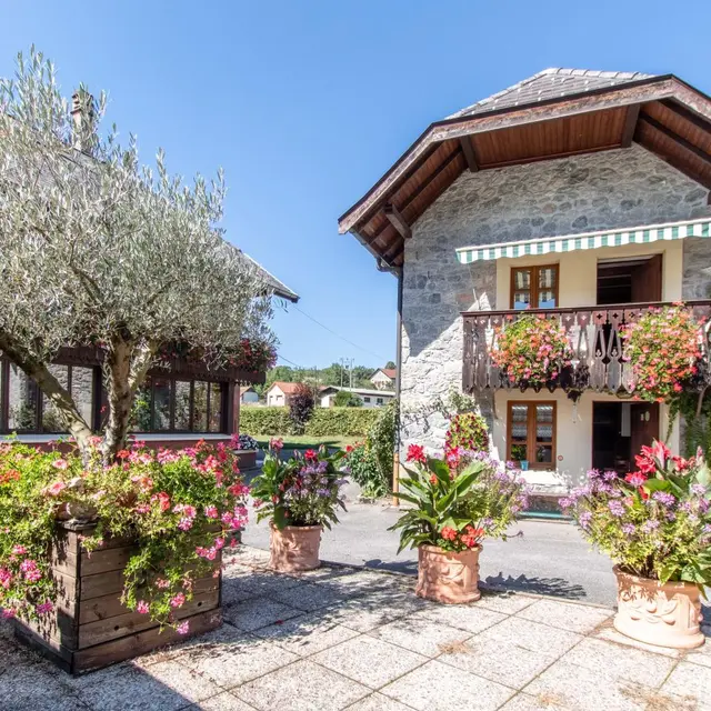 In quiet location on banks of La Fillière (river) in 3ha of grounds & in middle of campsite (open 15/05 to 15/09), converted old mill to form small self-contained house in stone & wood (54m2 + attic). Ground floor: kitchen/dining room, shower room/WC. 1st floor: bedroom/lounge (1 double bed). 2nd floor: large attic bedroom divided into two (3 single beds). Central heating. Balcony, garden, terrace, garage, barbecue available. Shared: washing m/c, tumble-drier, tel. 10% reduction for stays of 3 weeks. Annecy (& its lake) 15km. Le Plateau des Glières (historic site) & cross-country skiing 15km, Château de Thorens 6km. Beds made on arrival.